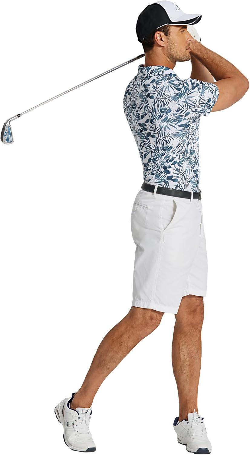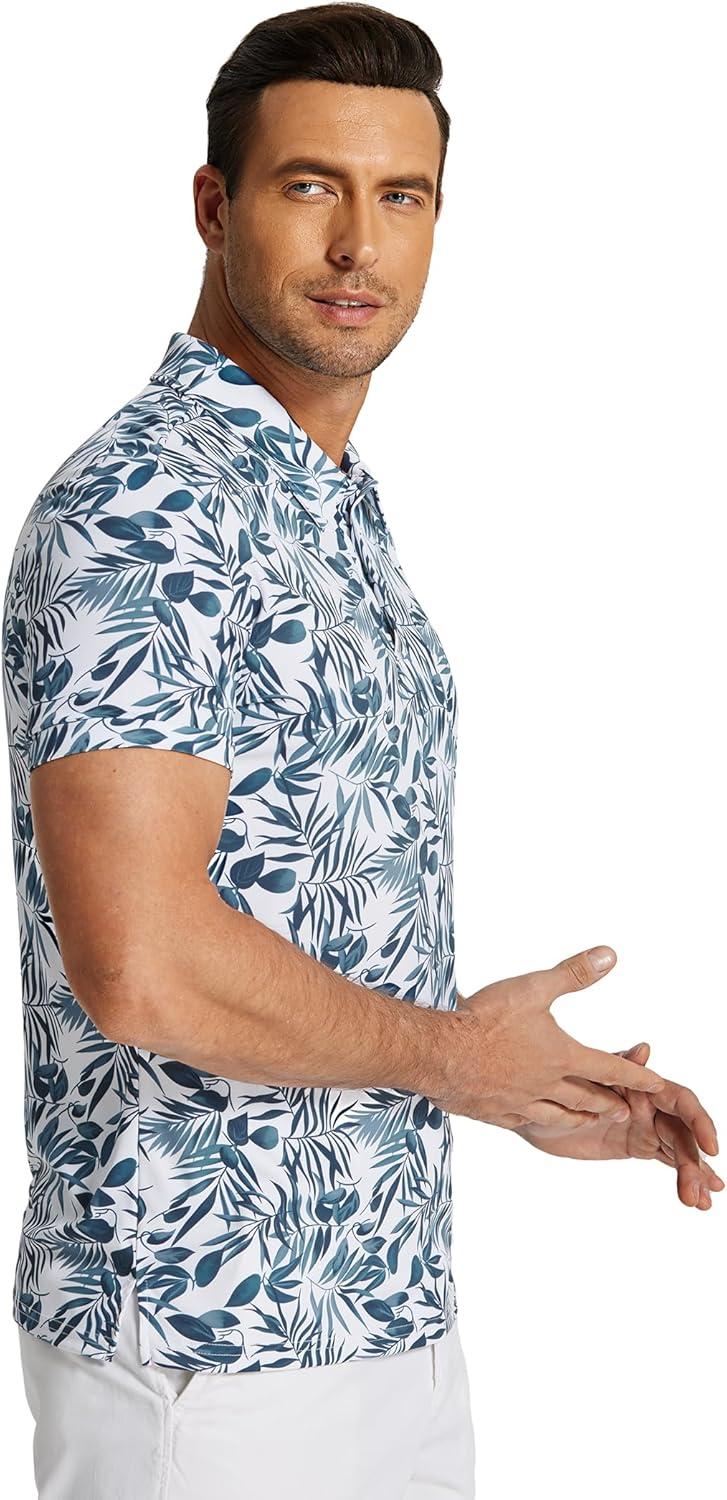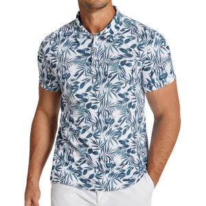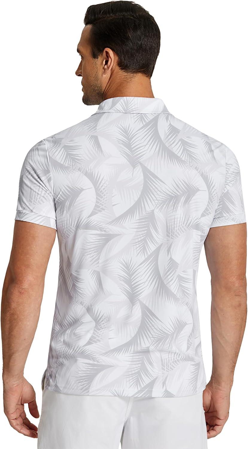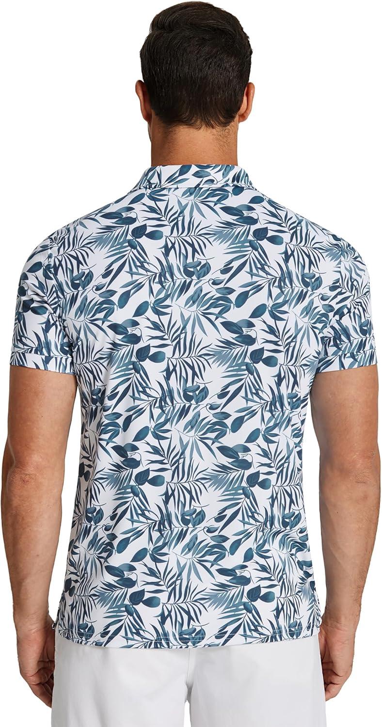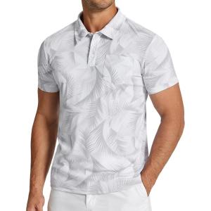 COOFANDY Men’s Polo Shirts Short Sleeve Print Performance Golf Shirts Fashion Casual Beach Collared T-Shirts(White (Grey Blue Leaf))