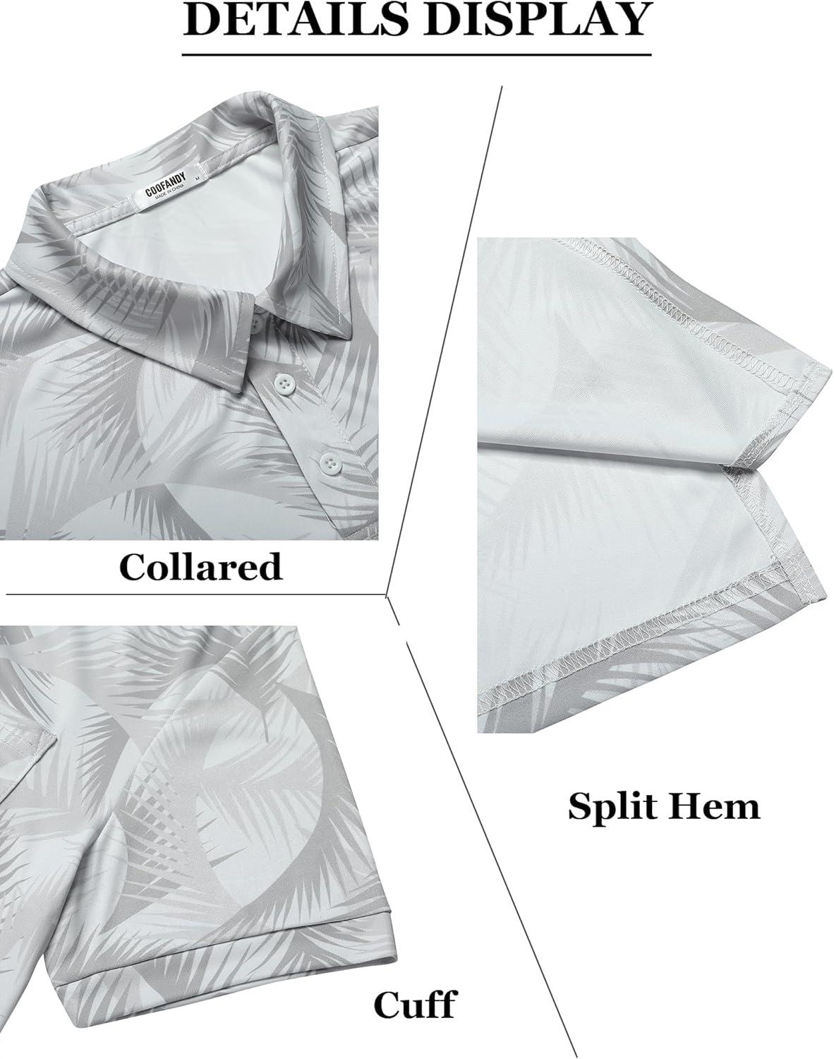 COOFANDY Men’s Polo Shirts Short Sleeve Print Performance Golf Shirts Fashion Casual Beach Collared T-Shirts(Grey Leaf)