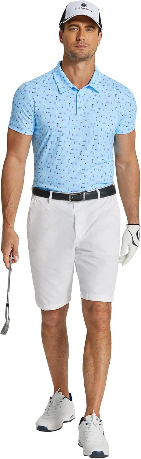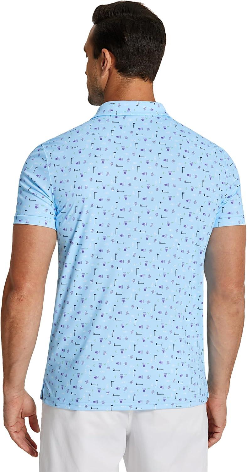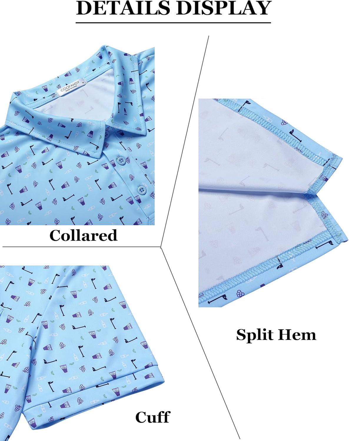COOFANDY Men’s Polo Shirts Short Sleeve Print Performance Golf Shirts Fashion Casual Beach Collared T-Shirts(Light Blue (Flag))