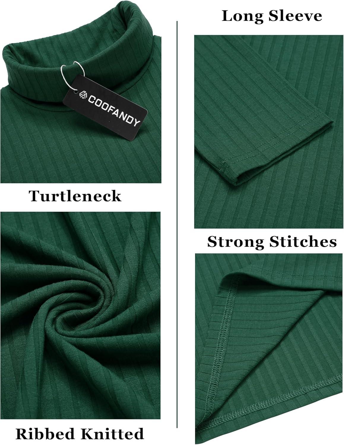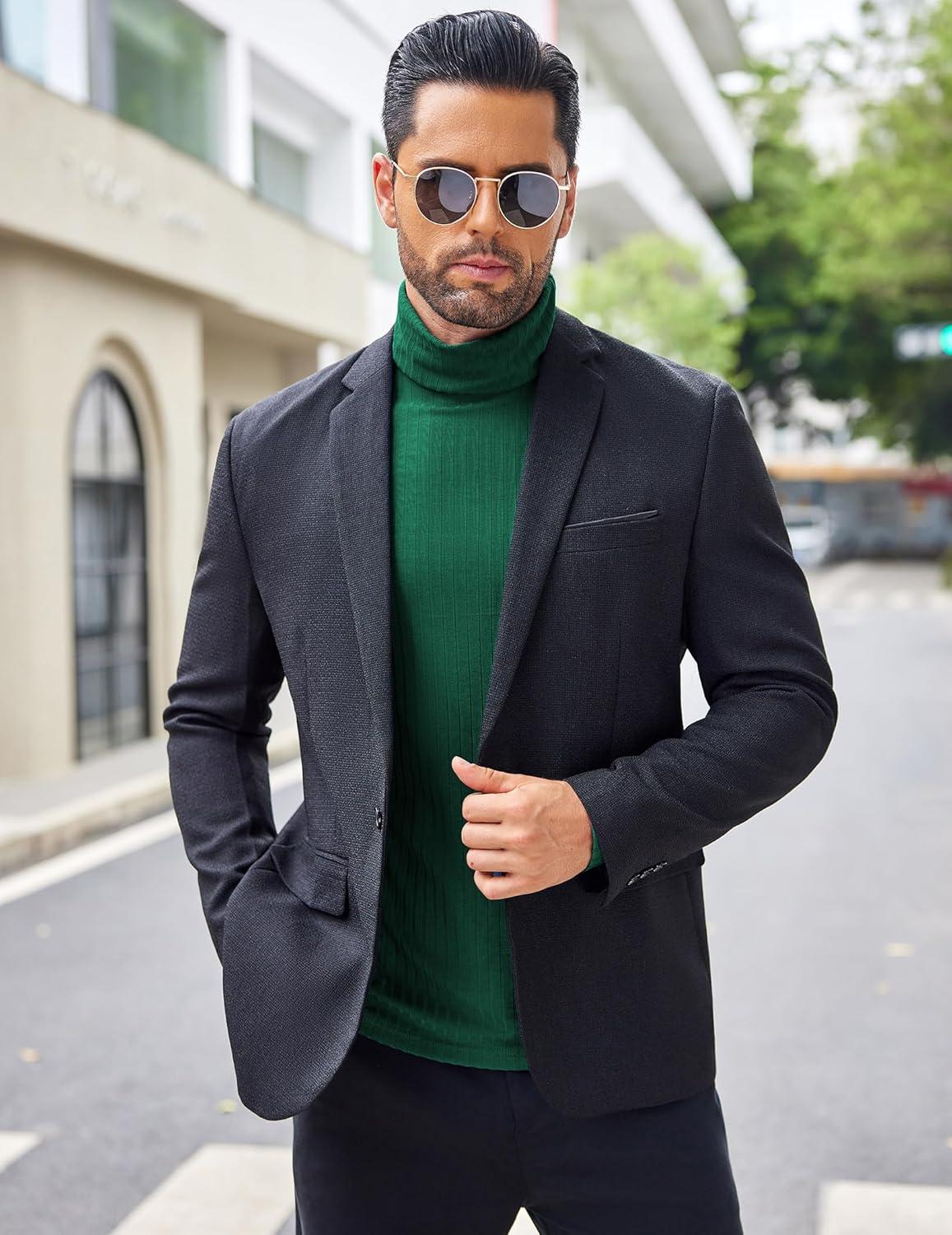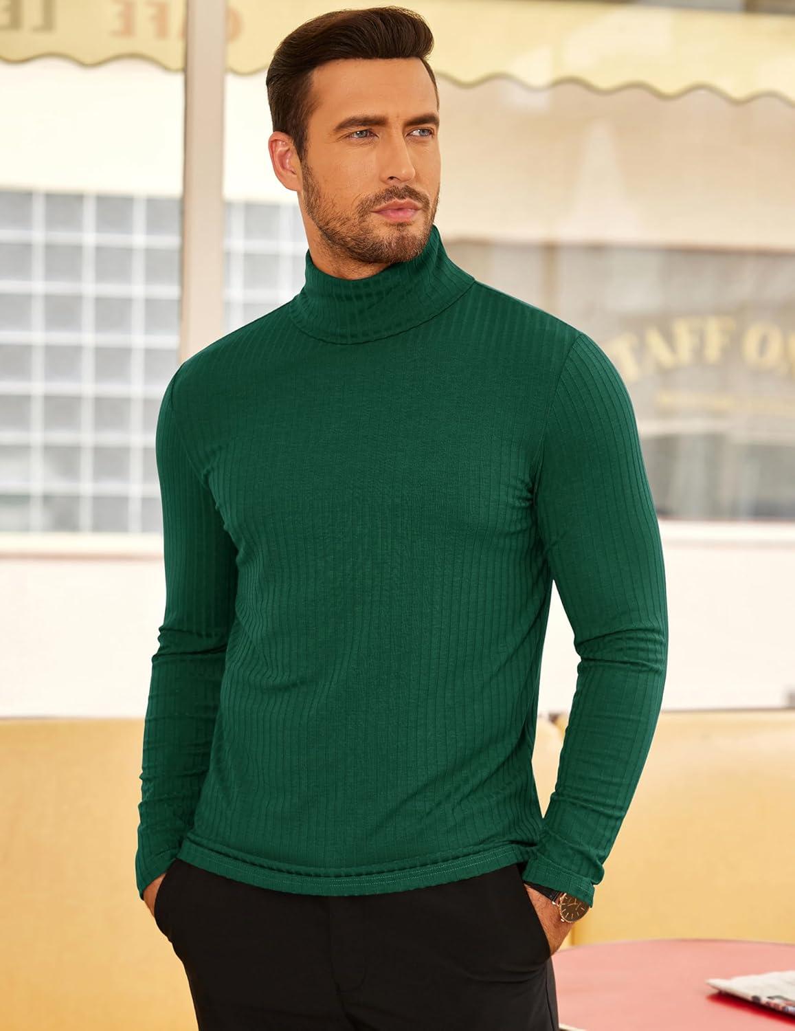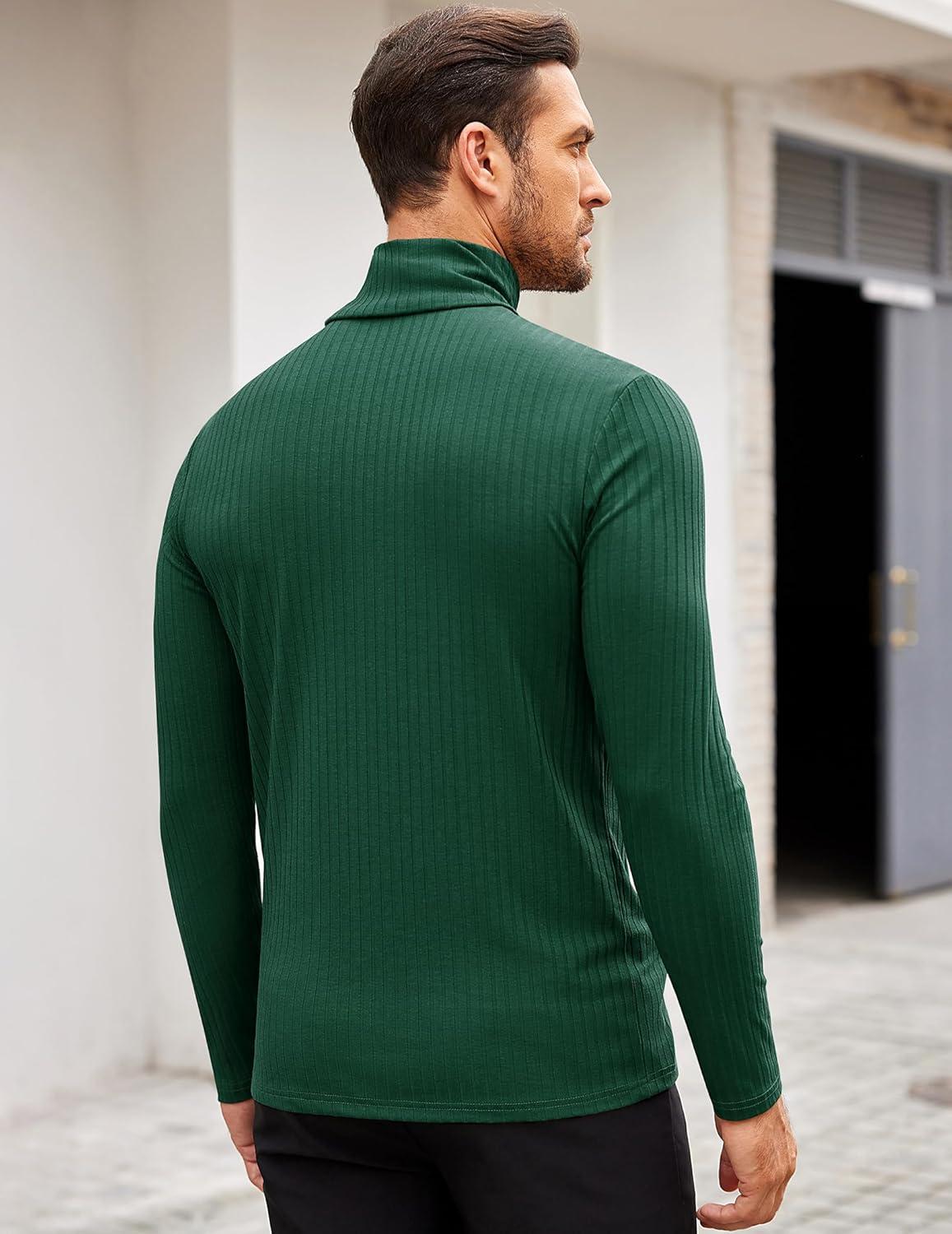 COOFANDY Men’s Turtleneck Sweater Slim Fit Lightweight Basic Ribbed Sweaters(Green)
