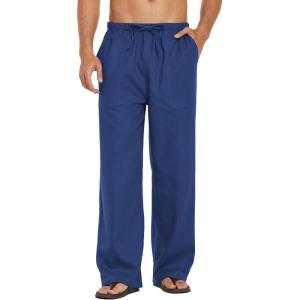 COOFANDY Mens Casual Linen Pants Elastic Waist Linen Pants Drawstring Summer Beach Yoga Linen Trouser(Navy Blue)