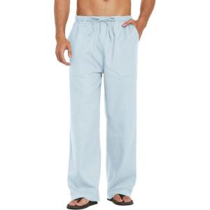 COOFANDY Mens Casual Linen Pants Elastic Waist Linen Pants Drawstring Summer Beach Yoga Linen Trouser(Light Blue)