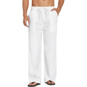 COOFANDY Mens Casual Linen Pants Elastic Waist Linen Pants Drawstring Summer Beach Yoga Linen Trouser(White)