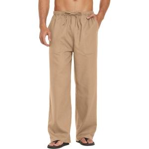 COOFANDY Mens Casual Linen Pants Elastic Waist Linen Pants Drawstring Summer Beach Yoga Linen Trouser(Khaki)