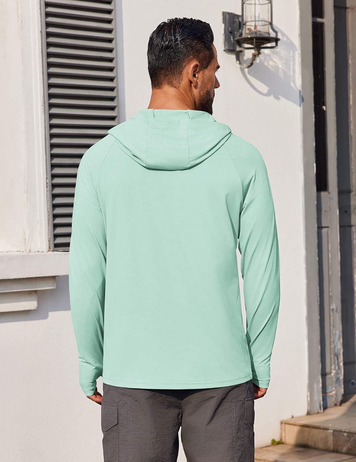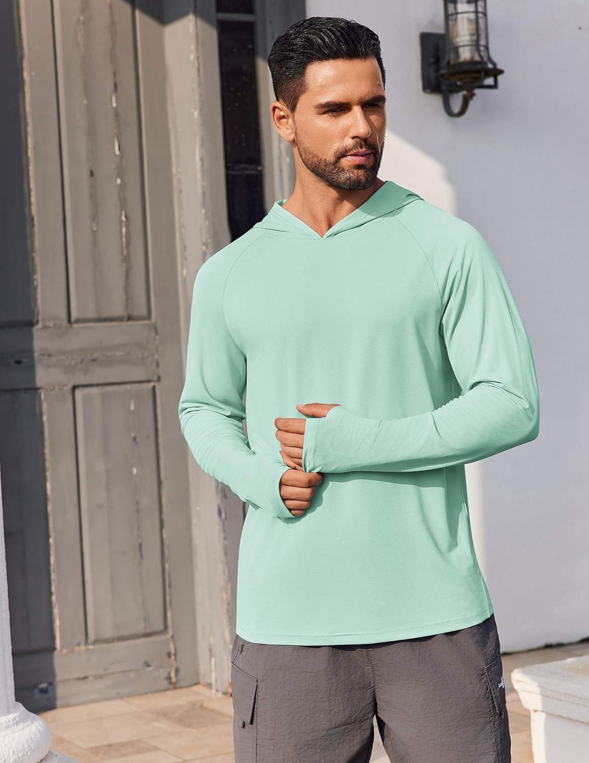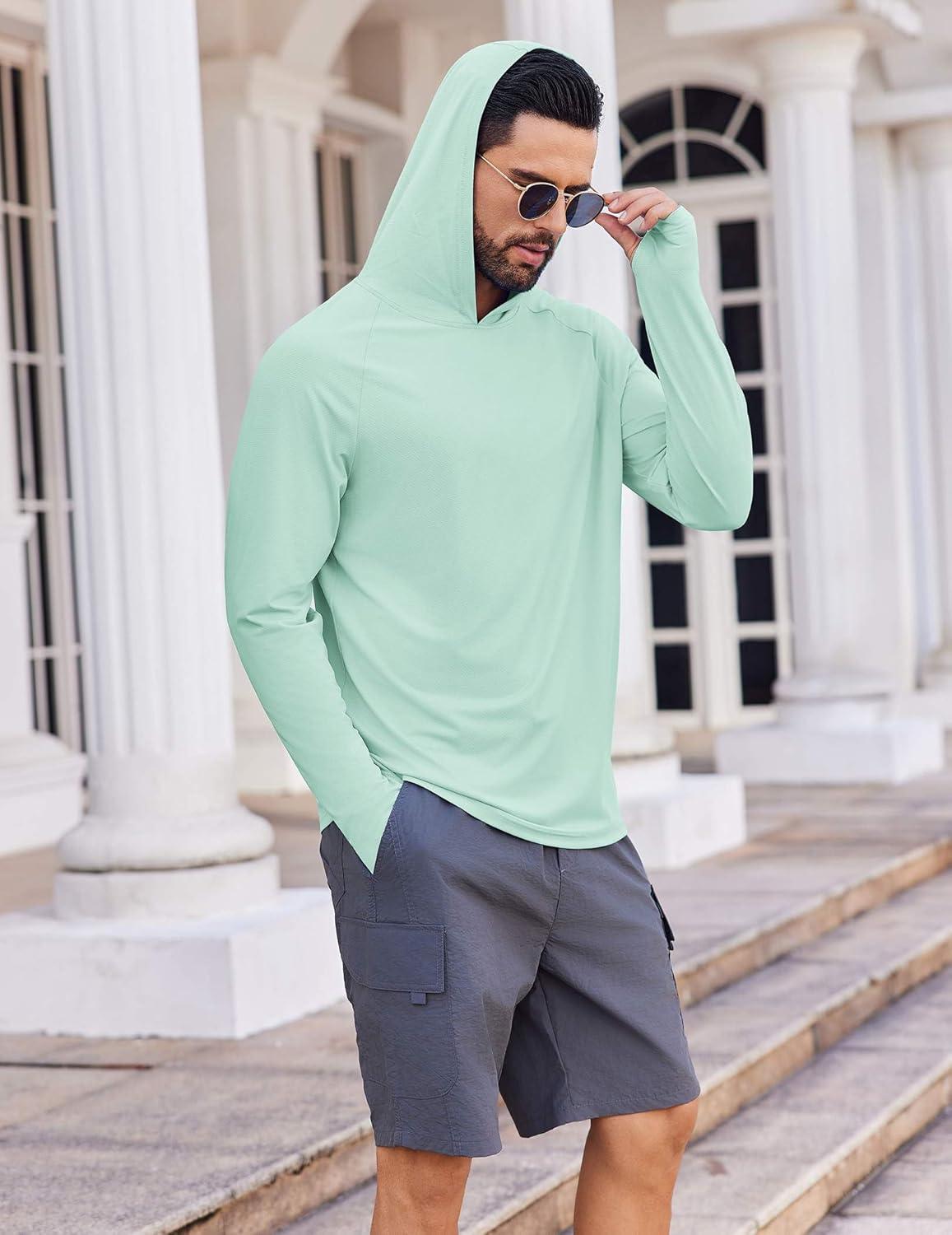 COOFANDY Mens UPF 50+ Hoodie Shirts Long Sleeve Rash Guard Sun Protection Fishing Shirts Lightweight Quick Dry Hoodies(Mint Green)