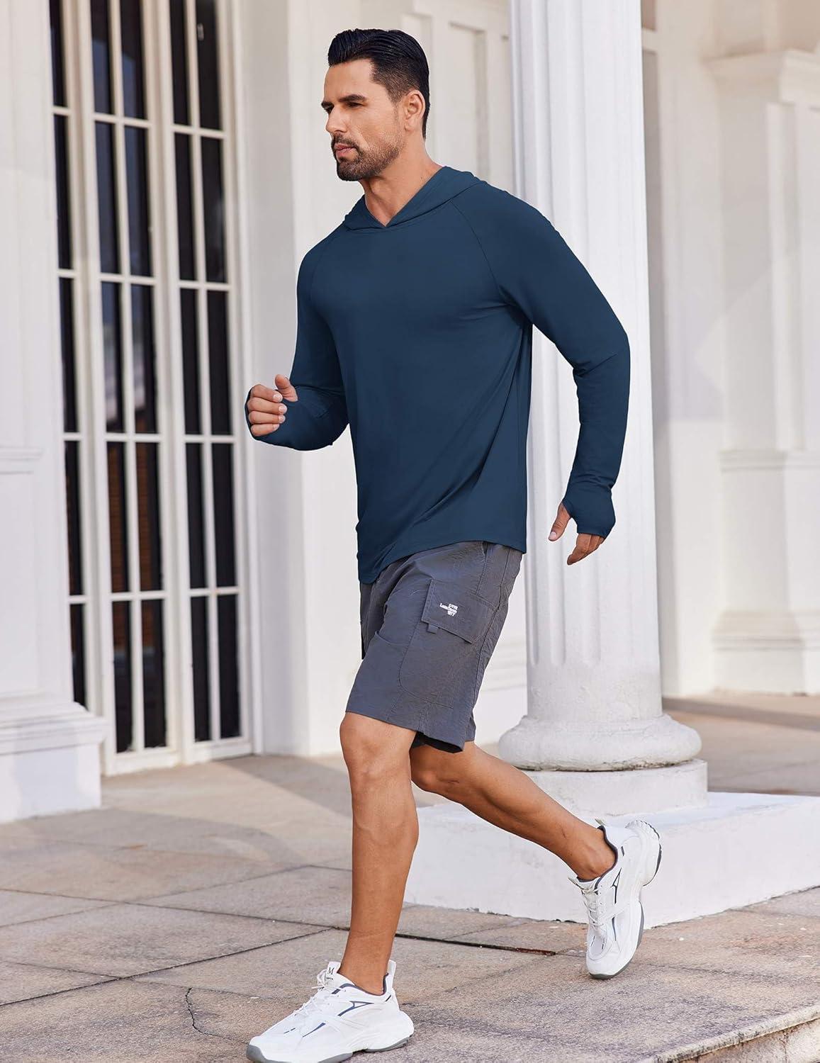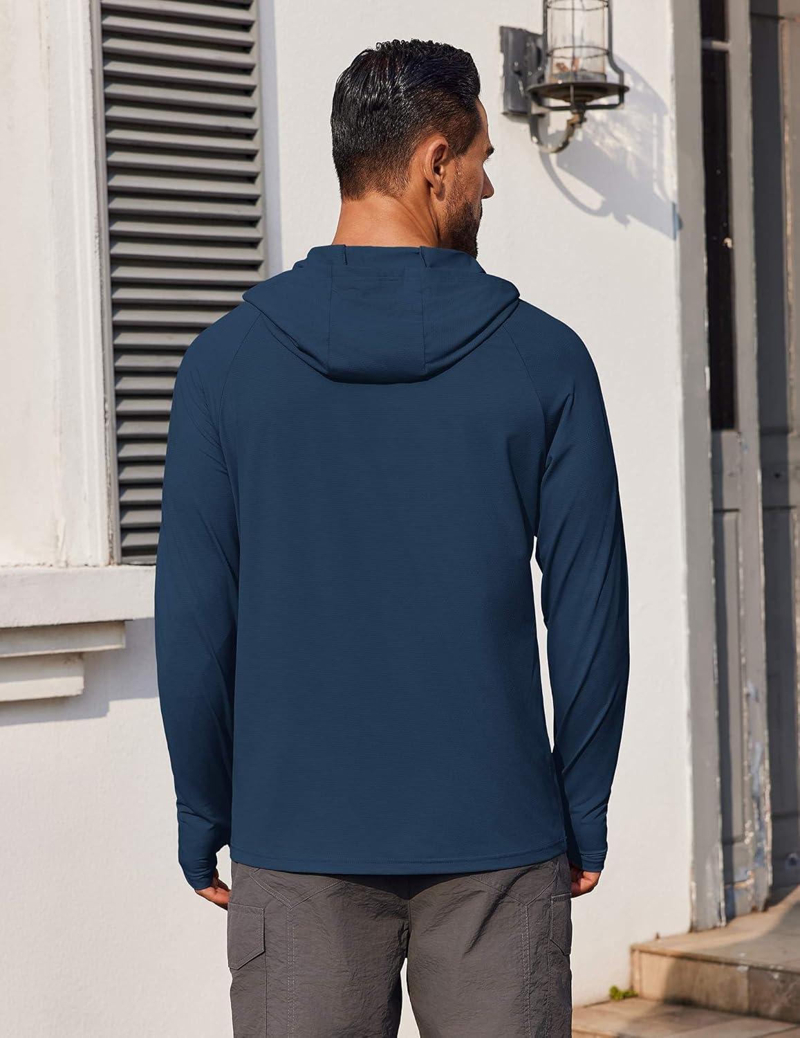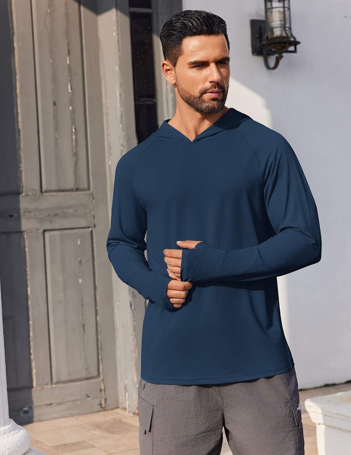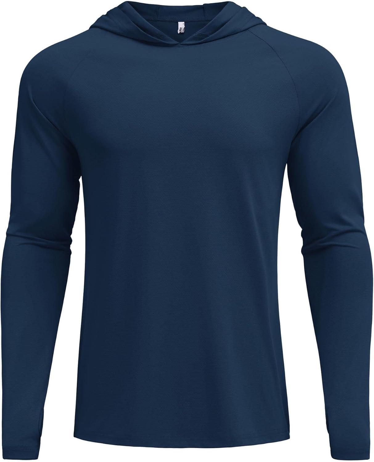 COOFANDY Mens UPF 50+ Hoodie Shirts Long Sleeve Rash Guard Sun Protection Fishing Shirts Lightweight Quick Dry Hoodies(Navy Blue)
