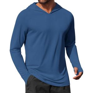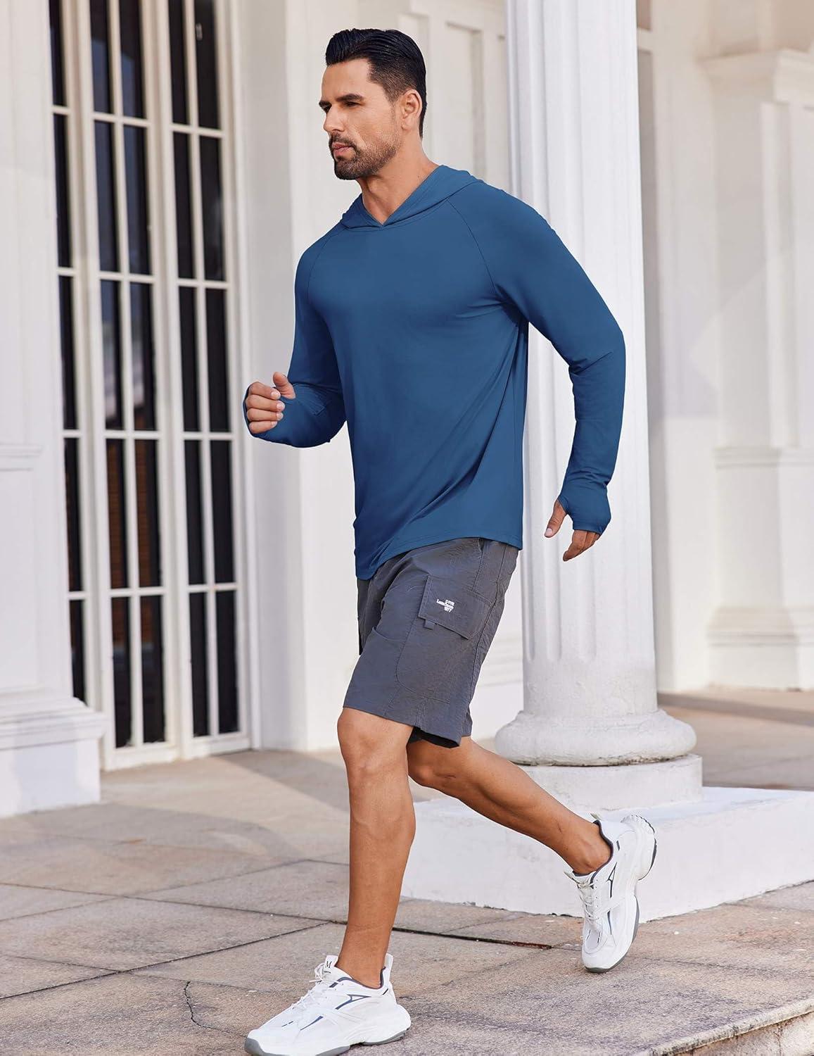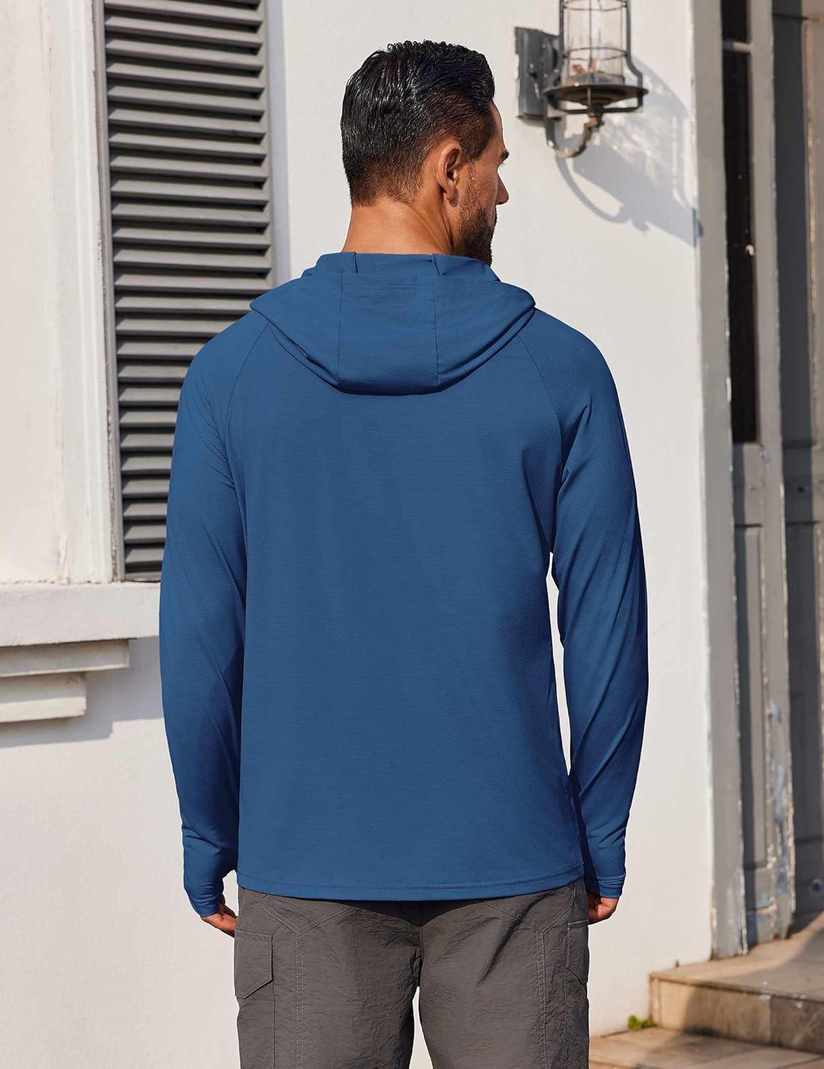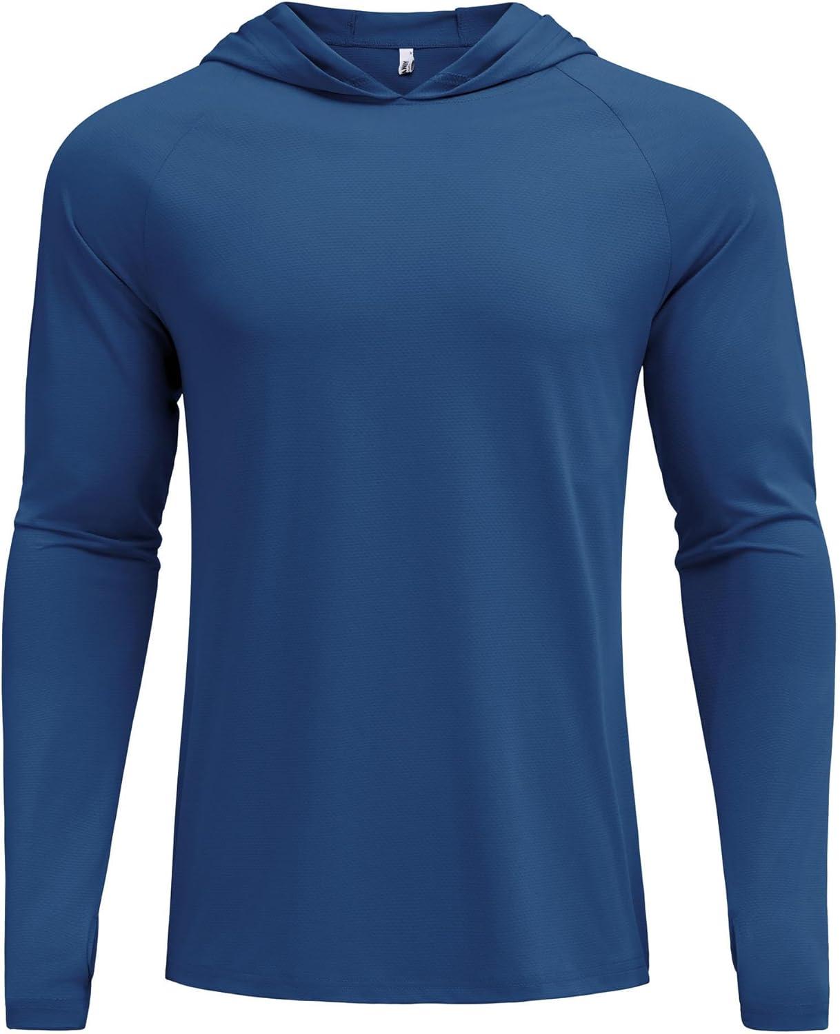 COOFANDY Mens UPF 50+ Hoodie Shirts Long Sleeve Rash Guard Sun Protection Fishing Shirts Lightweight Quick Dry Hoodies(Ocean Blue)
