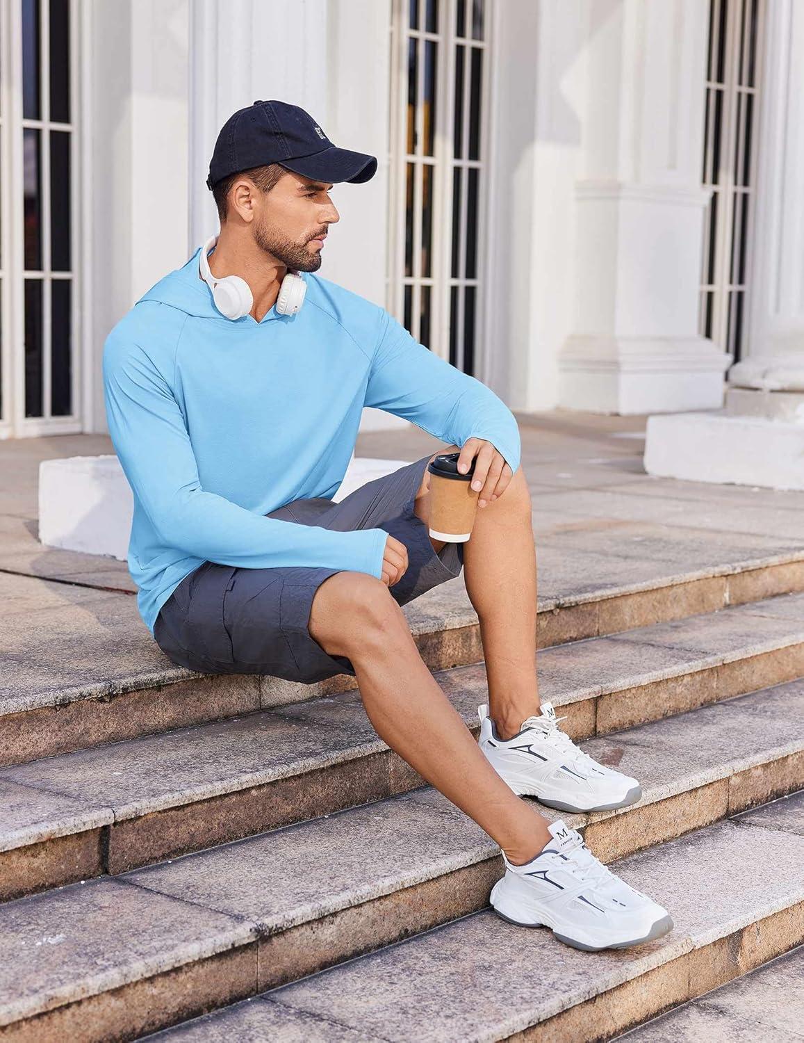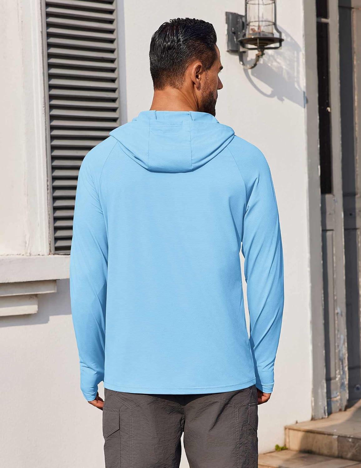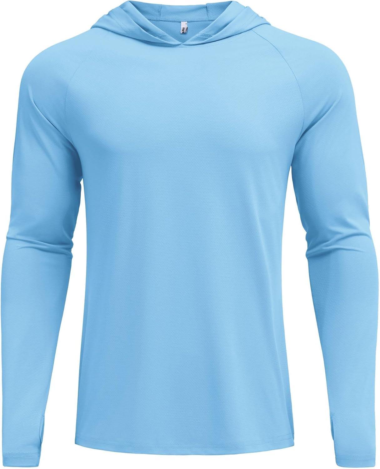 COOFANDY Mens UPF 50+ Hoodie Shirts Long Sleeve Rash Guard Sun Protection Fishing Shirts Lightweight Quick Dry Hoodies(Sky Blue)