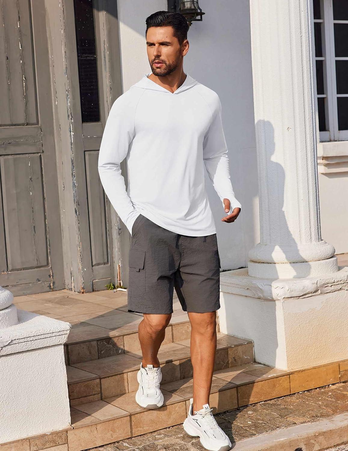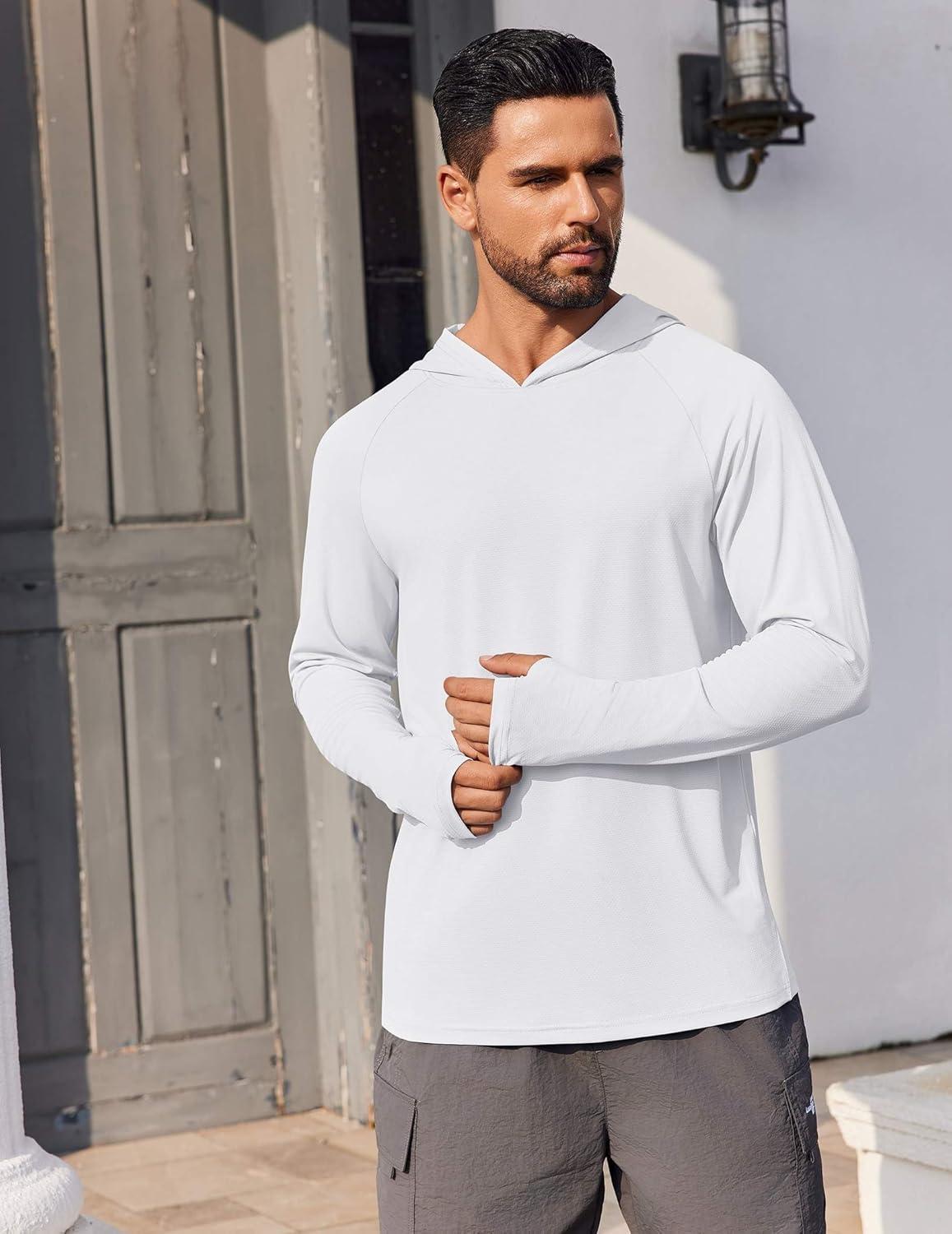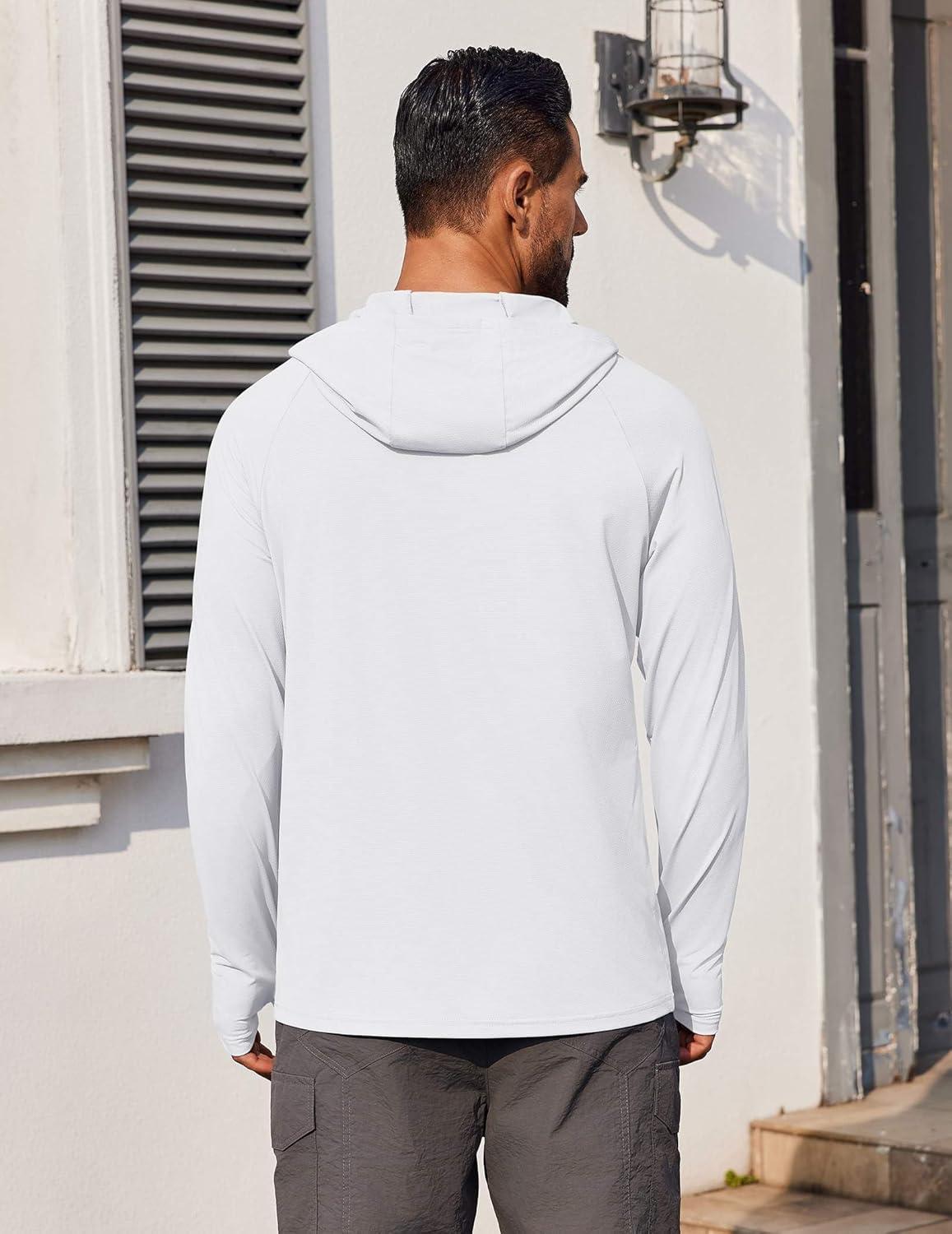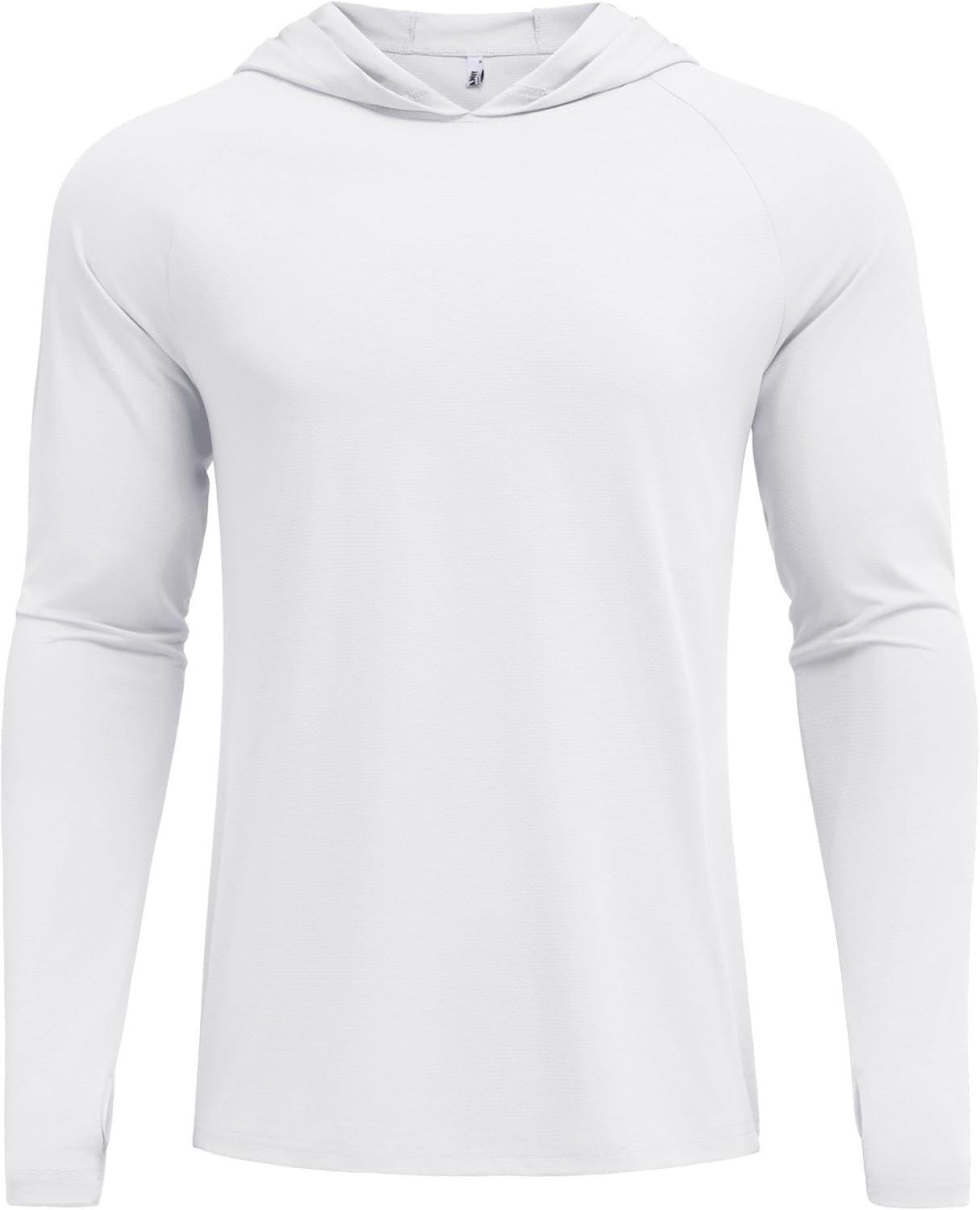 COOFANDY Mens UPF 50+ Hoodie Shirts Long Sleeve Rash Guard Sun Protection Fishing Shirts Lightweight Quick Dry Hoodies(White)