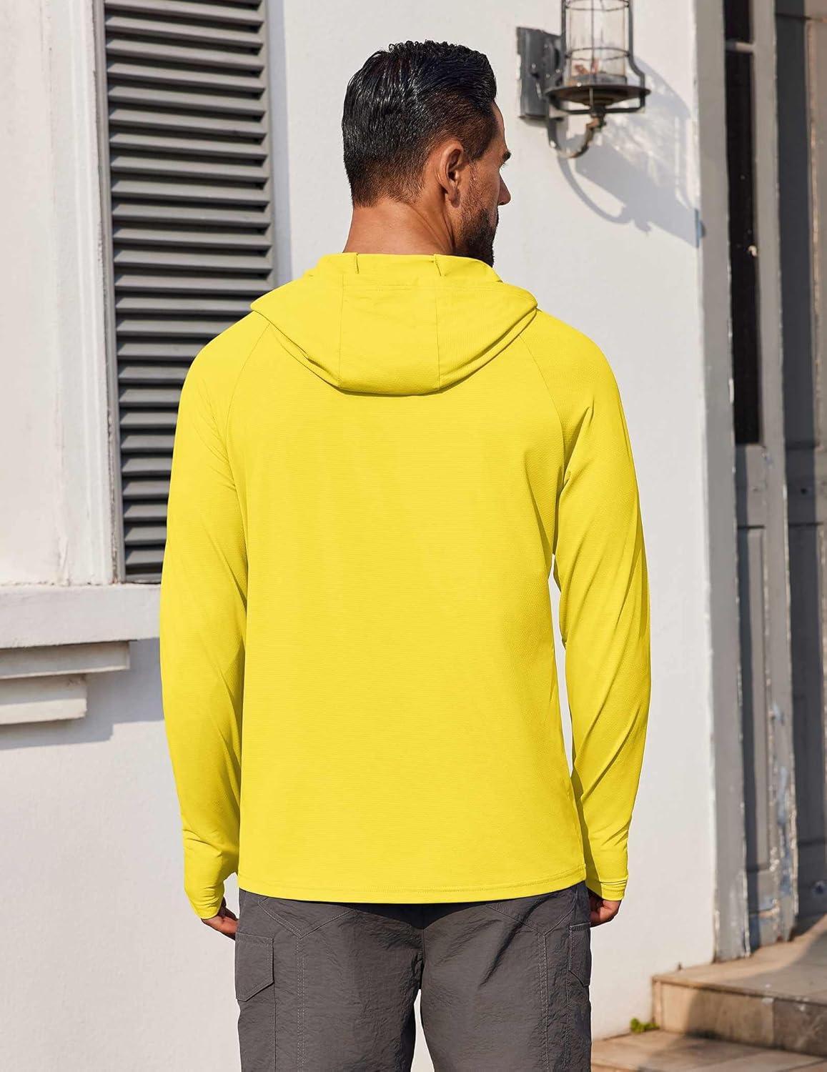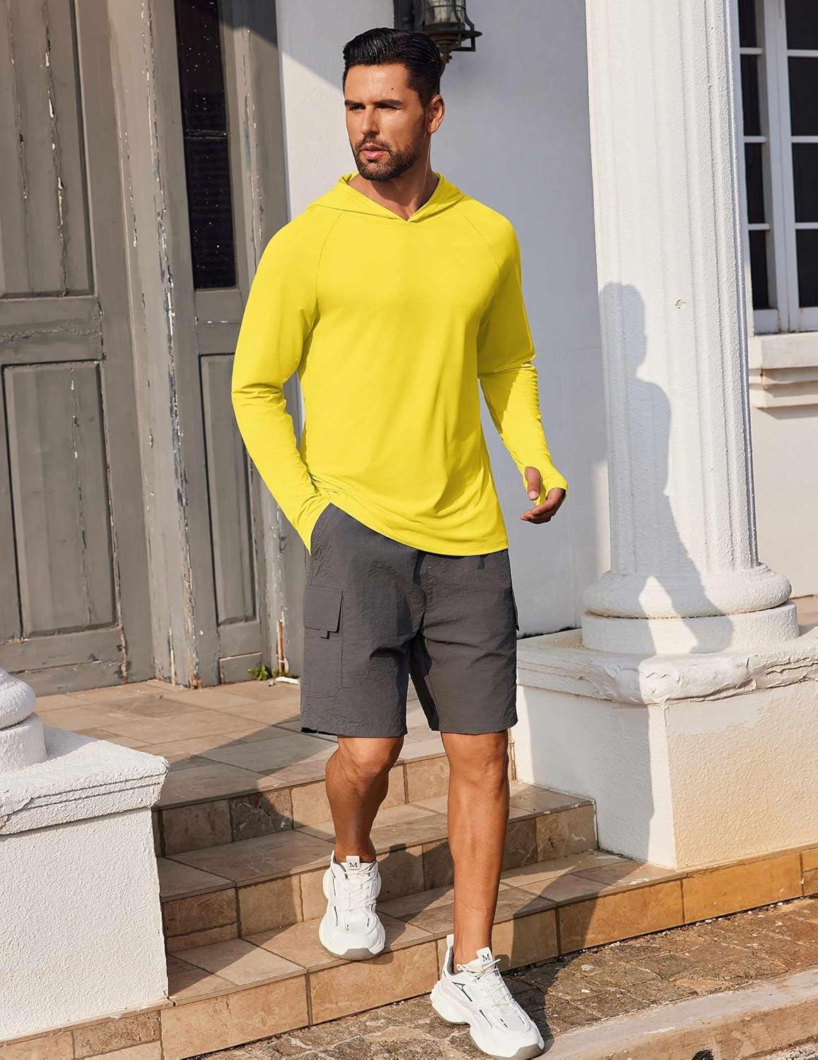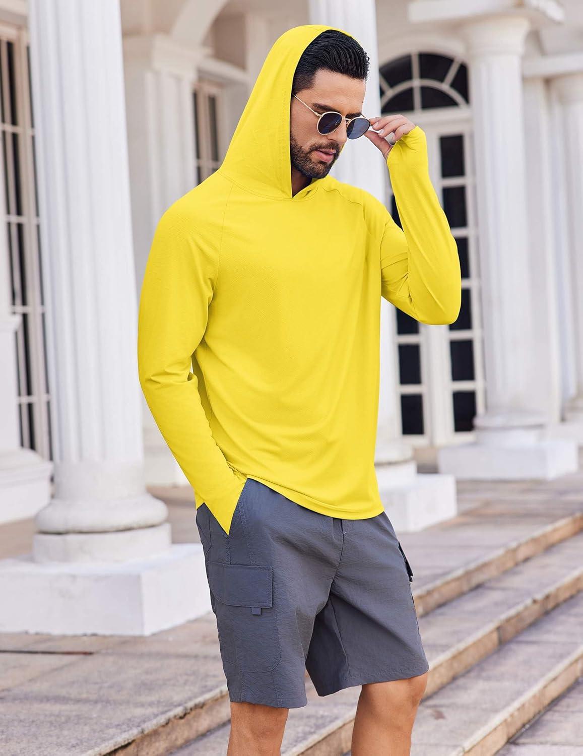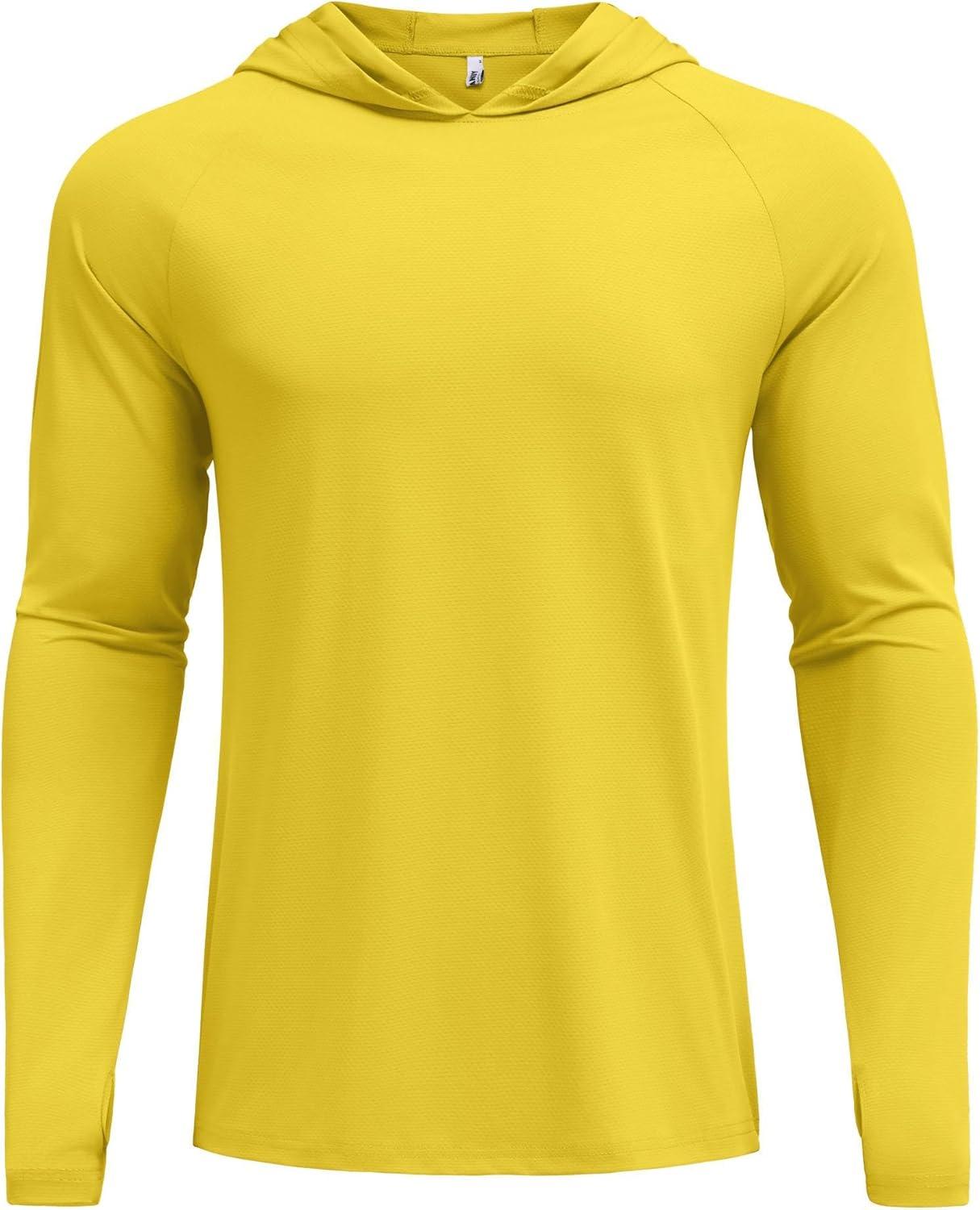 COOFANDY Mens UPF 50+ Hoodie Shirts Long Sleeve Rash Guard Sun Protection Fishing Shirts Lightweight Quick Dry Hoodies(Yellow)