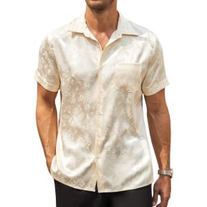 COOFANDY Mens Silk Button Down Short Sleeve Shirt Satin Dress Shirts Summer Beach Wedding Shirt(01 Light Khaki)