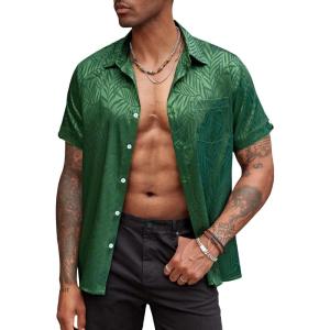 COOFANDY Mens Silk Button Down Short Sleeve Shirt Satin Dress Shirts Summer Beach Wedding Shirt(03 Deep Green)