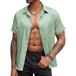 COOFANDY Mens Silk Button Down Short Sleeve Shirt Satin Dress Shirts Summer Beach Wedding Shirt(Light Green)
