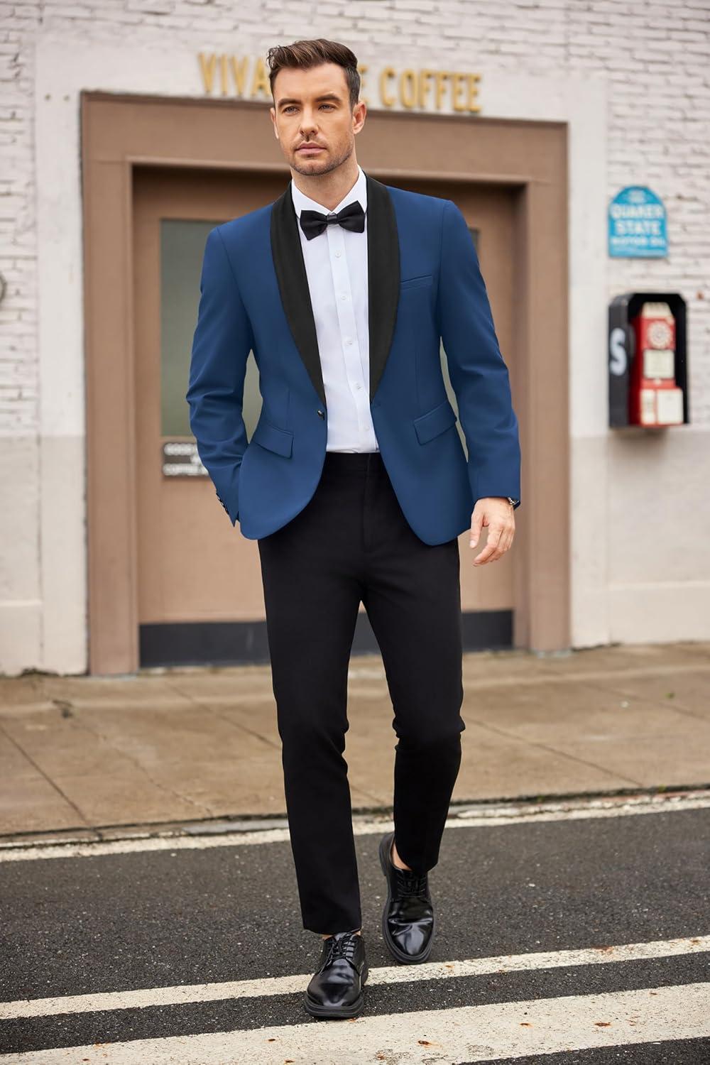 COOFANDY Mens Tuxedo Jacket Wedding Suit Jacket Slim Fit Blazer Jacket for Dinner, Prom, Party(Royal Blue)