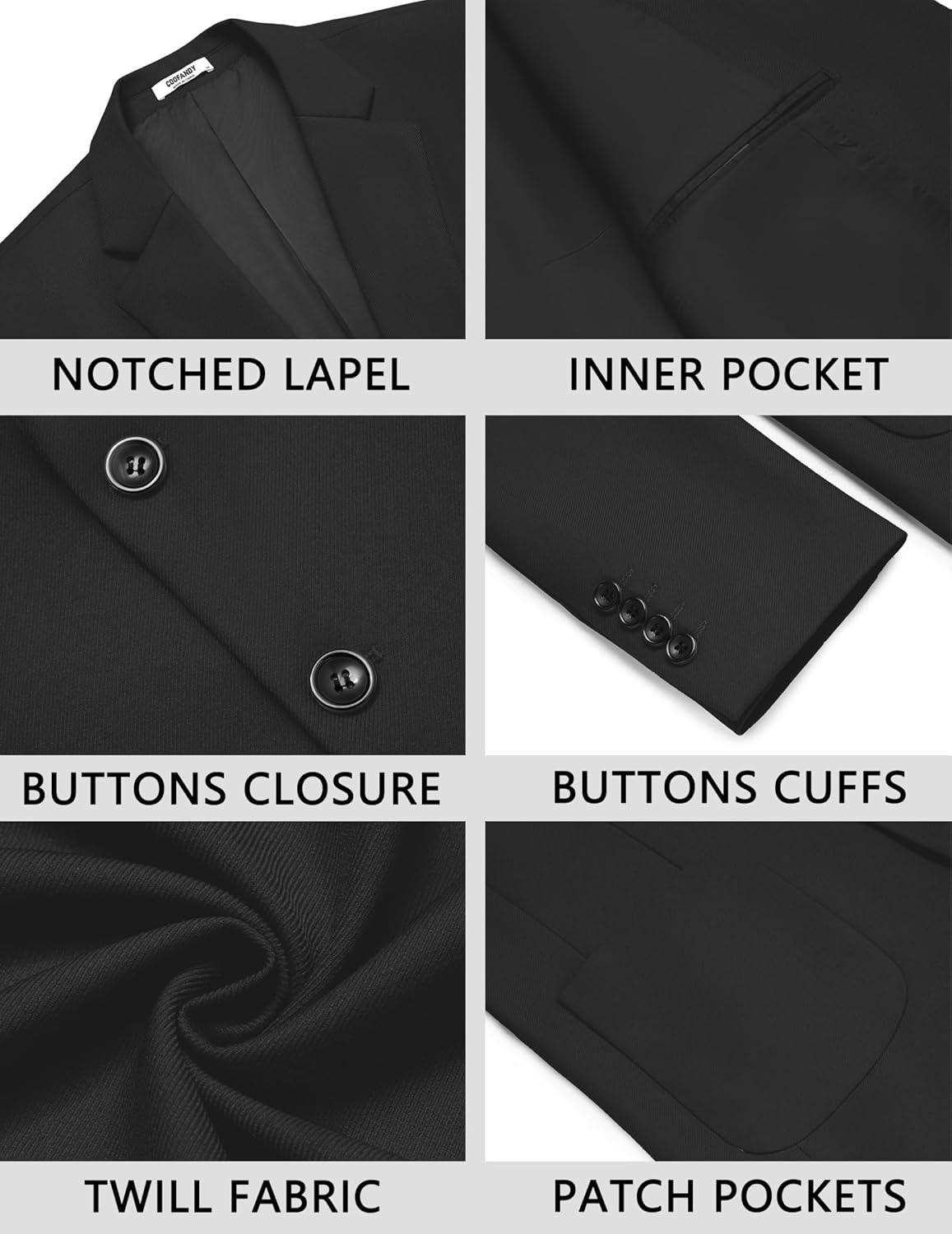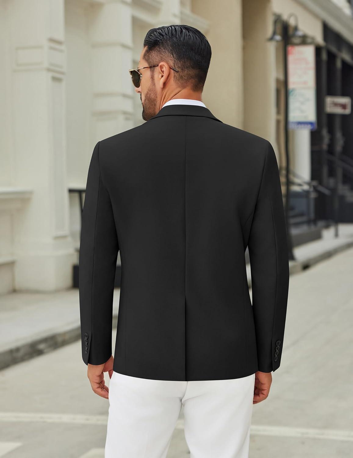 COOFANDY Men’s Casual Blazer Lightweight Slim Fit Suit Jacket Two Button Cotton Sport Coats(Black)