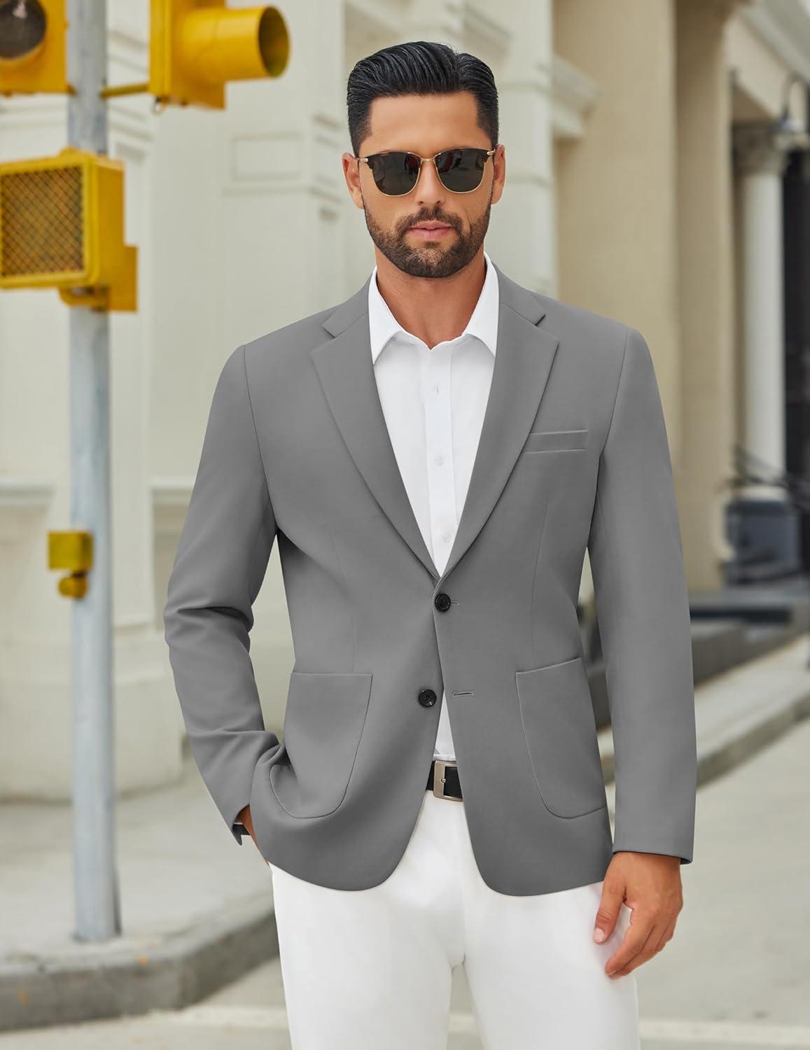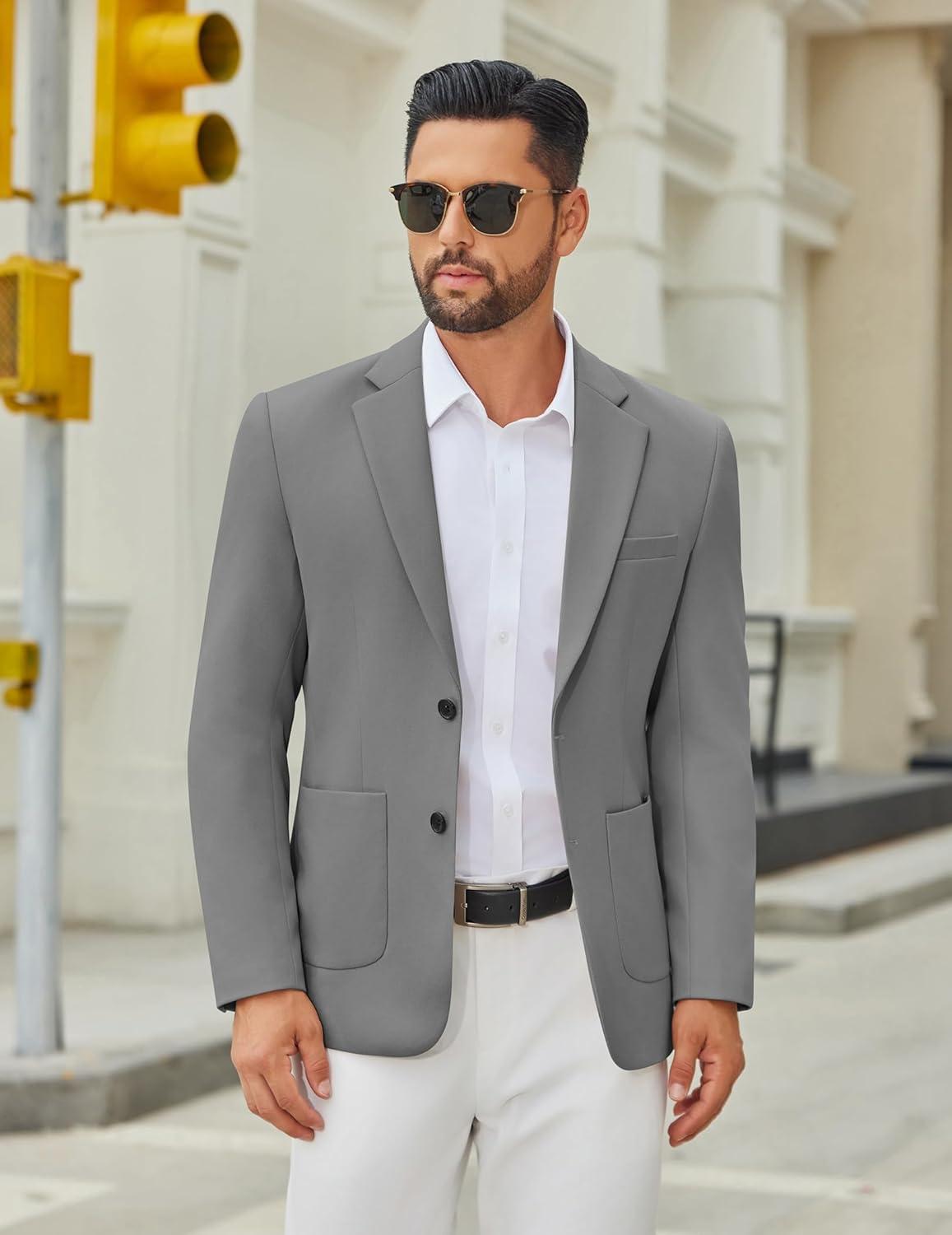 COOFANDY Men’s Casual Blazer Jacket Slim Fit Two Button Suit Jackets Lightweight Knit Sport Coat(Grey)