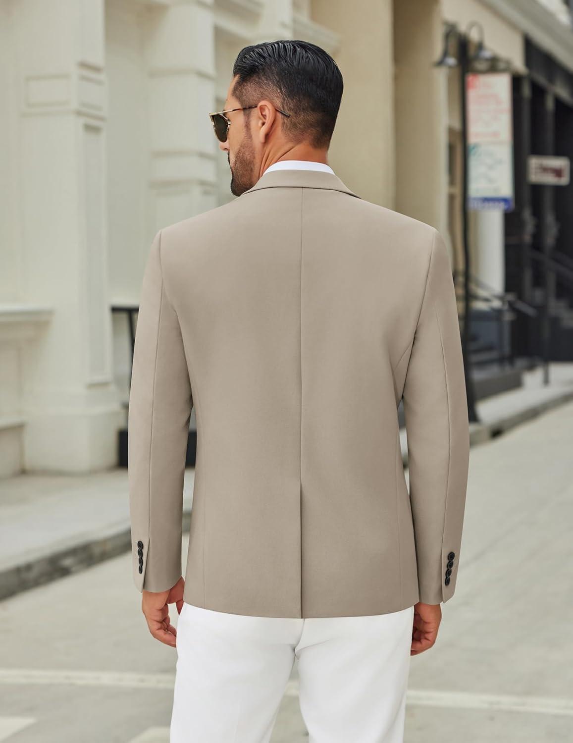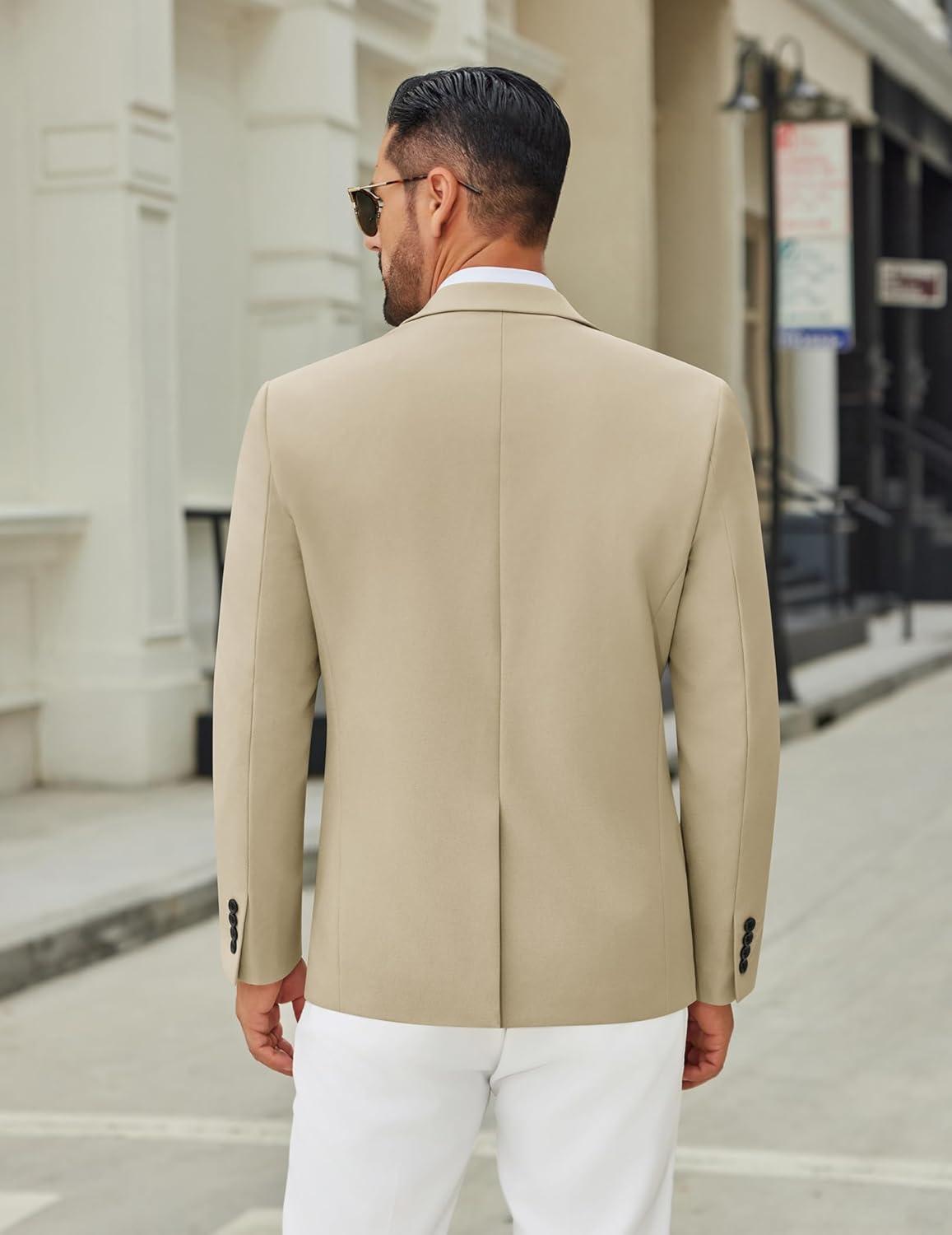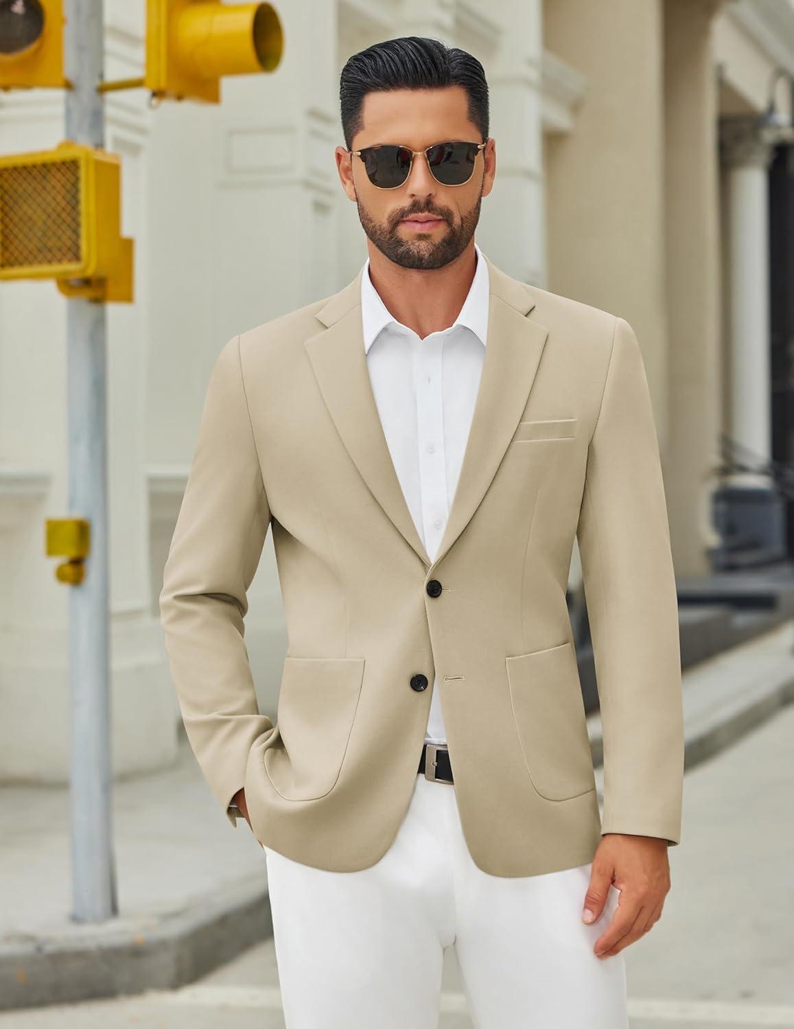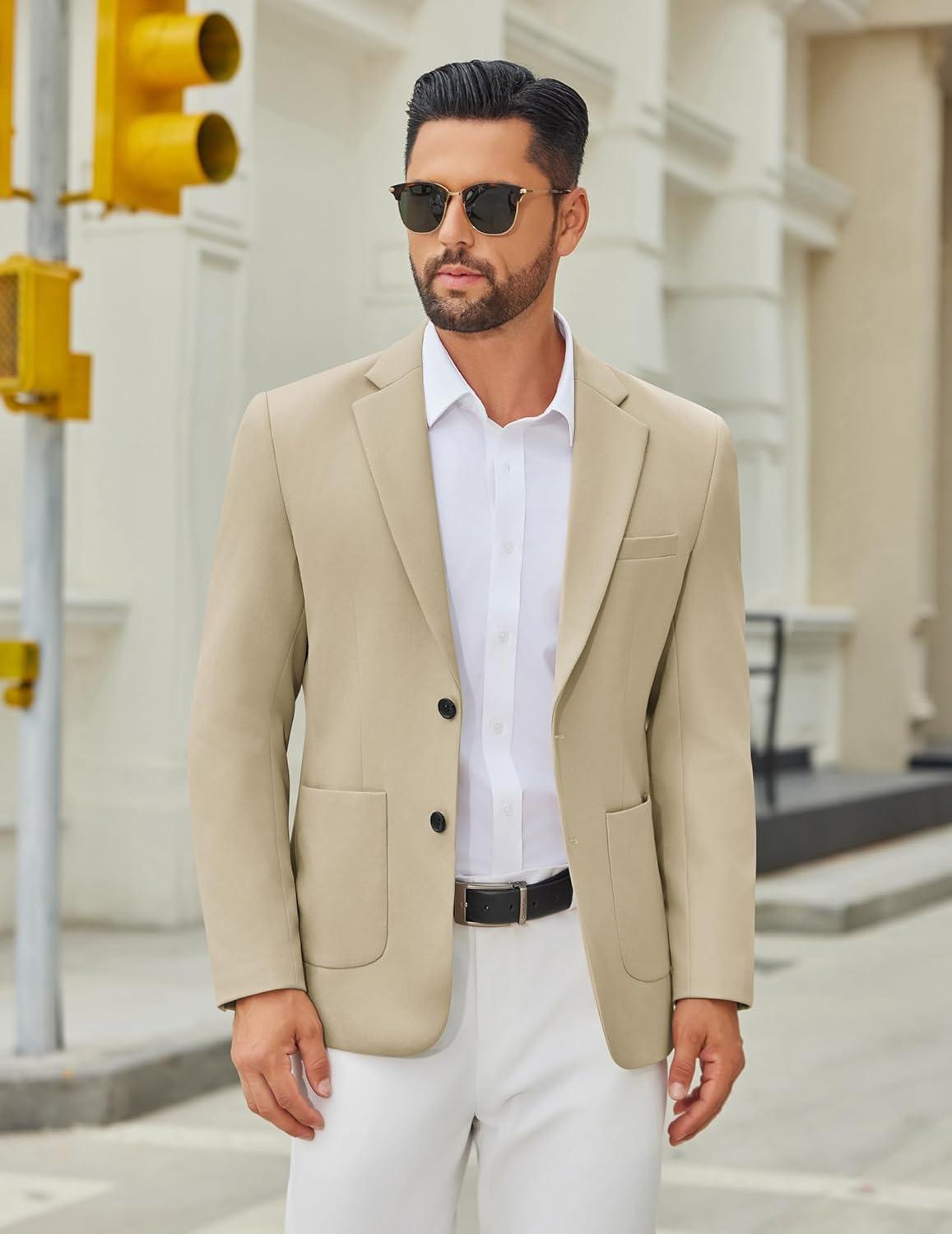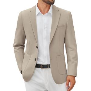 COOFANDY Men’s Casual Blazer Jacket Slim Fit Two Button Suit Jackets Lightweight Knit Sport Coat(Light Khaki)