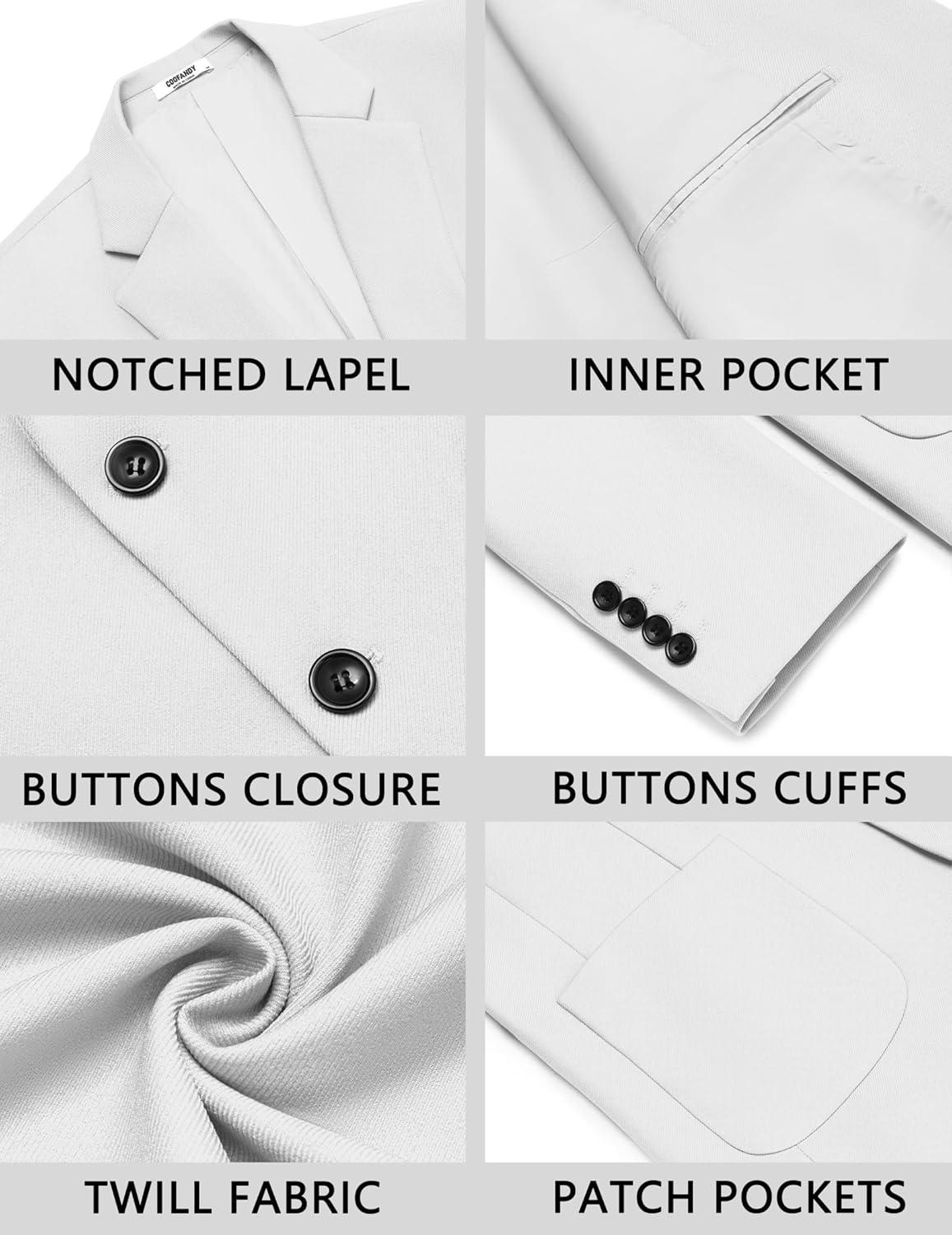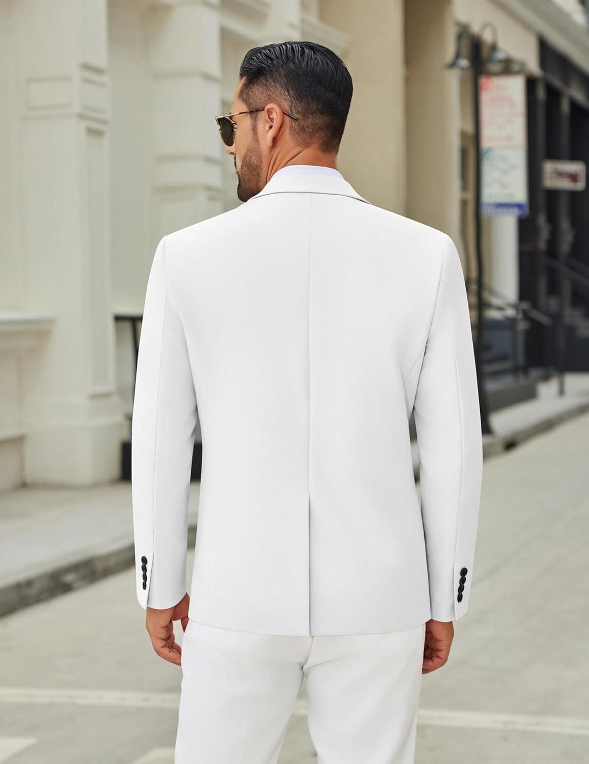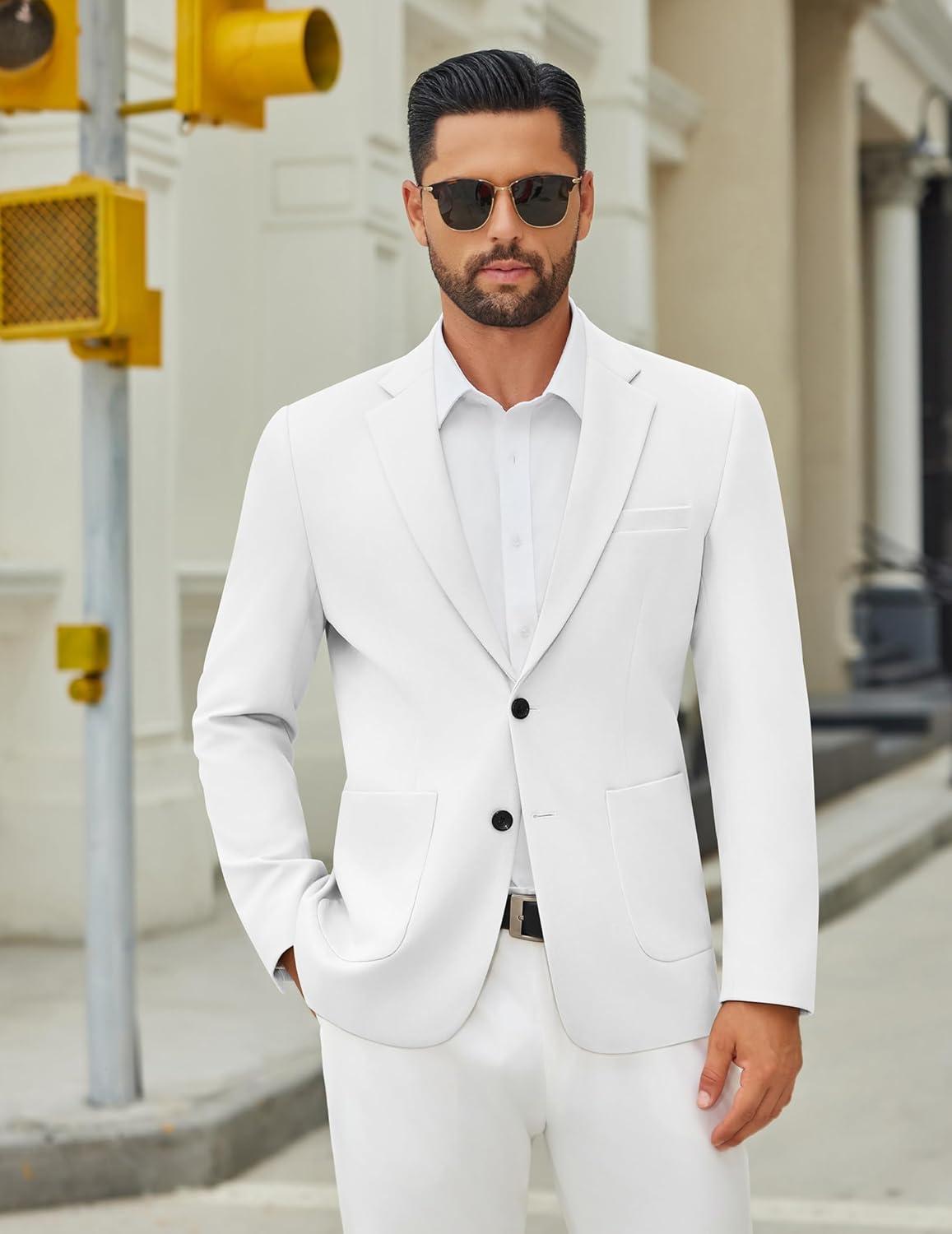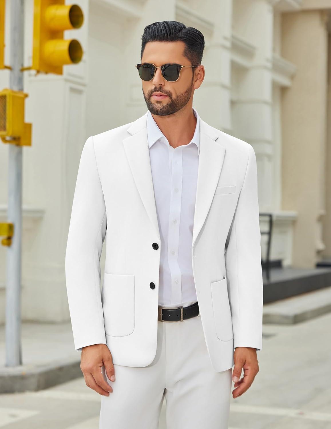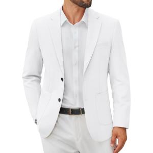 COOFANDY Men’s Casual Blazer Jacket One Button Suit Jackets Lightweight Knit Sport Coat(White)