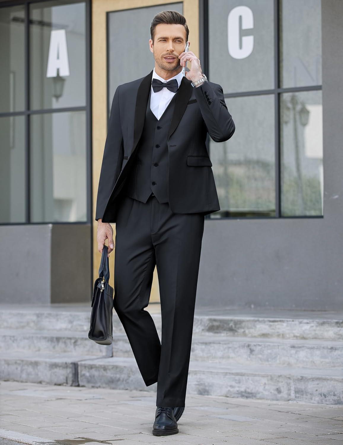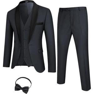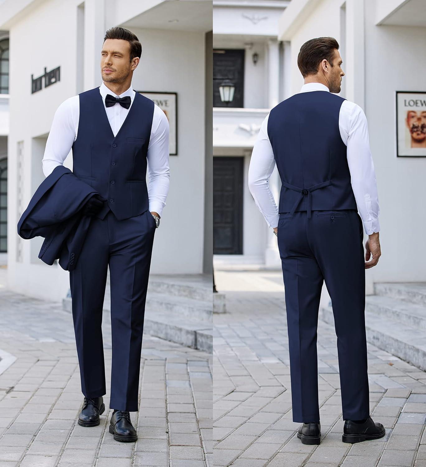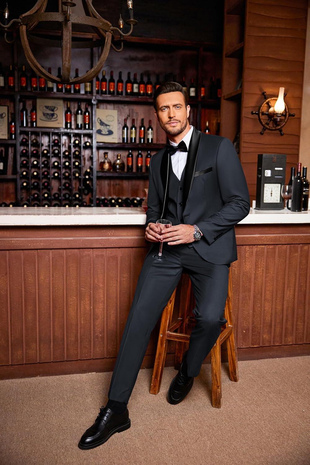 COOFANDY Men’s 3 Pieces Suit Slim Fit Tuxedo Set One Button Shawl Lapel Dinner Prom Jacket Vest Pants with Tie(Navy Blue)