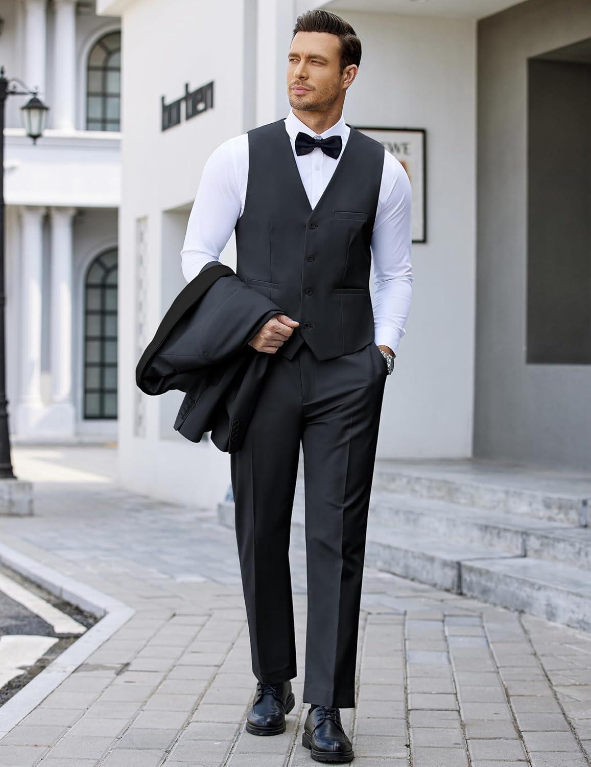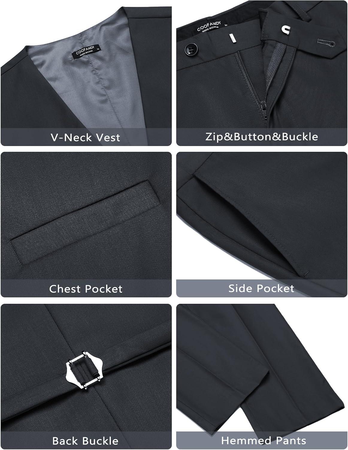 COOFANDY Men’s 3 Pieces Suit Slim Fit Tuxedo Set One Button Shawl Lapel Dinner Prom Jacket Vest Pants with Tie(Dgrey/Black)
