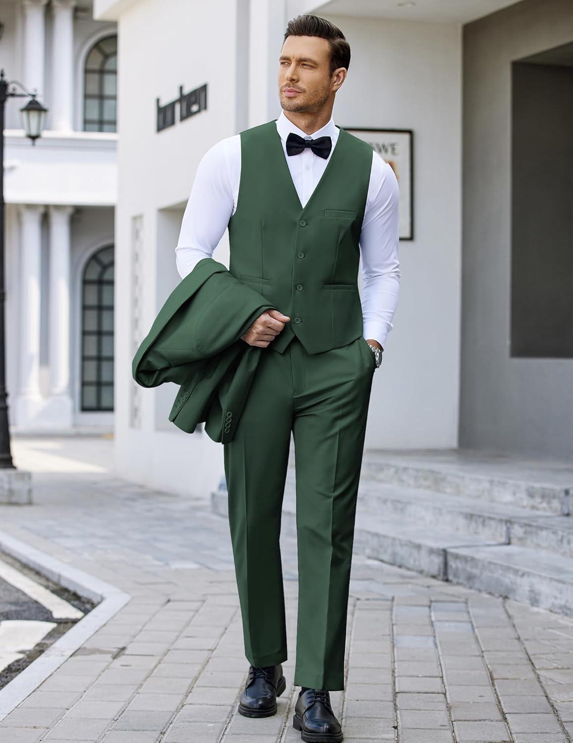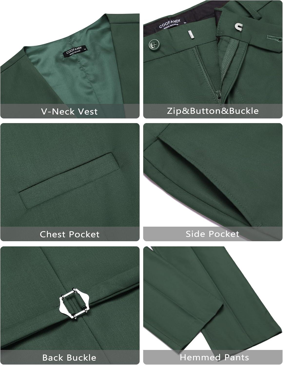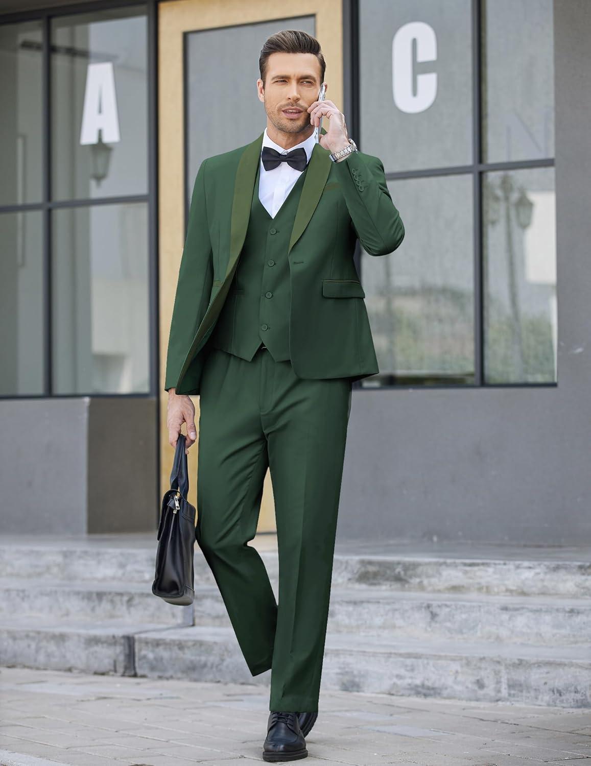 COOFANDY Men’s 3 Pieces Suit Slim Fit Tuxedo Set One Button Shawl Lapel Dinner Prom Jacket Vest Pants with Tie(Green)
