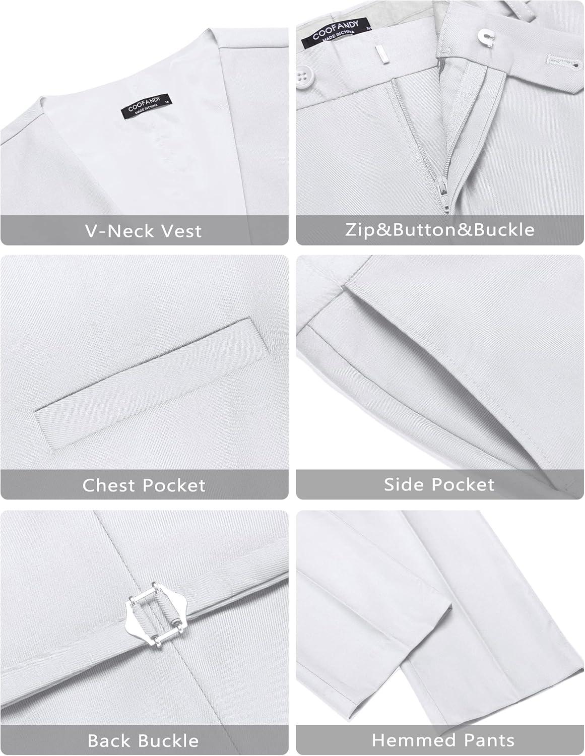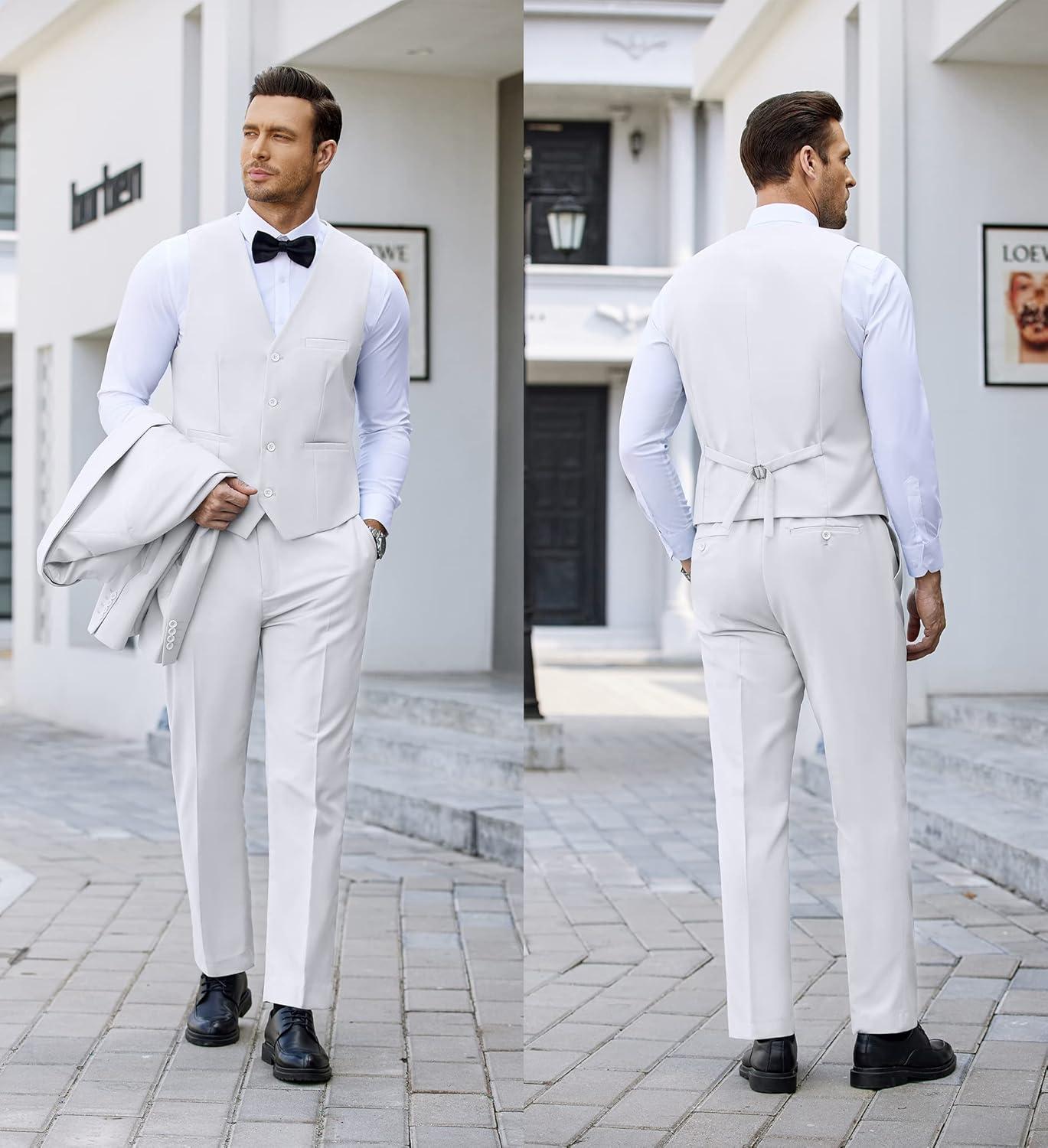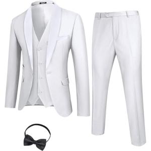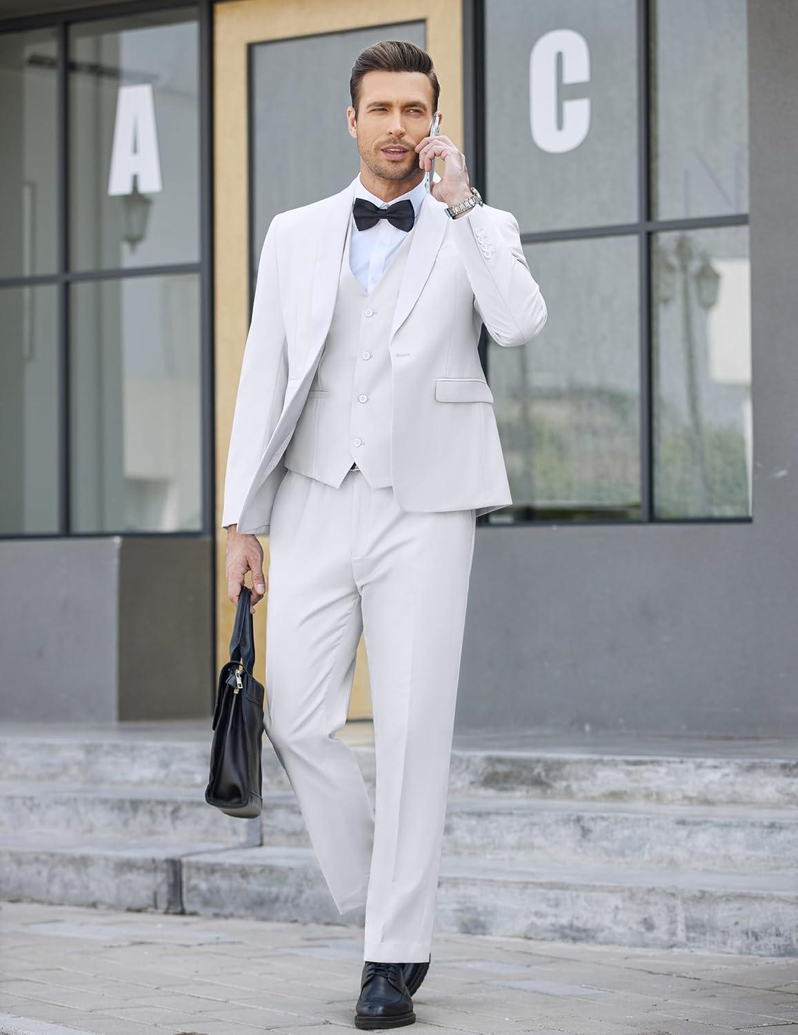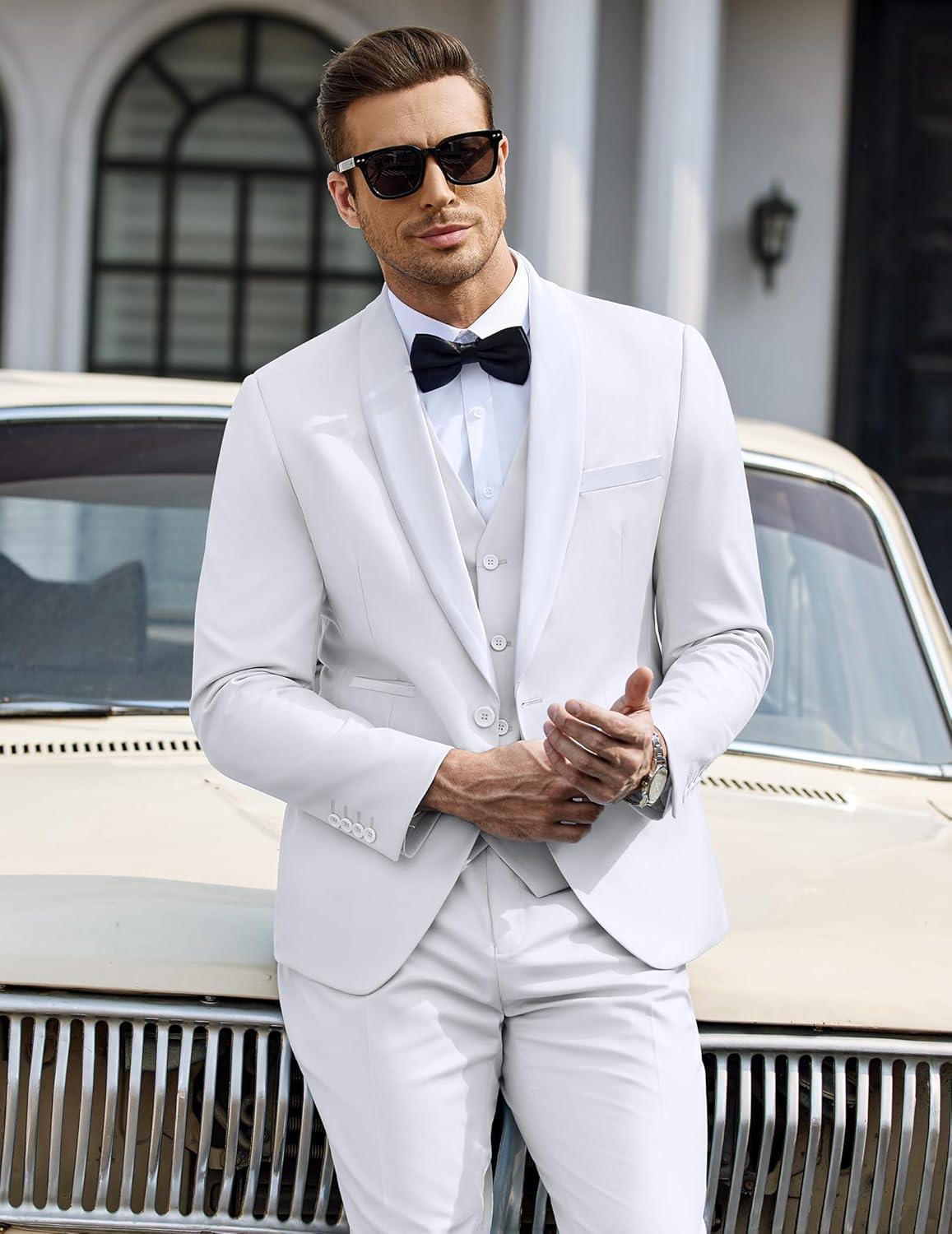COOFANDY Men’s 3 Pieces Suit Slim Fit Tuxedo Set One Button Shawl Lapel Dinner Prom Jacket Vest Pants with Tie(White)