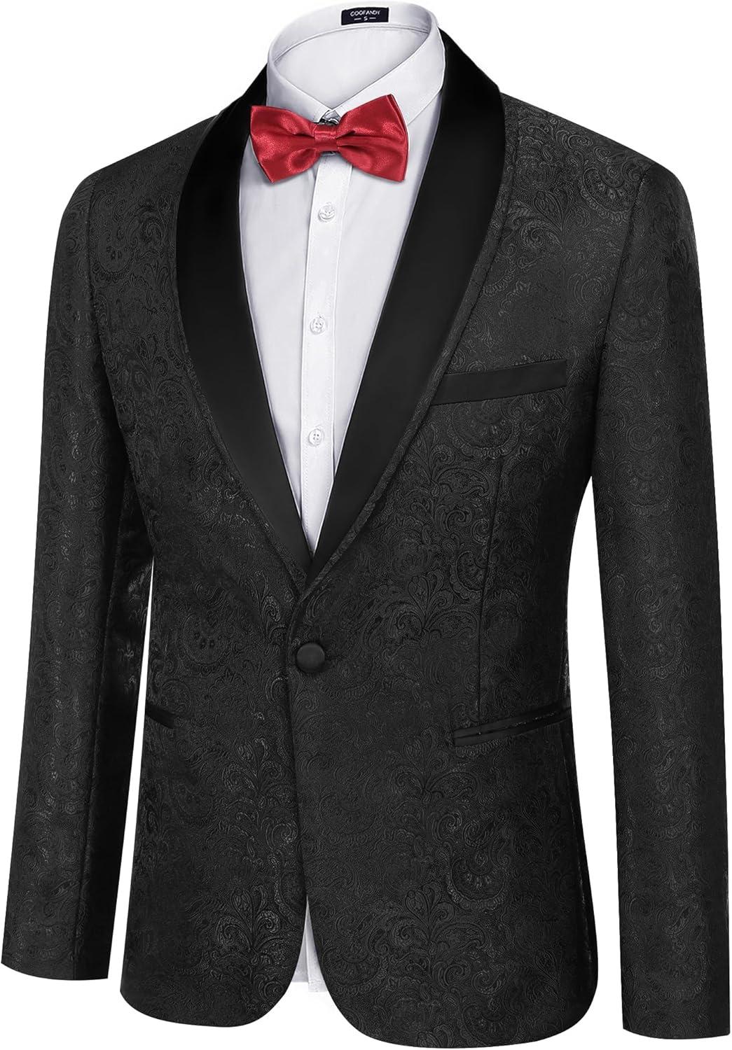 COOFANDY Men’s Floral Tuxedo Jacket Paisley Shawl Lapel Stylish Suit Blazer Jacket for Wedding, Dinner, Party, Prom(Red)