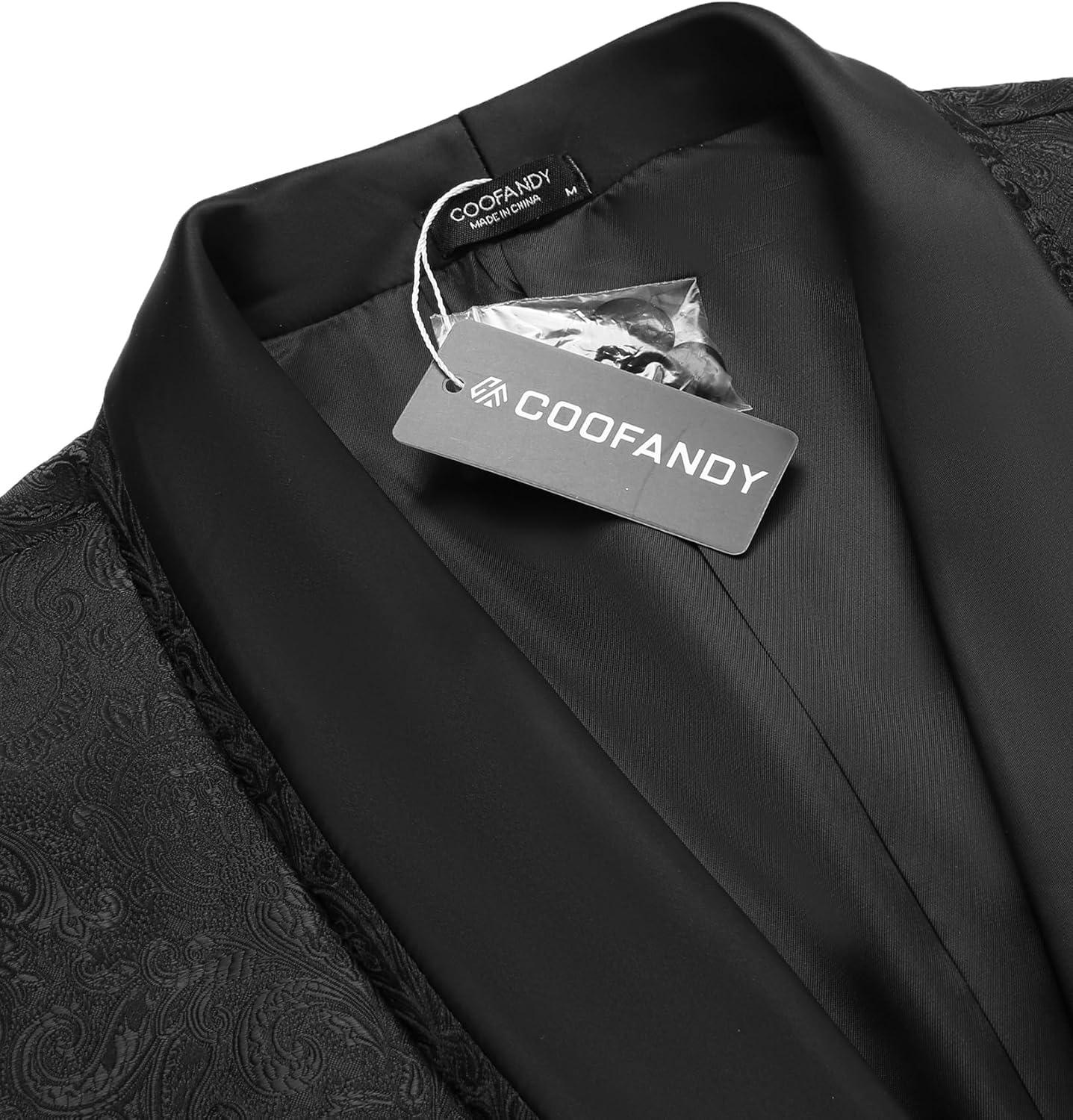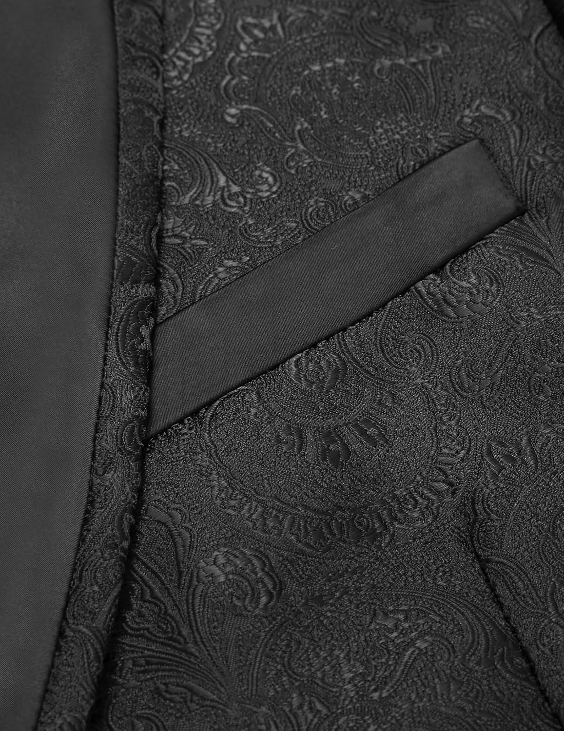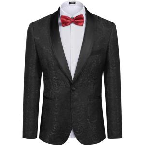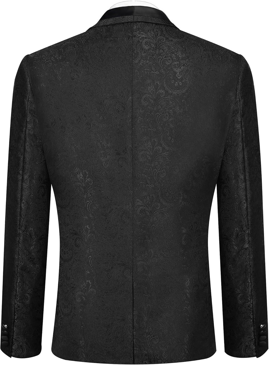 COOFANDY Men’s Floral Tuxedo Jacket Luxury Embroidered Wedding Blazer Dress Suit for Party Dinner(Black)