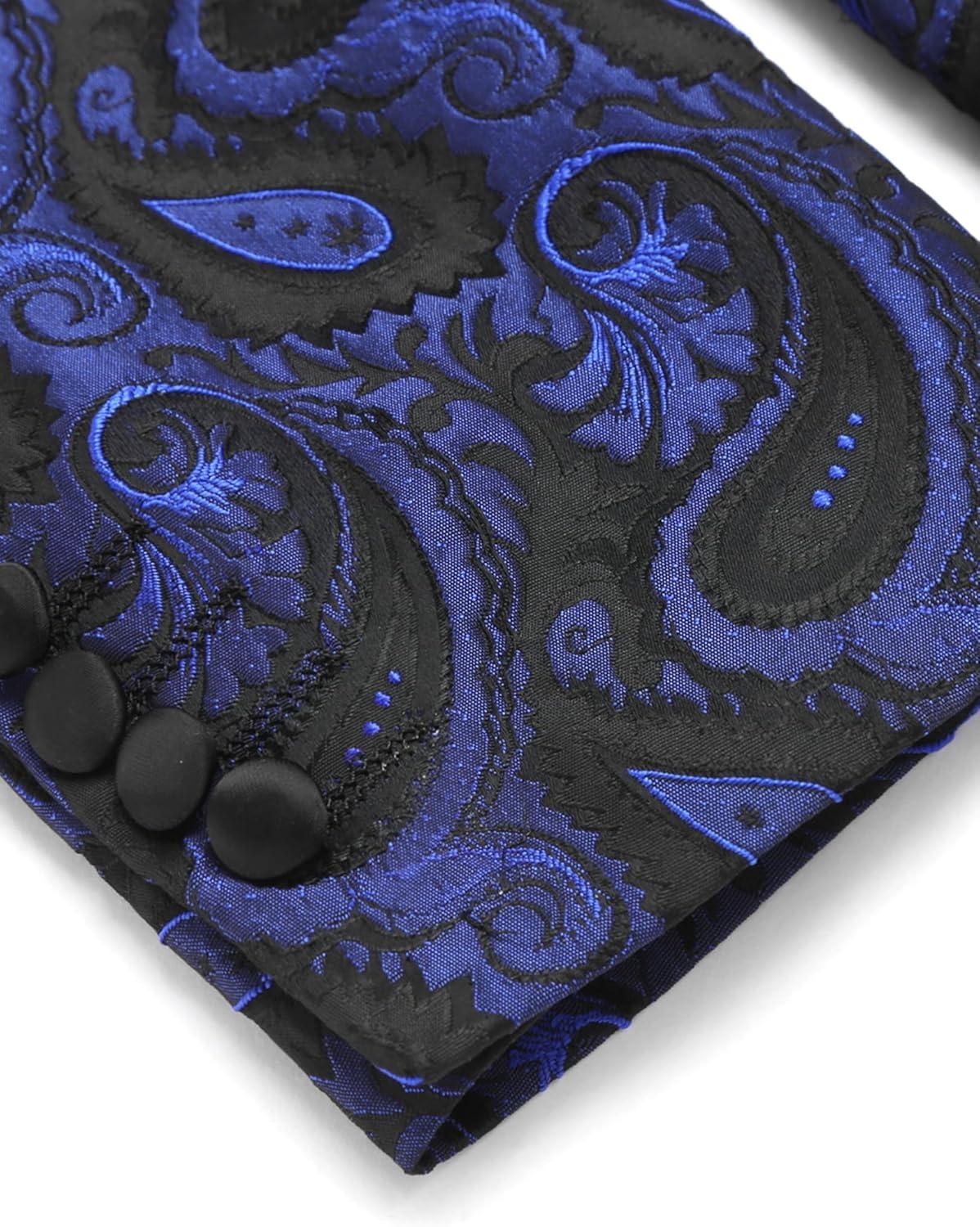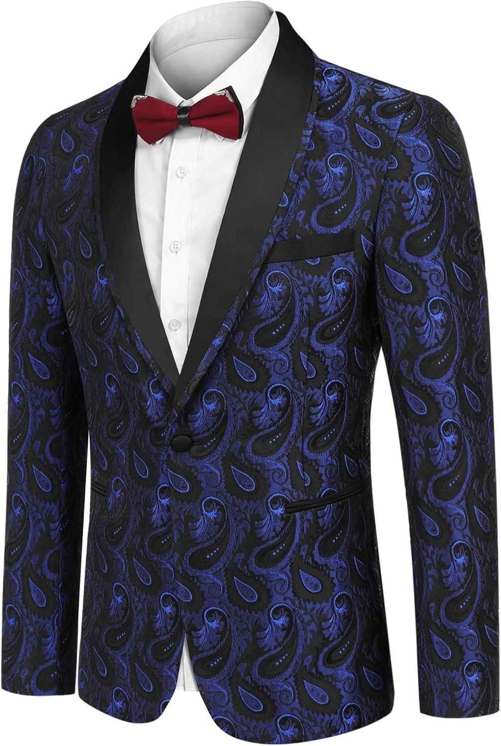 • COOFANDY Men’s Floral Tuxedo Suit Jacket Slim Fit Dinner Jacket Party Prom Wedding Blazer Jackets(Blue Paisley)