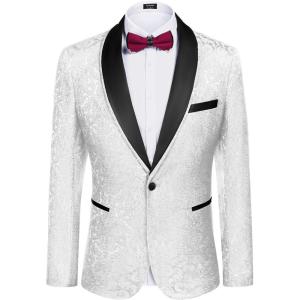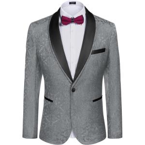 • COOFANDY Men’s Floral Tuxedo Suit Jacket Slim Fit Dinner Jacket Party Prom Wedding Blazer Jackets(Grey)