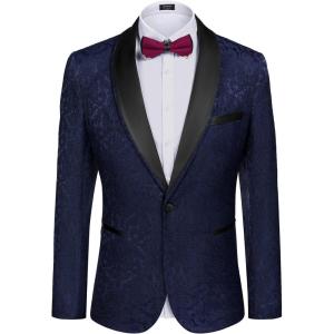 • COOFANDY Men’s Floral Tuxedo Suit Jacket Slim Fit Dinner Jacket Party Prom Wedding Blazer Jackets(Navy Blue)