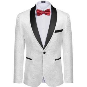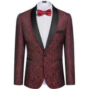• COOFANDY Men’s Floral Tuxedo Suit Jacket Slim Fit Dinner Jacket Party Prom Wedding Blazer Jackets(Golden Paisley Pattern)