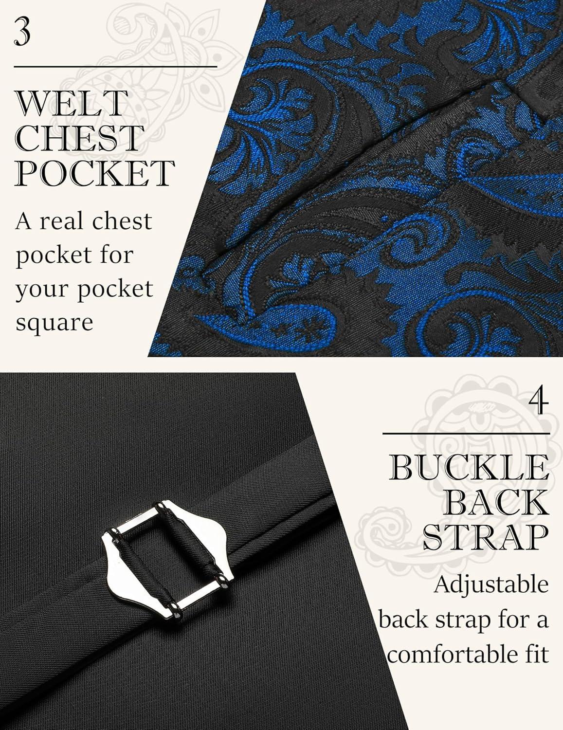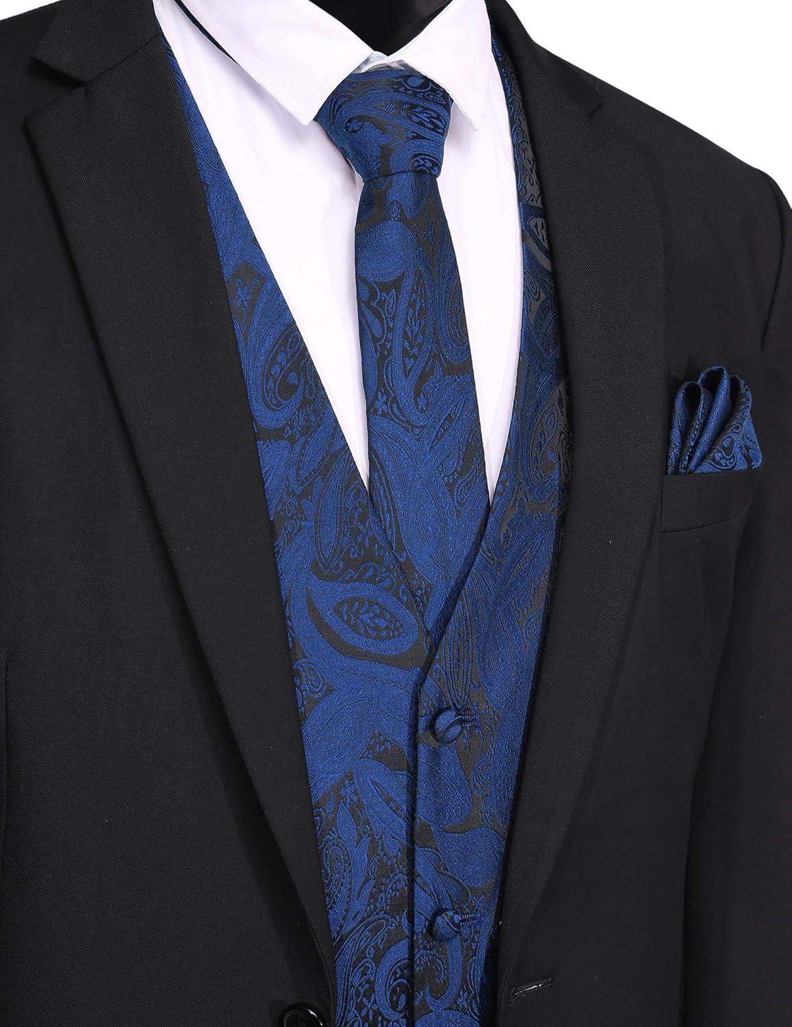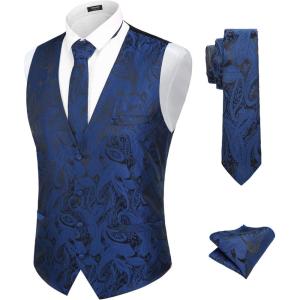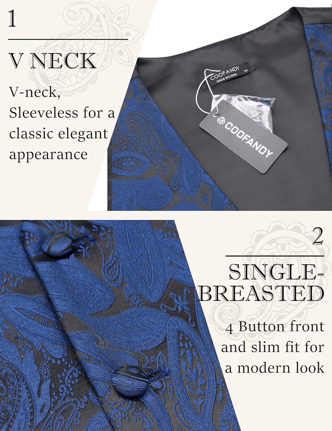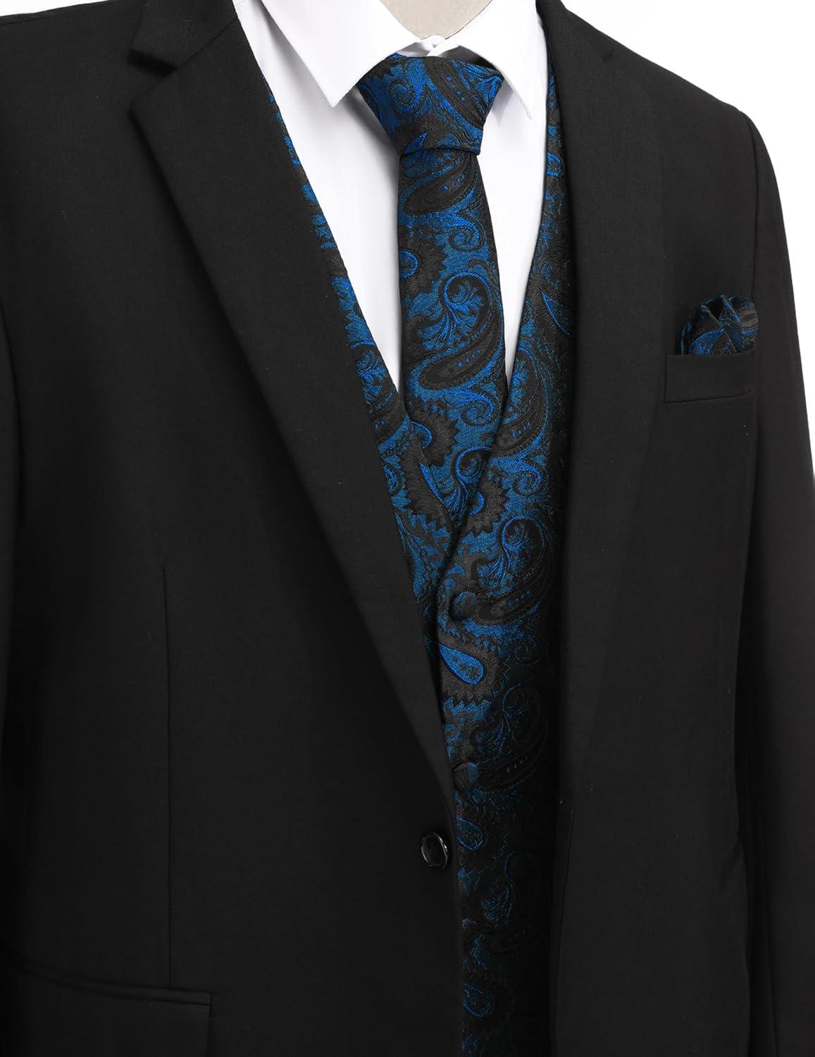 COOFANDY Men’s Suit Vest Tie Set 3PC Paisley Jacquard Waistcoat and Necktie Pocket Square for Holiday Party Wedding(Blue)