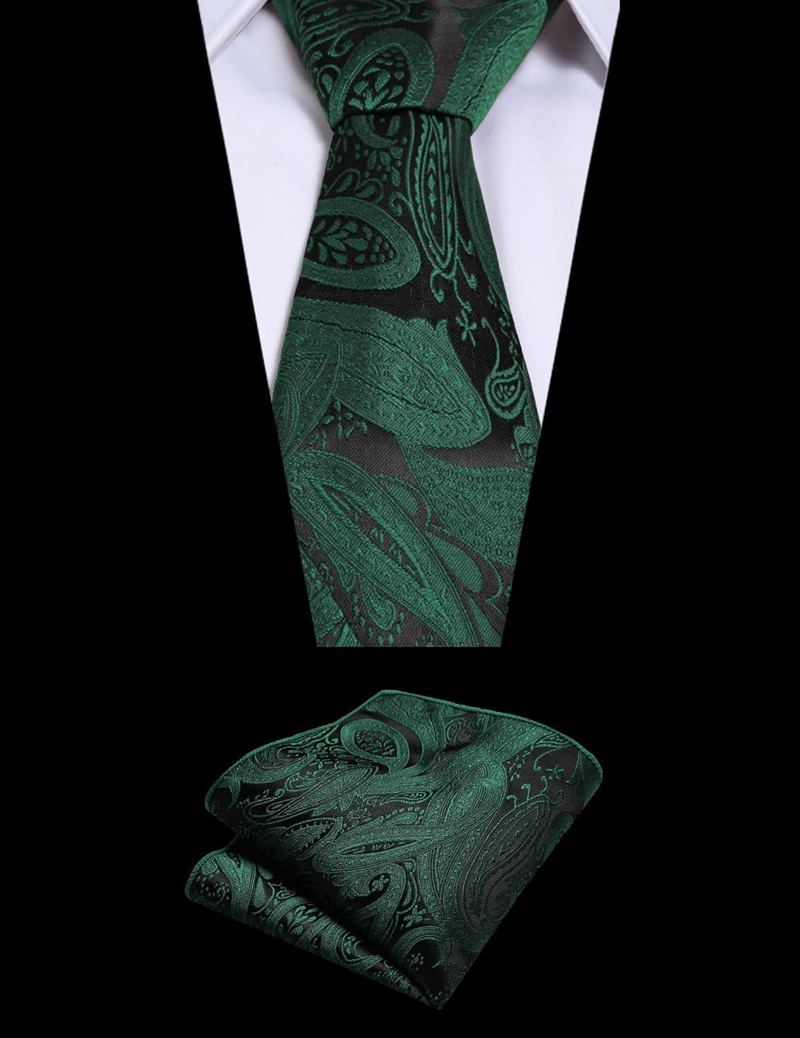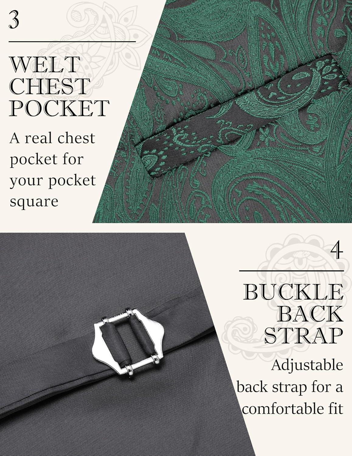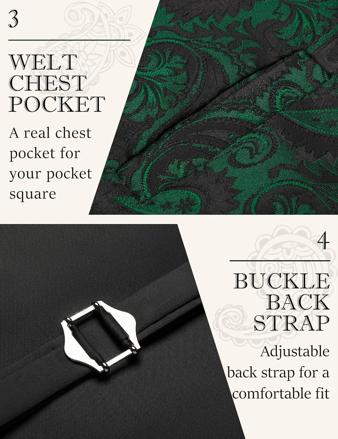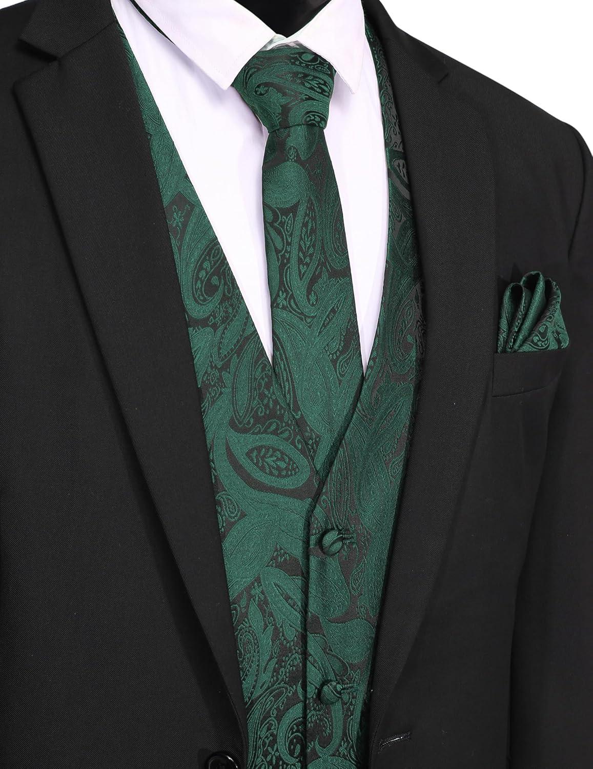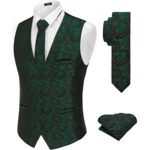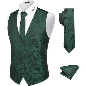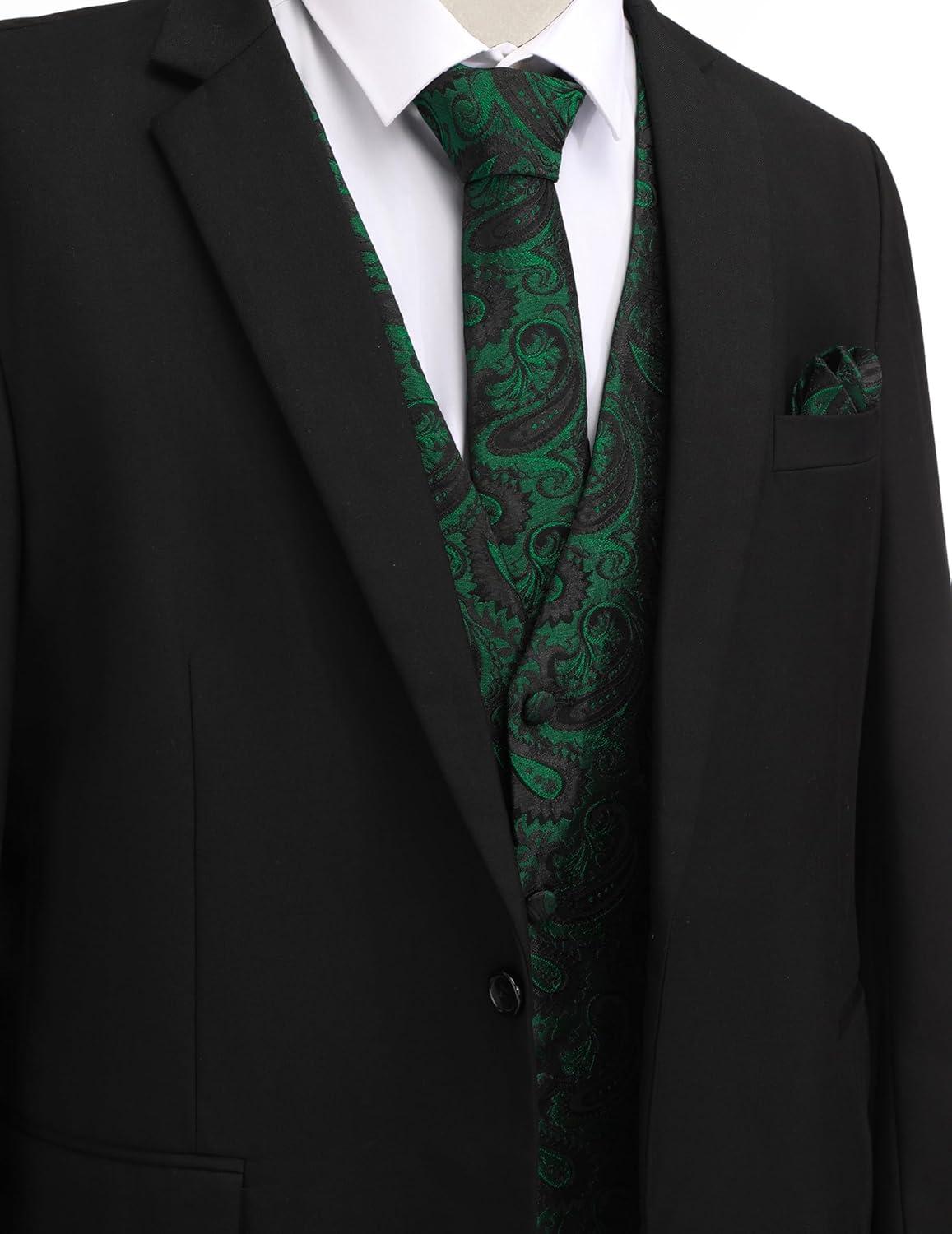 COOFANDY Men’s Suit Vest Tie Set 3PC Paisley Jacquard Waistcoat and Necktie Pocket Square for Holiday Party Wedding(Dark Green)