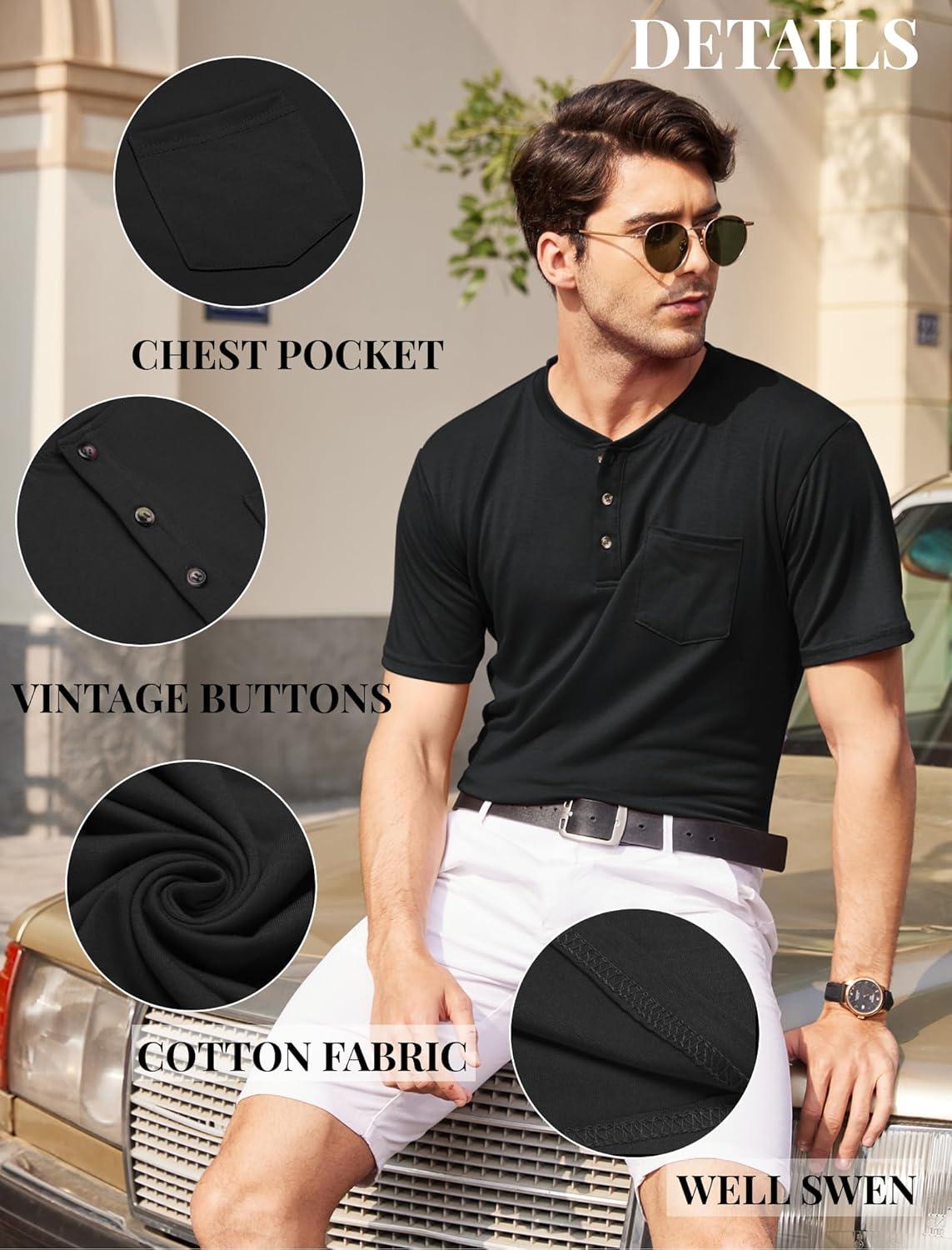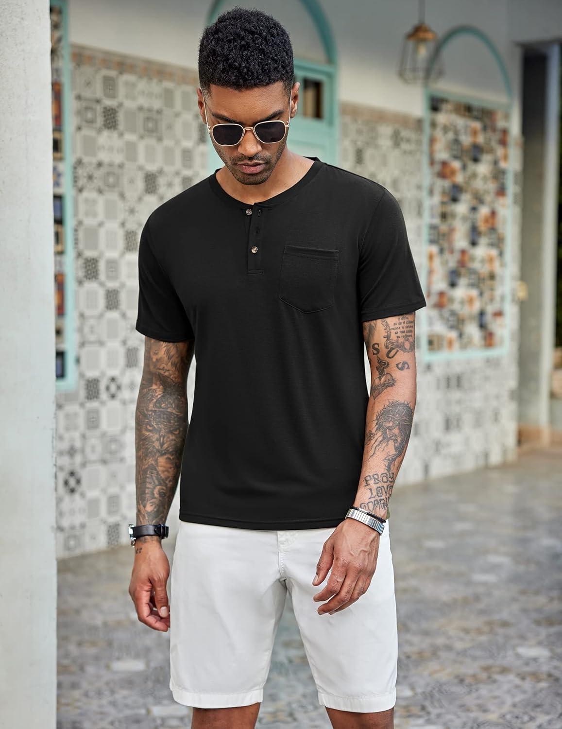 COOFANDY Men’s 3 Pack Henley Shirts Short Sleeve Casual Basic Tees Classic Henley Summer Solid T Shirts with Pocket(1 Pack: Black)