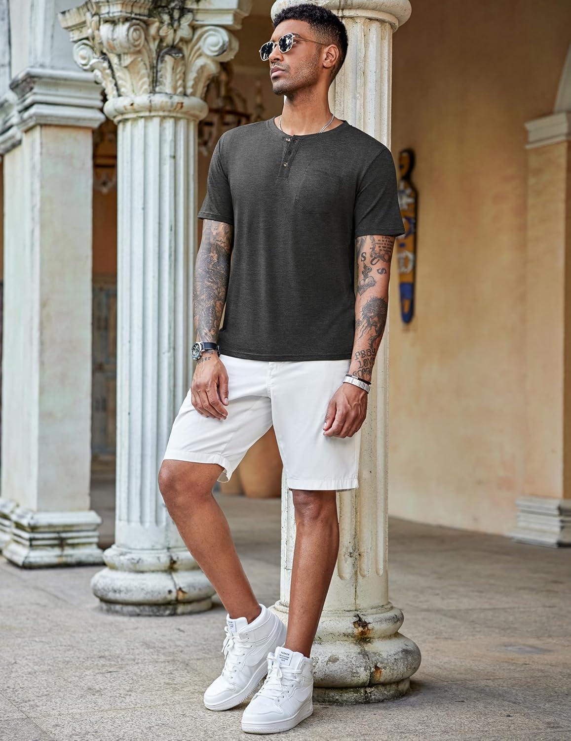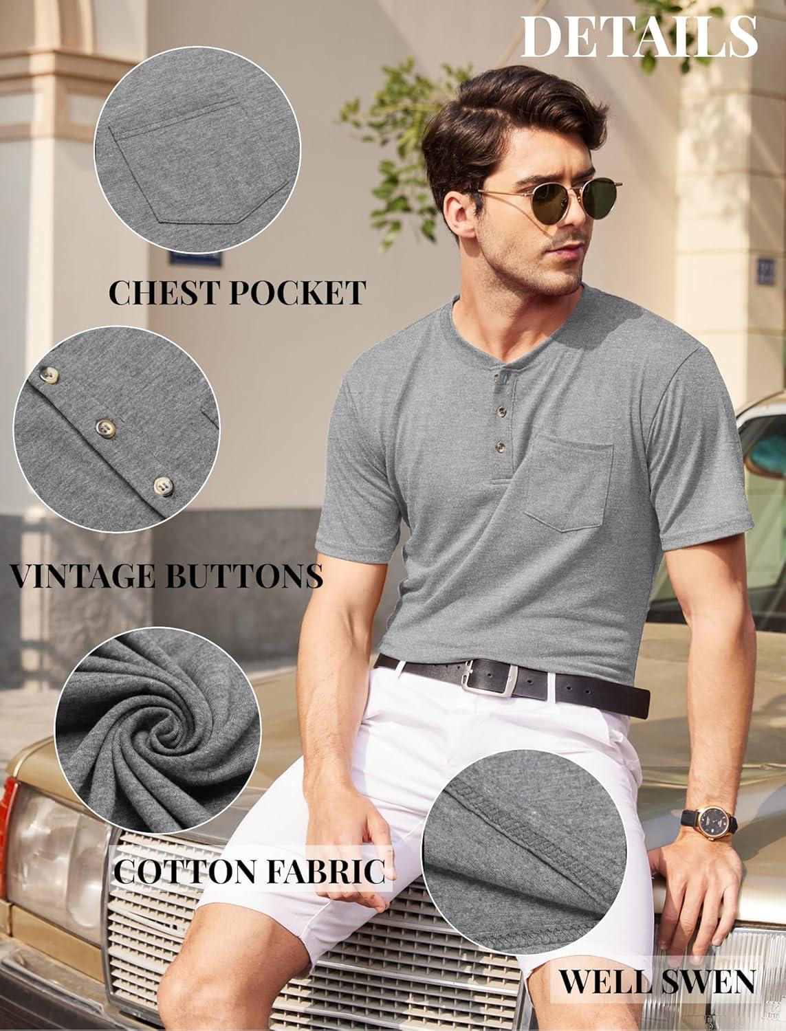 COOFANDY Men’s 3 Pack Henley Shirts Short Sleeve Casual Basic Tees Classic Henley Summer Solid T Shirts with Pocket(1 Pack: Dark Grey)
