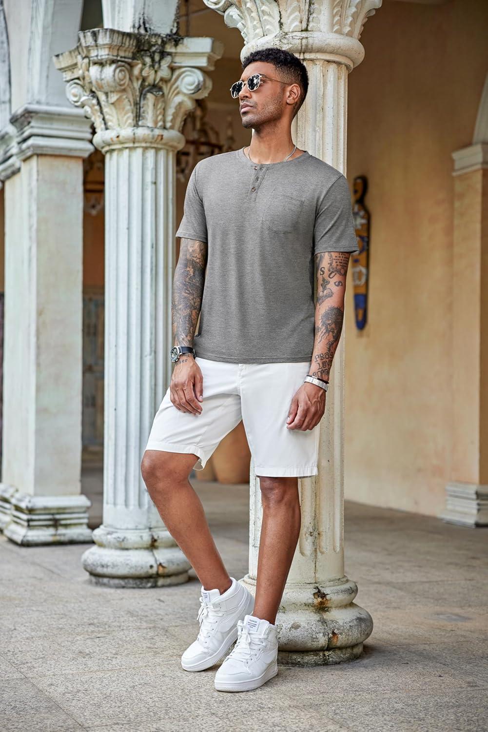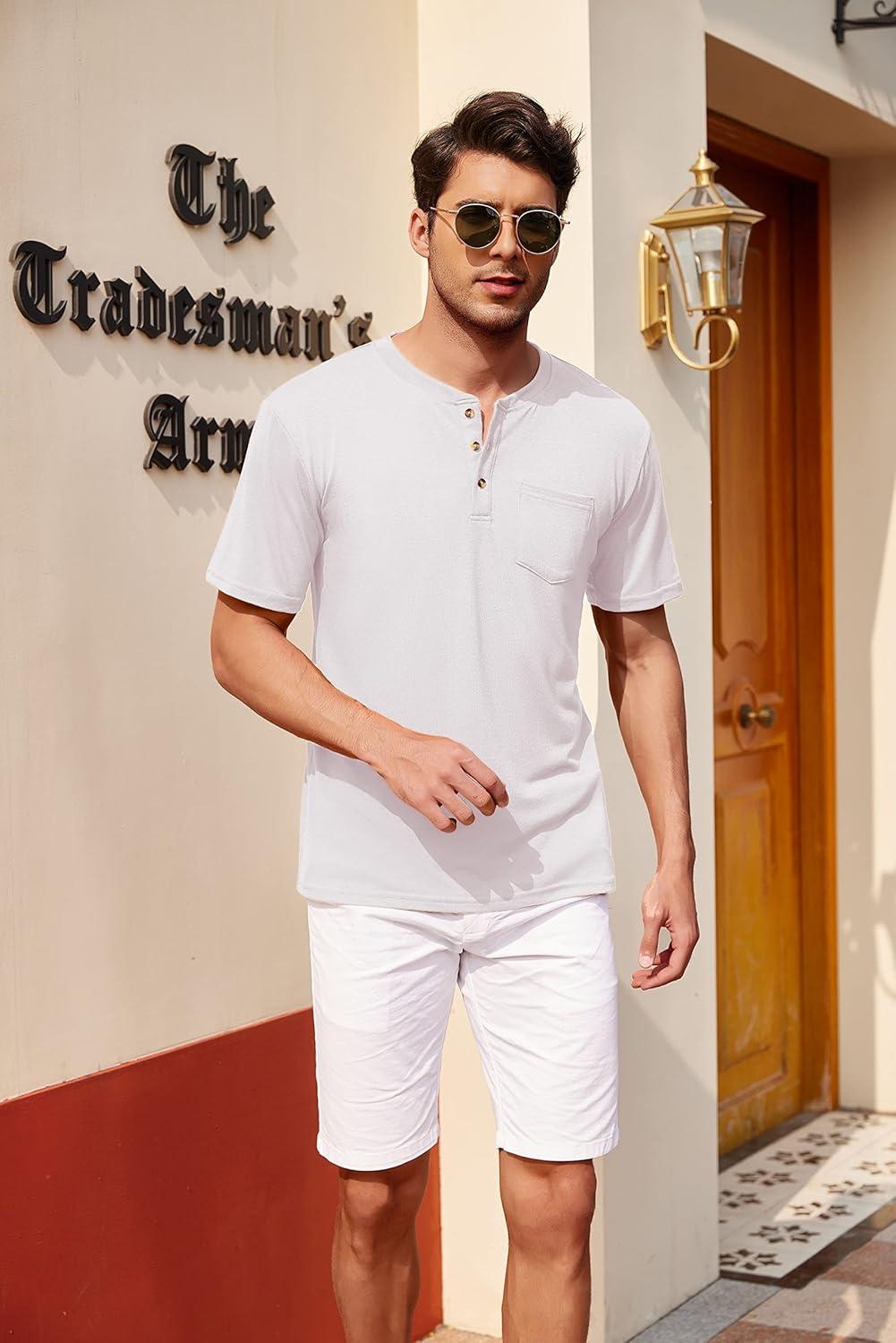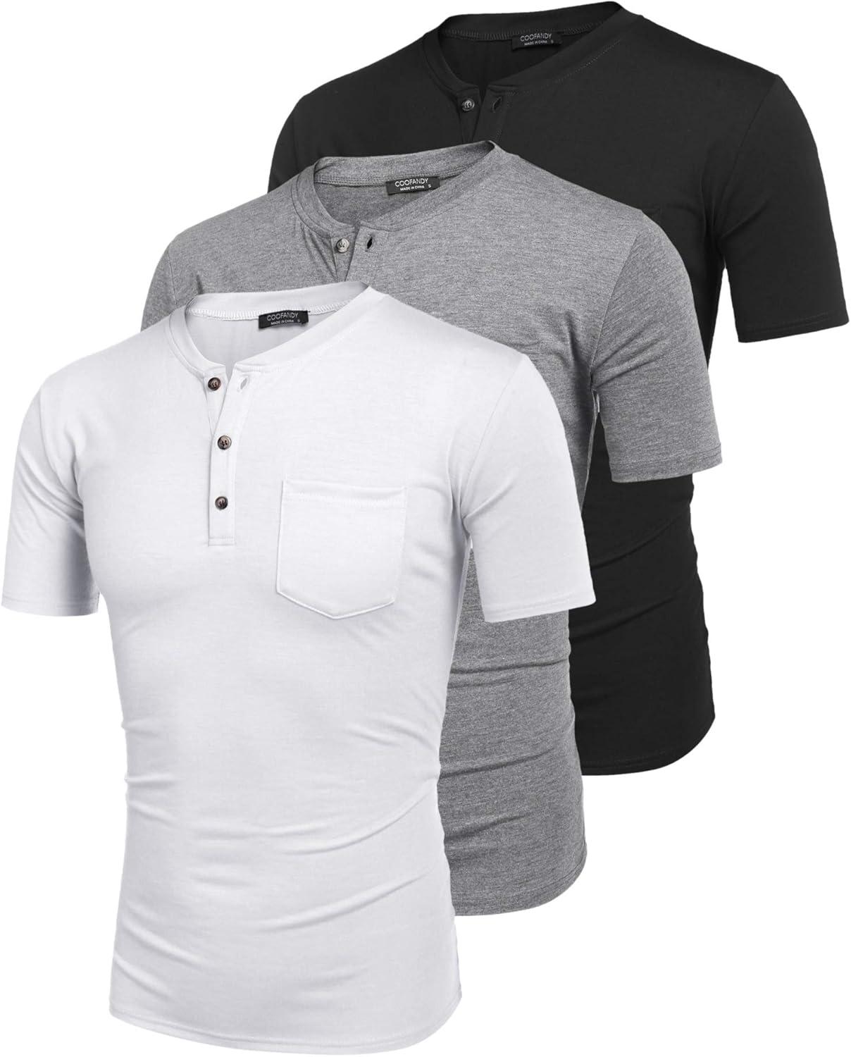 COOFANDY Men’s 3 Pack Henley Shirts Short Sleeve Casual Basic Tees Classic Henley Summer Solid T Shirts with Pocket(Black/Gray/White)