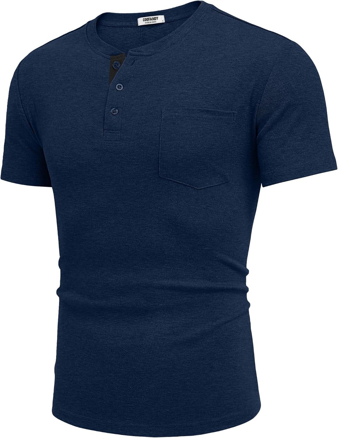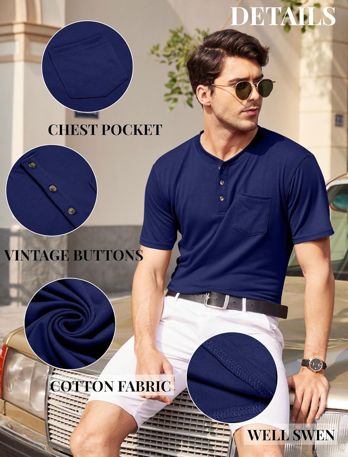 COOFANDY Men’s 3 Pack Henley Shirts Short Sleeve Casual Basic Tees Classic Henley Summer Solid T Shirts with Pocket(1 Pack: Navy Blue)