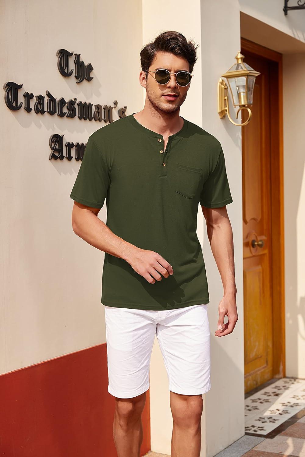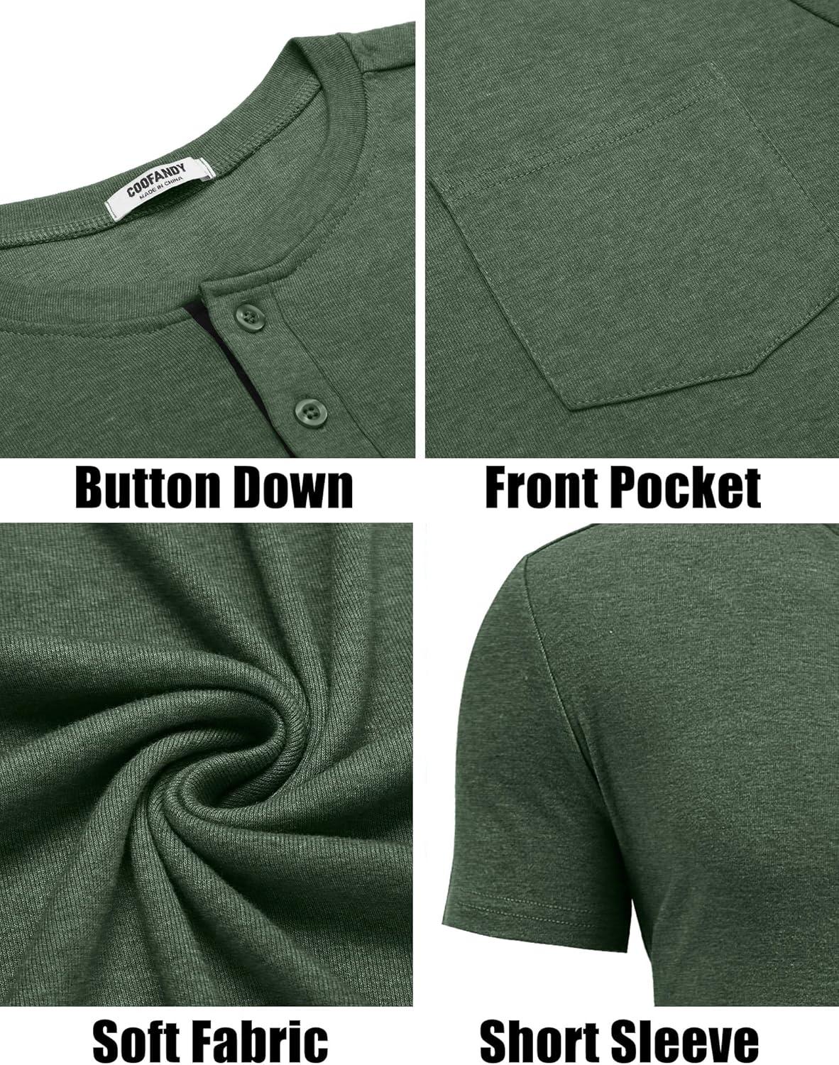 COOFANDY Men’s 3 Pack Henley Shirts Short Sleeve Casual Basic Tees Classic Henley Summer Solid T Shirts with Pocket(1 Pack: Army Green)