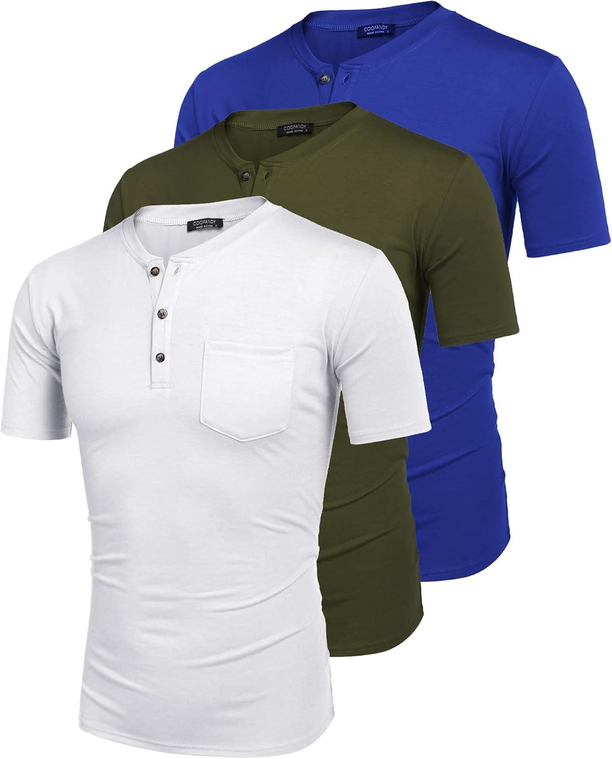 COOFANDY Men’s 3 Pack Henley Shirts Short Sleeve Casual Basic Tees Classic Henley Summer Solid T Shirts with Pocket(Army Green/White/Blue)