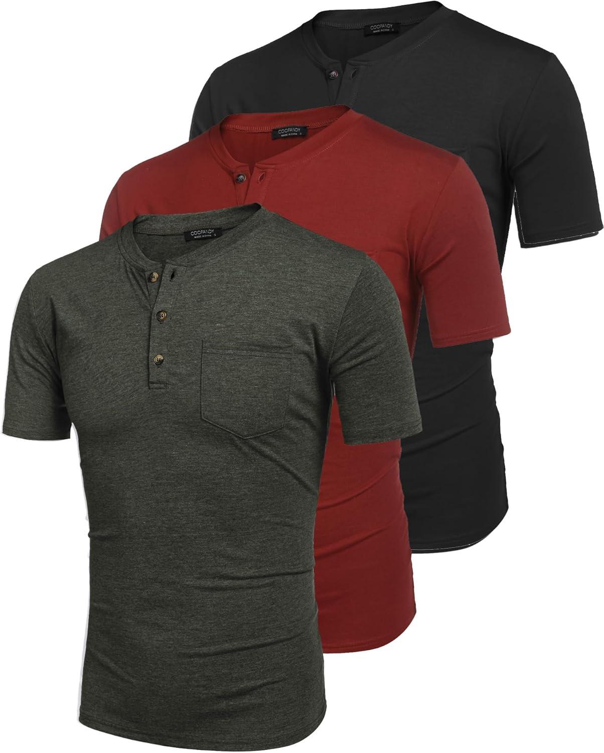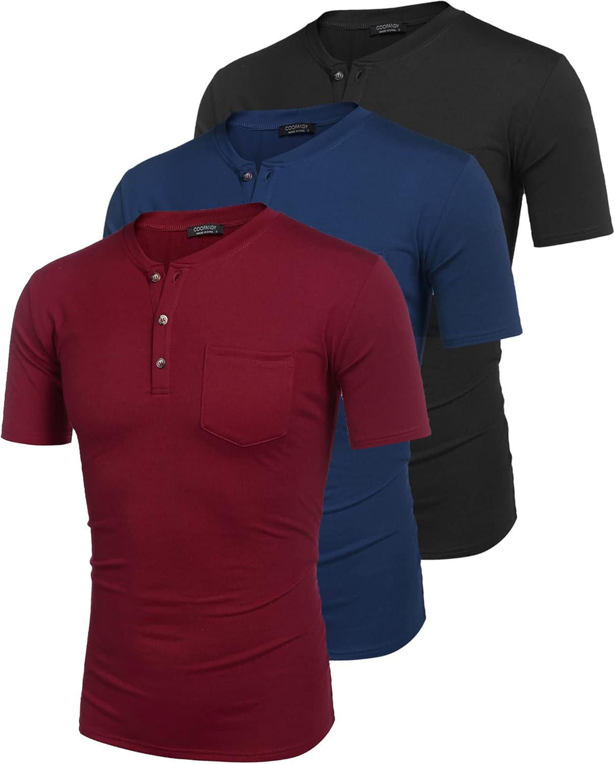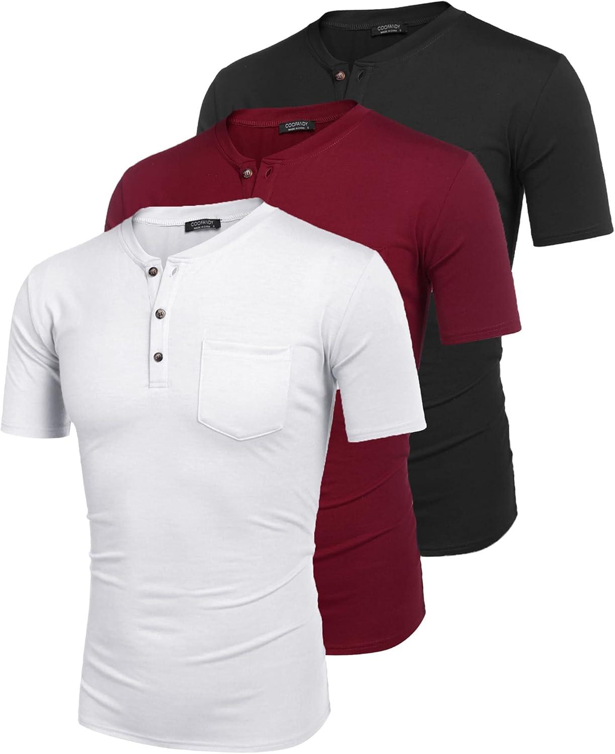 COOFANDY Men’s 3 Pack Henley Shirts Short Sleeve Casual Basic Tees Classic Henley Summer Solid T Shirts with Pocket(Black/White/Wine Red)