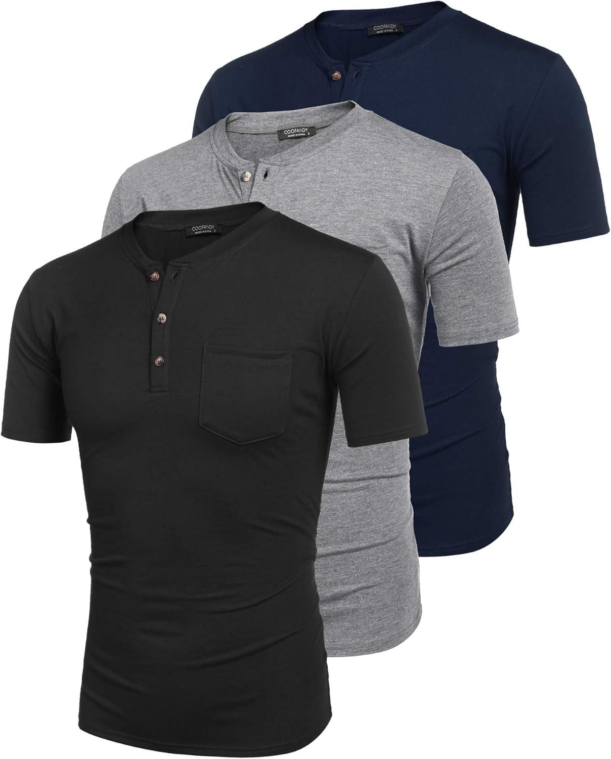 COOFANDY Men’s 3 Pack Henley Shirts Short Sleeve Casual Basic Tees Classic Henley Summer Solid T Shirts with Pocket(Dark Gray)