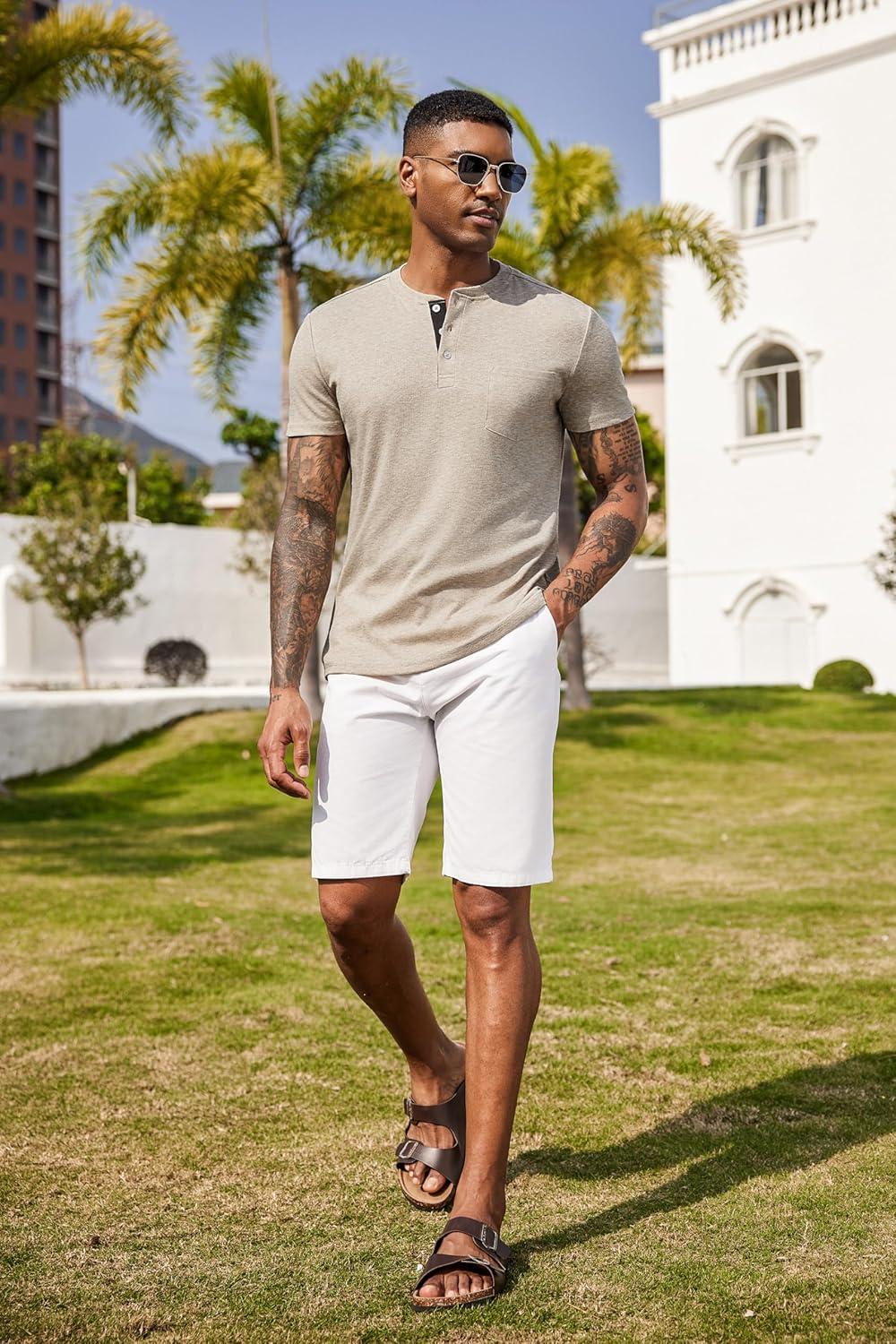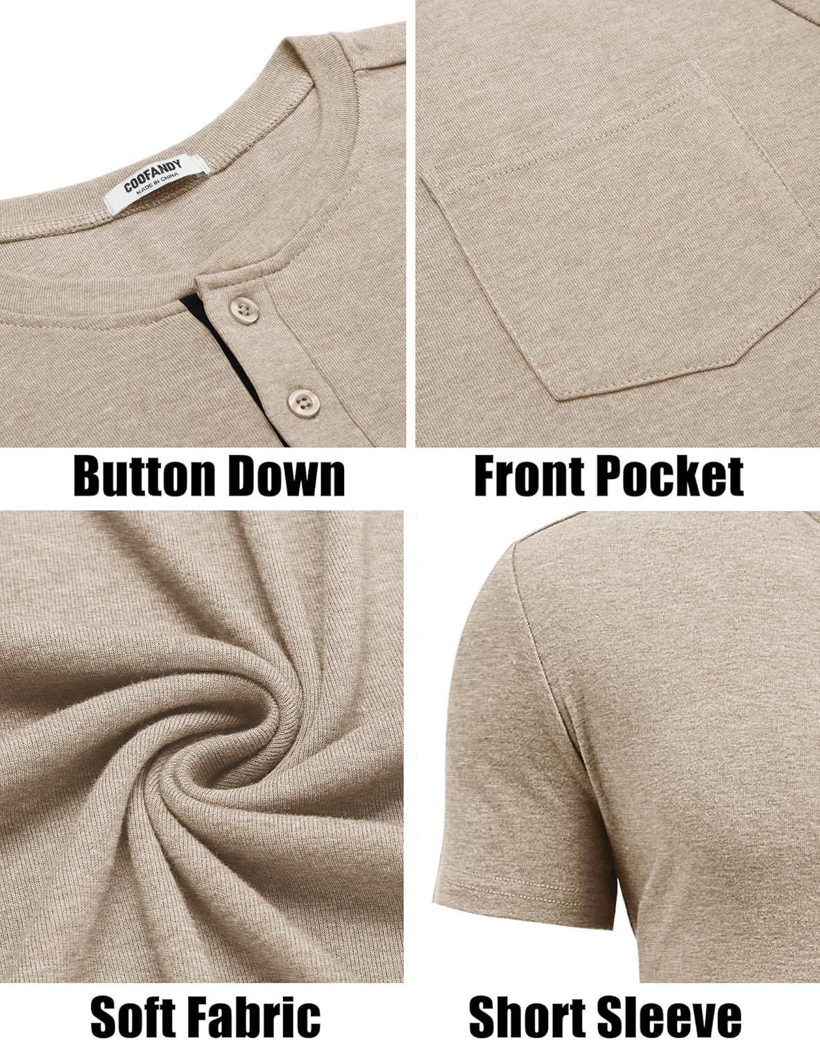 COOFANDY Men’s 3 Pack Henley Shirts Short Sleeve Casual Basic Tees Classic Henley Summer Solid T Shirts with Pocket(Coffee)