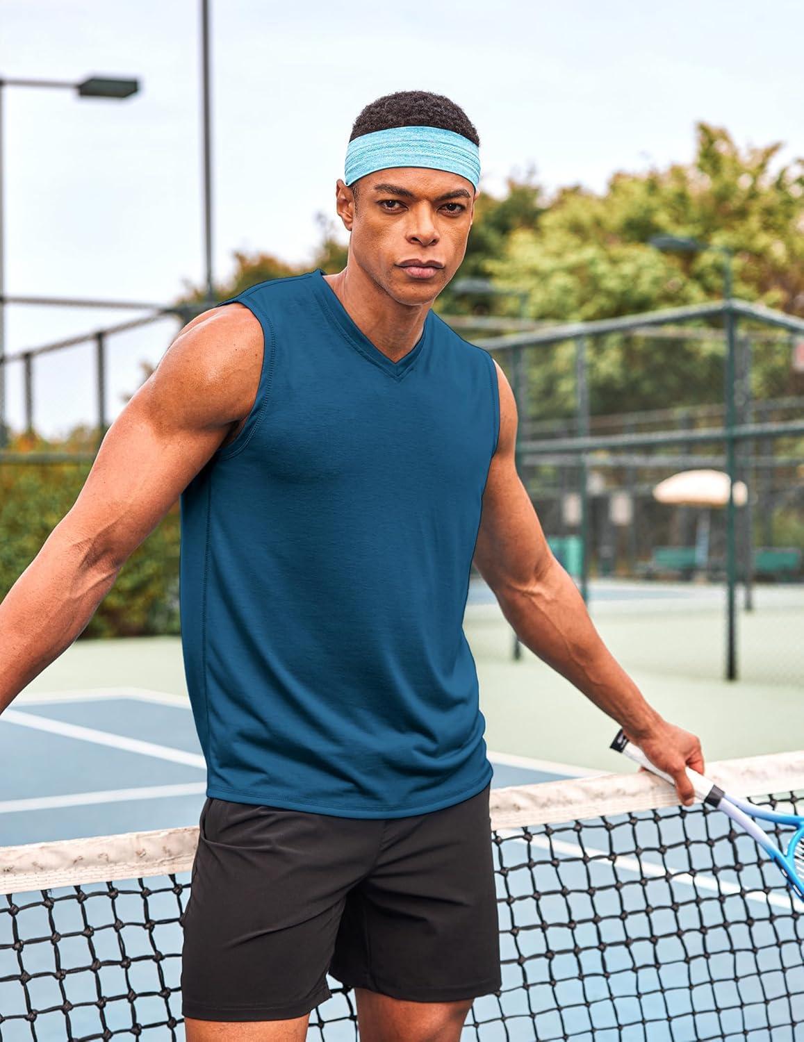 COOFANDY Men’s 3 Pack Workout Tank Tops Gym Sleeveless Shirts V Neck Bodybuilding Muscle Tee Shirt(Black/Blue/White)