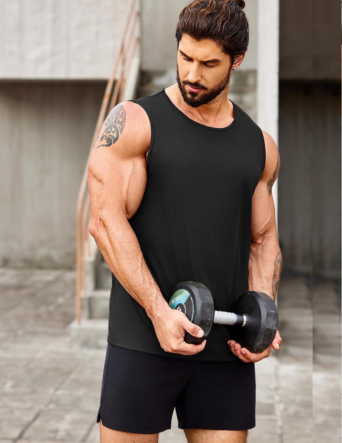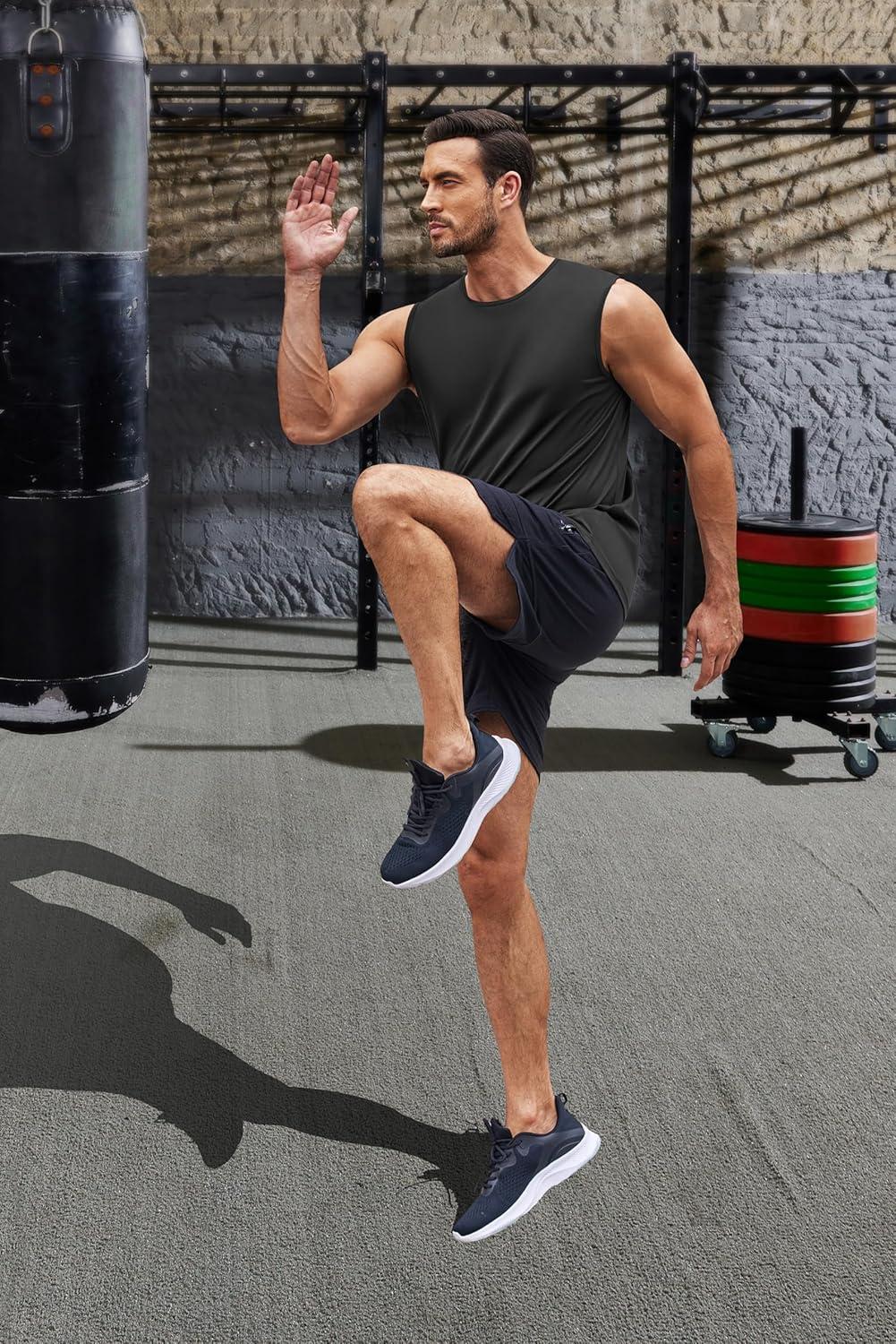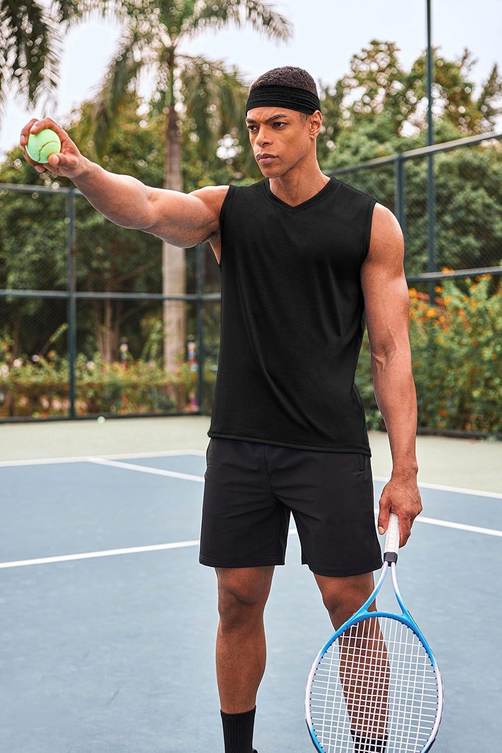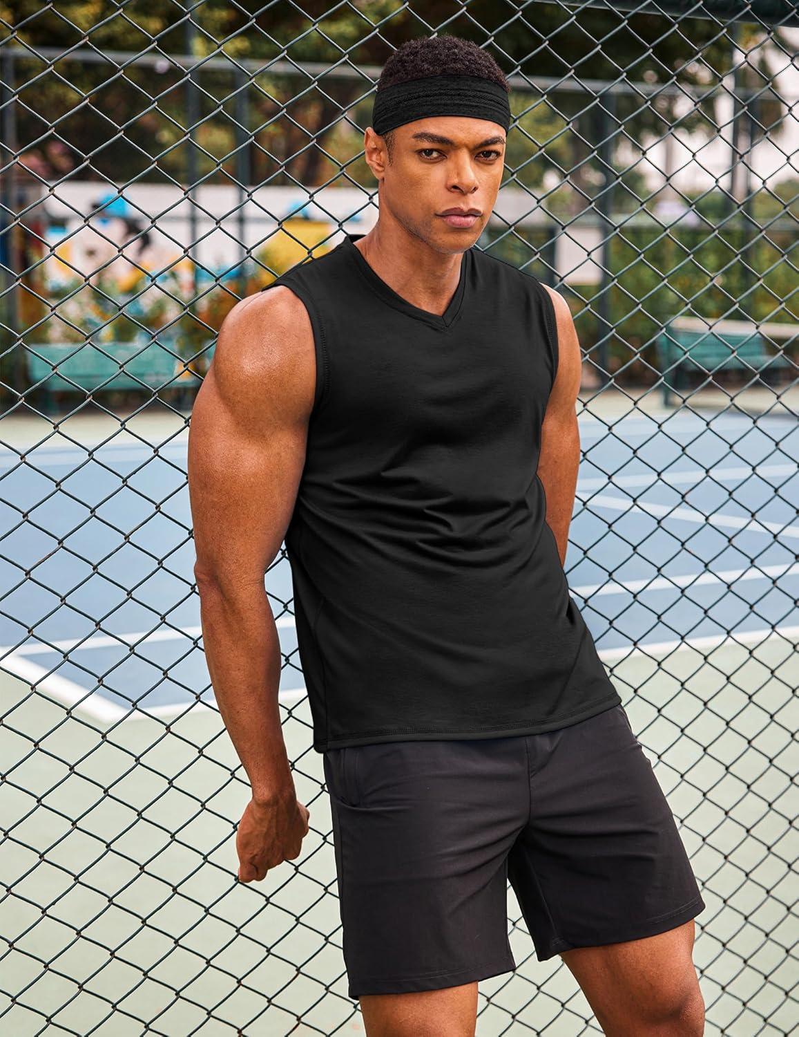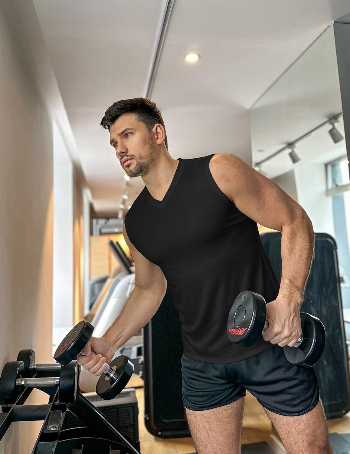 COOFANDY Men’s 3 Pack Workout Tank Tops Gym Sleeveless Shirts V Neck Bodybuilding Muscle Tee Shirt(Black/Black/Black)