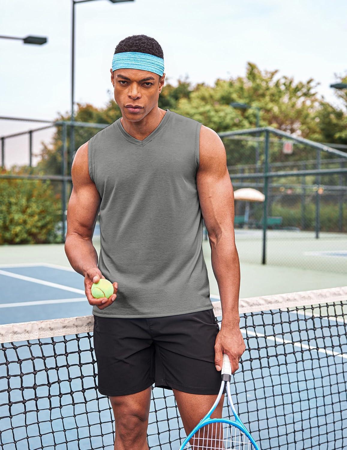 COOFANDY Men’s 3 Pack Workout Tank Tops Gym Sleeveless Shirts V Neck Bodybuilding Muscle Tee Shirt(Black/Dark Grey/Red)