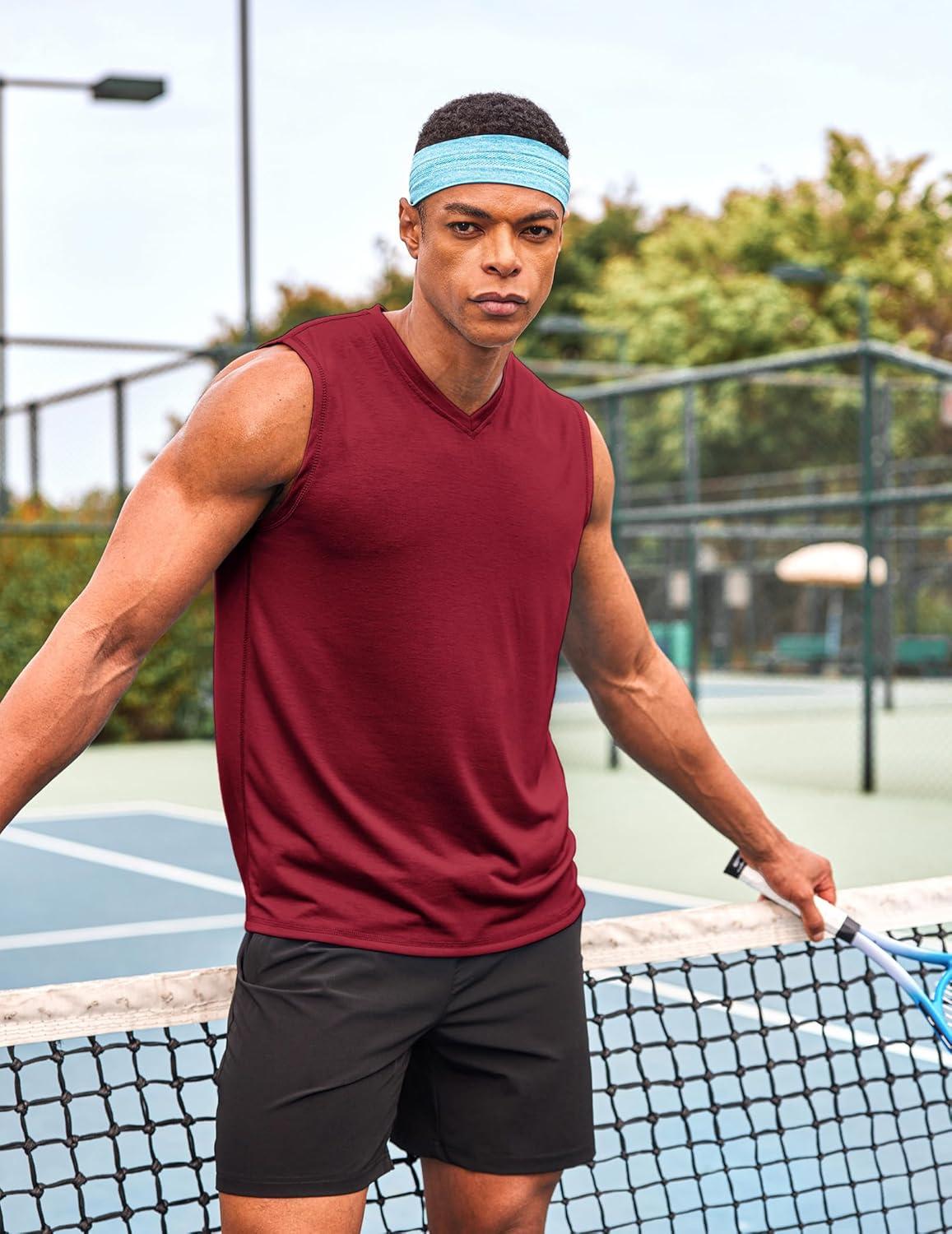 COOFANDY Men’s 3 Pack Workout Tank Tops Gym Sleeveless Shirts V Neck Bodybuilding Muscle Tee Shirt(Black Wine Red)