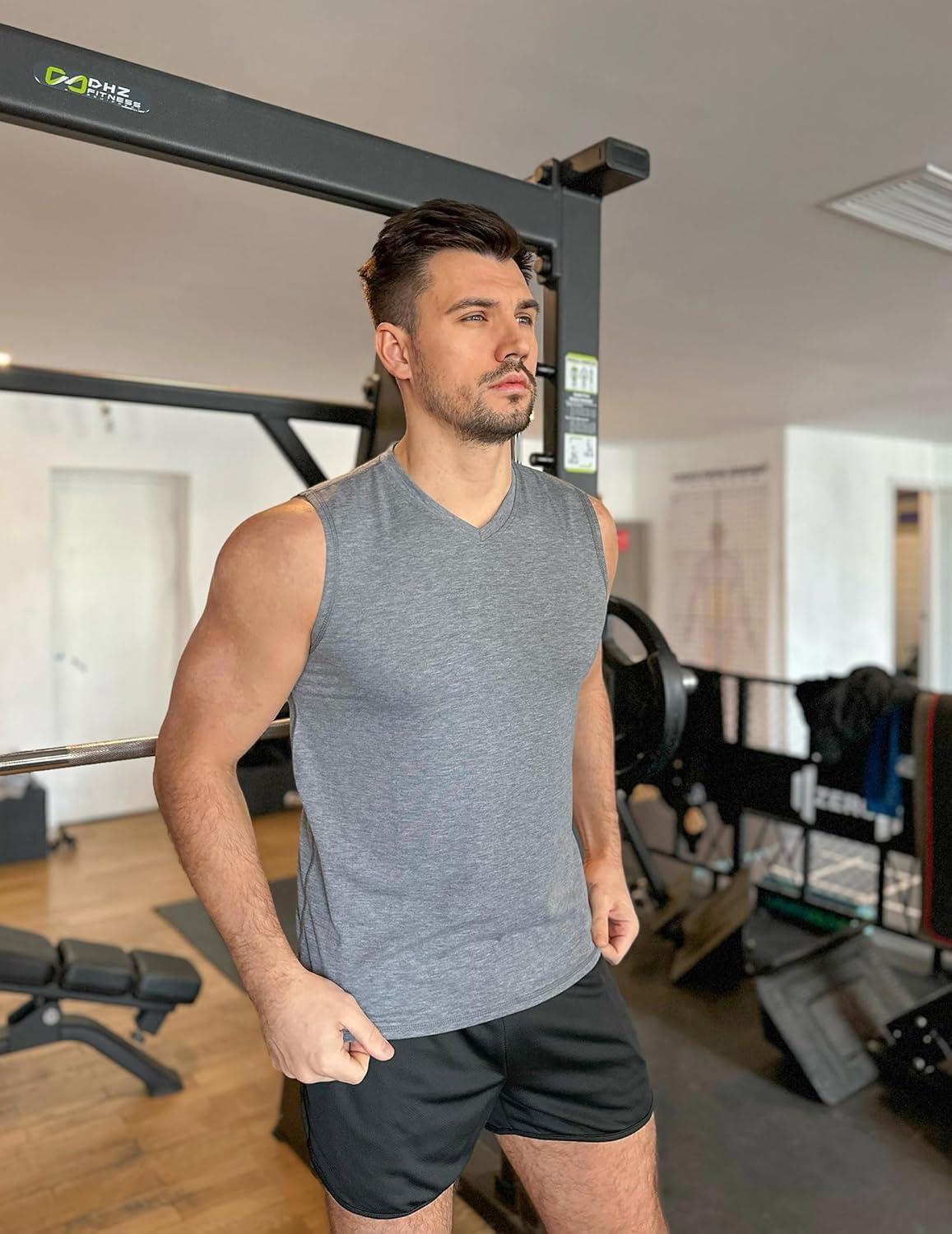 COOFANDY Men’s 3 Pack Workout Tank Tops Gym Sleeveless Shirts V Neck Bodybuilding Muscle Tee Shirt(Black/Dark Grey)