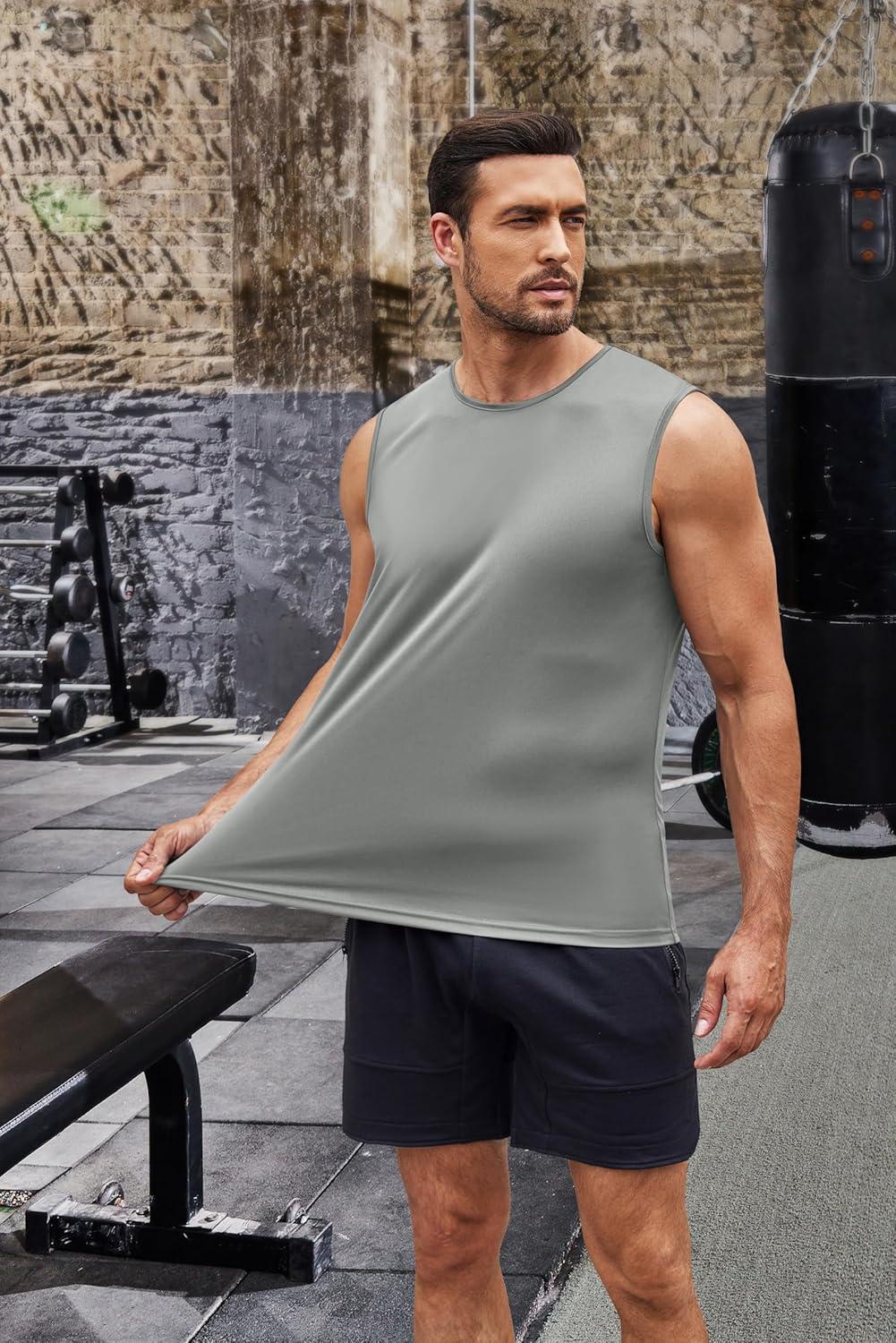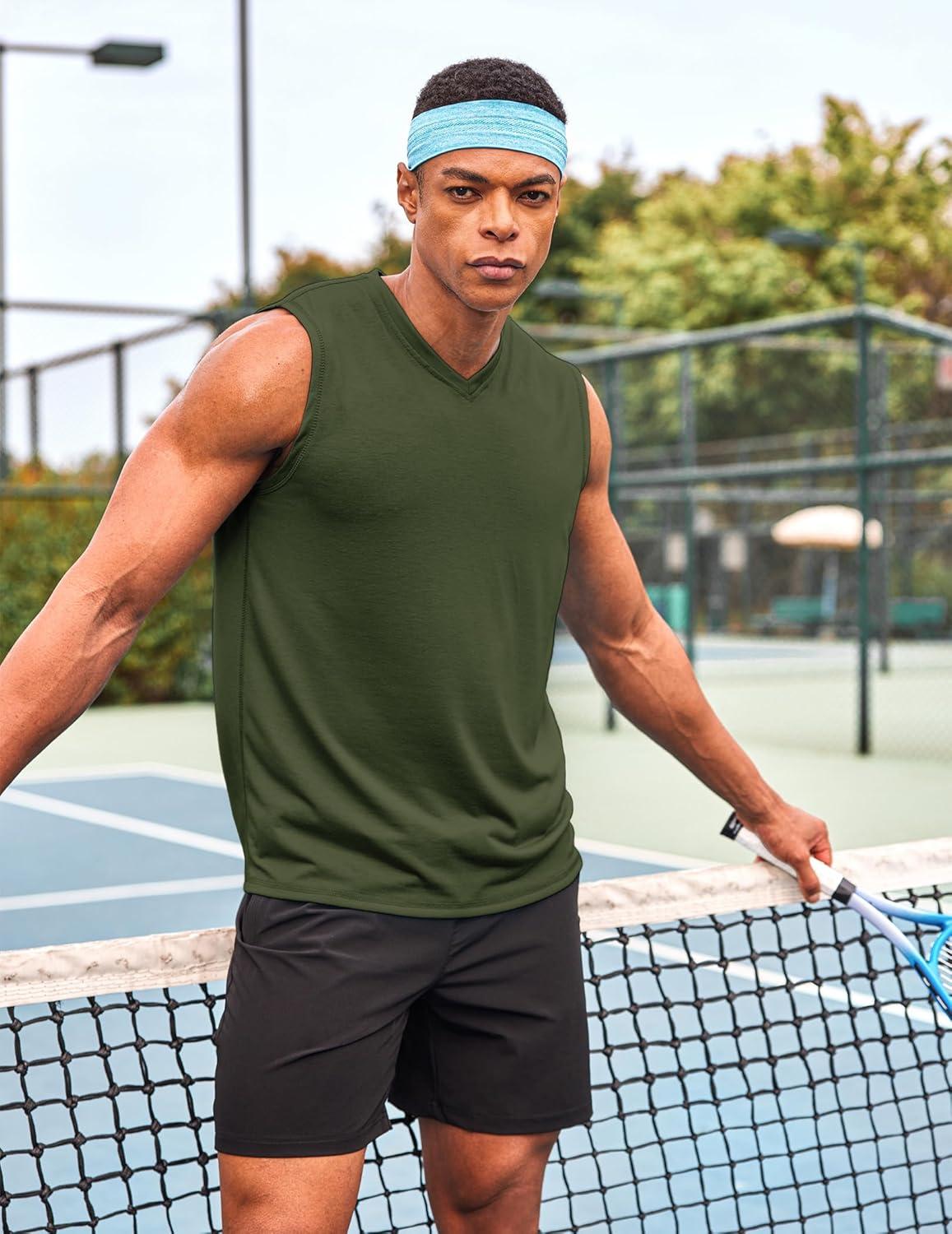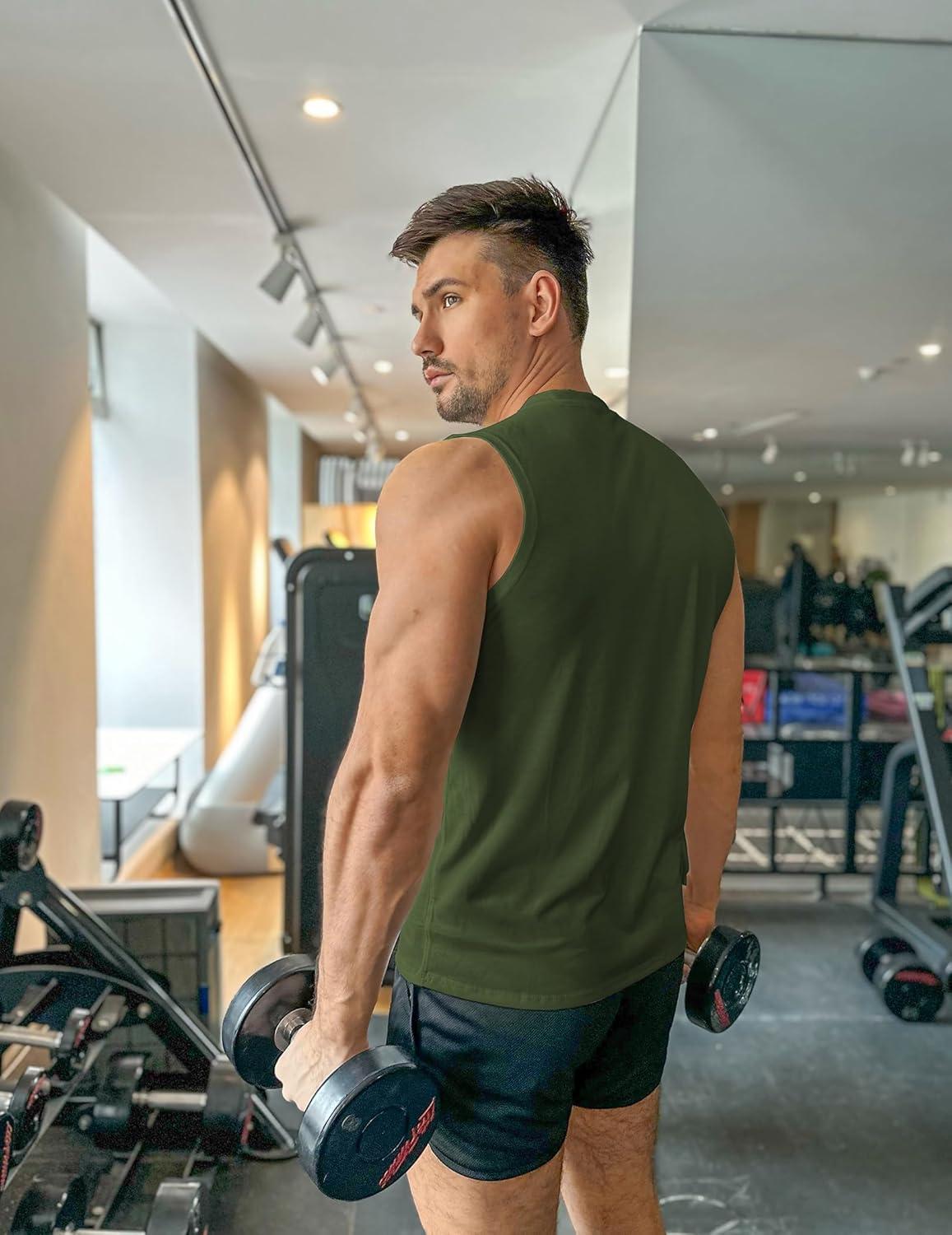 COOFANDY Men’s 3 Pack Workout Tank Tops Gym Sleeveless Shirts V Neck Bodybuilding Muscle Tee Shirt(Army Green/Colour Grey/Black)