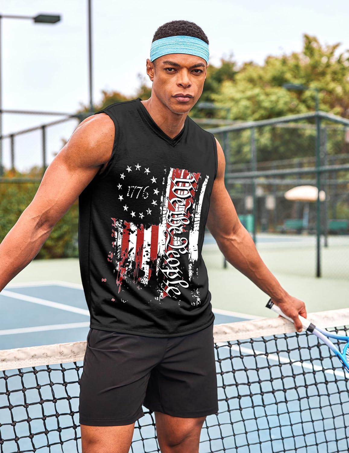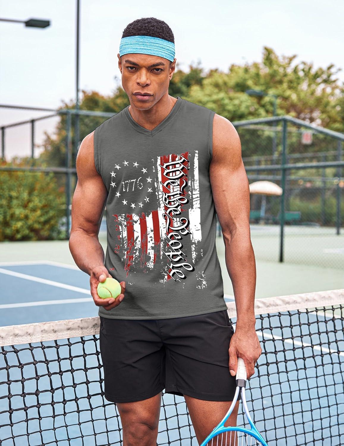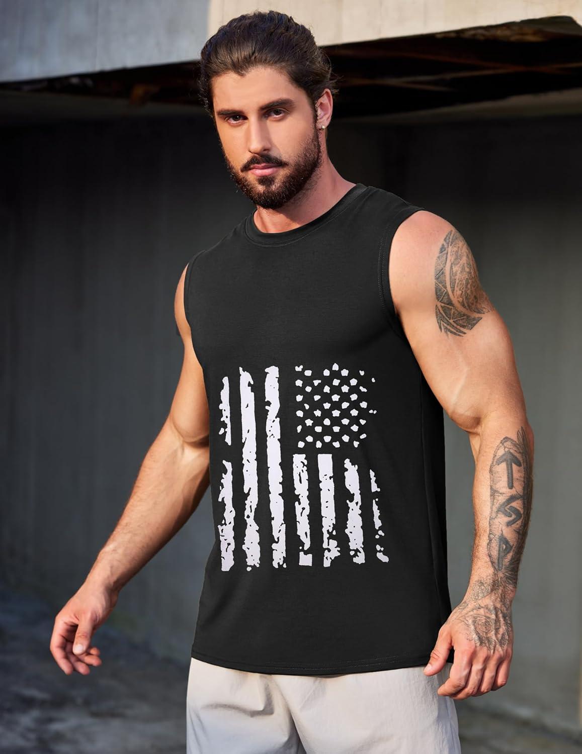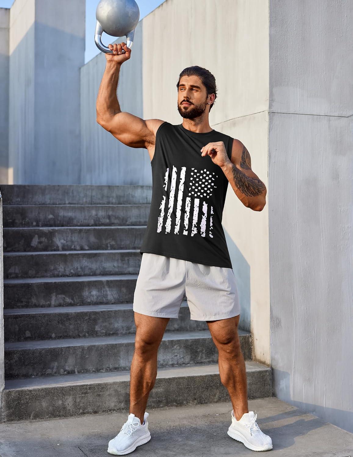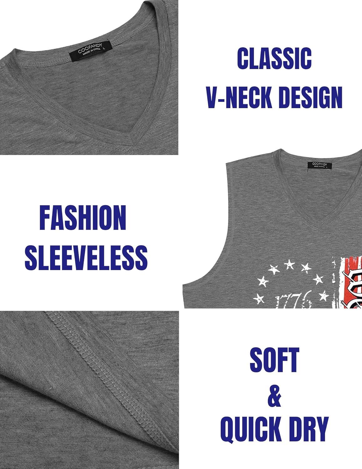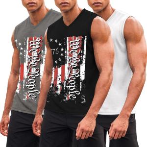 COOFANDY Men’s 3 Pack Workout Tank Tops Gym Sleeveless Shirts V Neck Bodybuilding Muscle Tee Shirt(Black Flag/Grey Flag/Pure White)